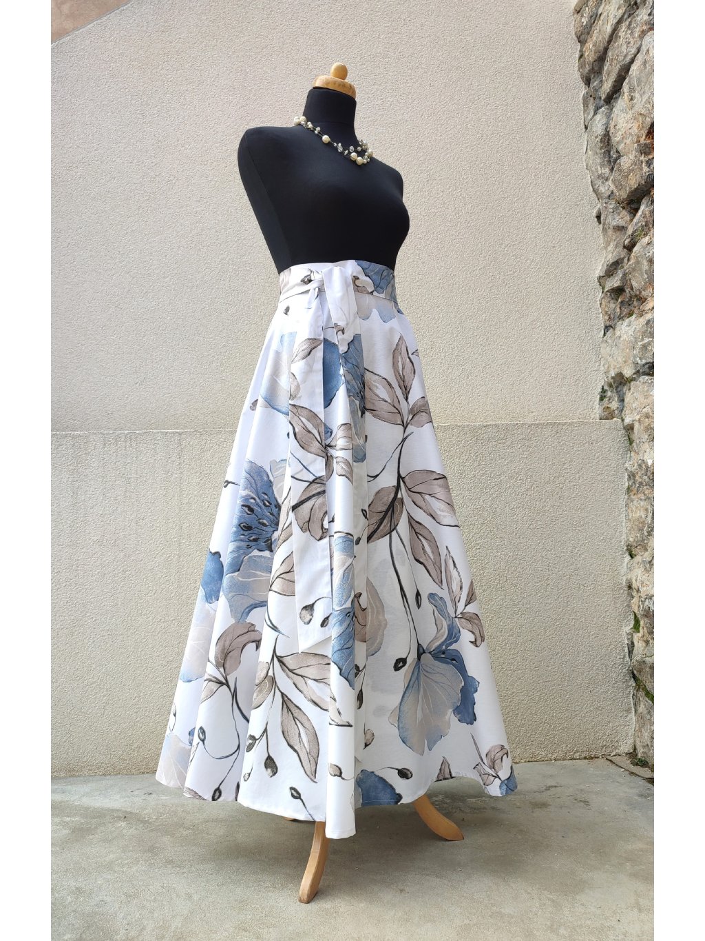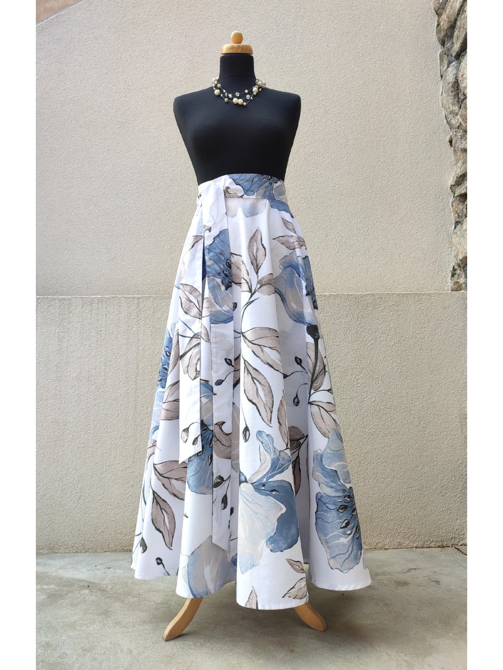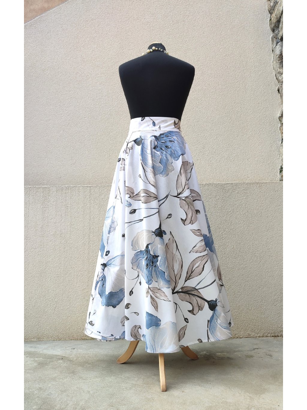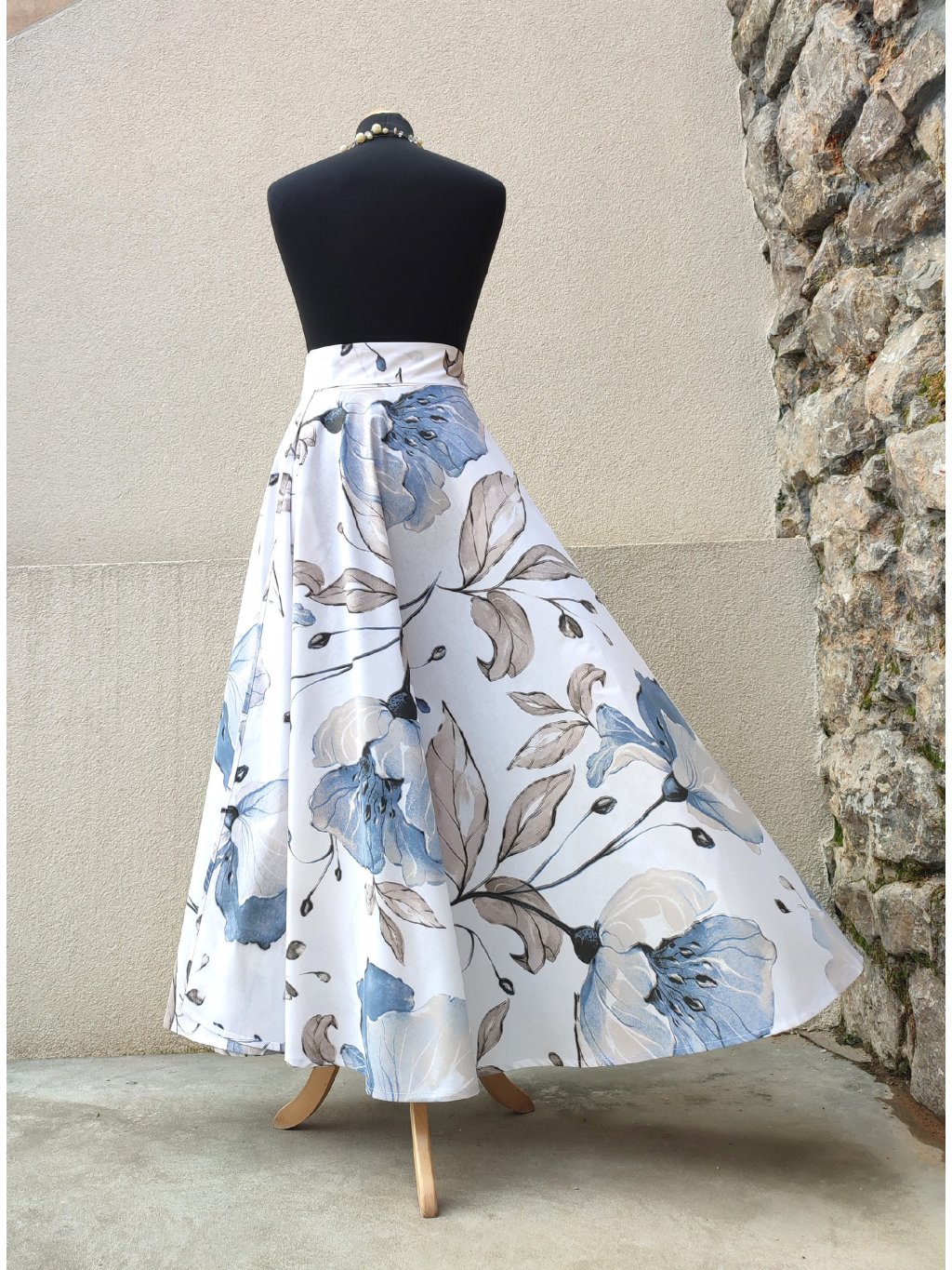 Dlouhá kolová sukně - modré květy