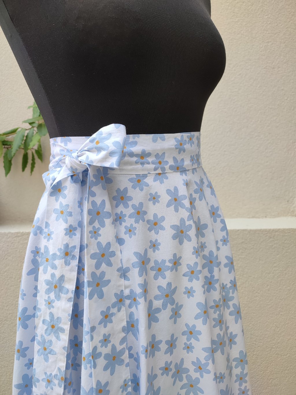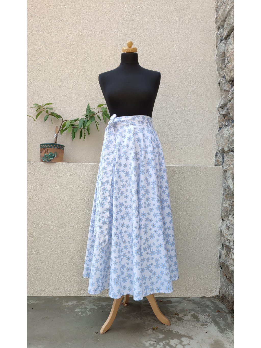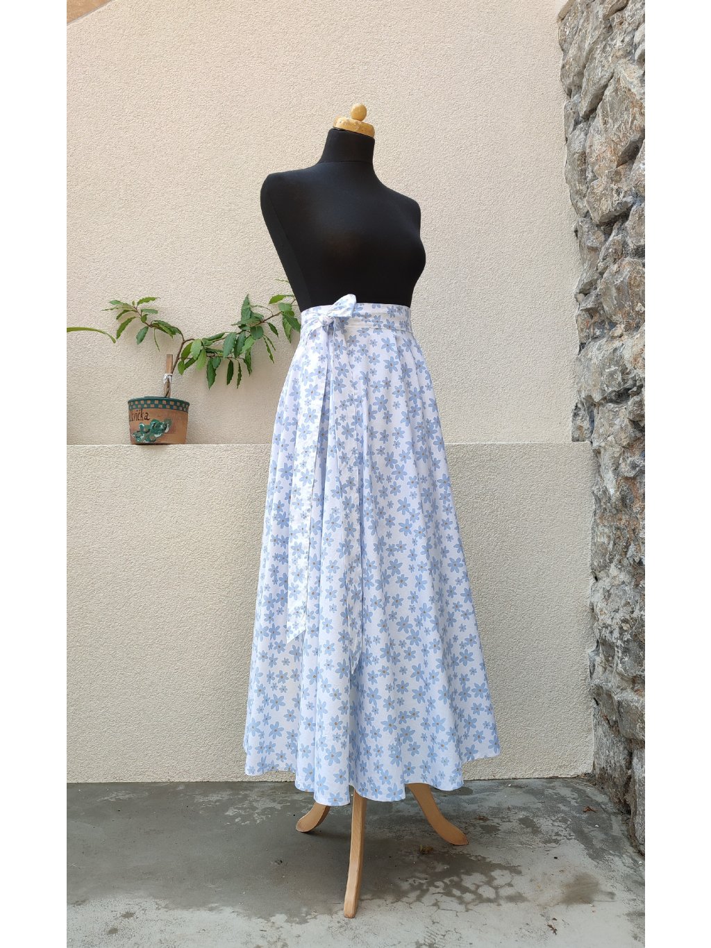 Jemná bavlna, bílý podklad s modrými kvítky.