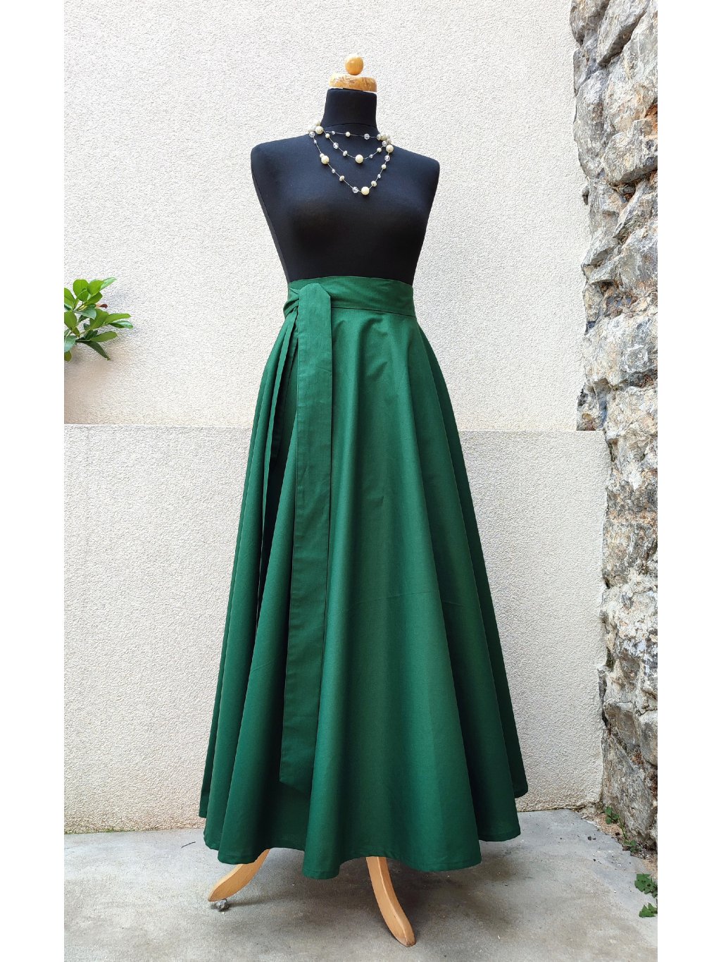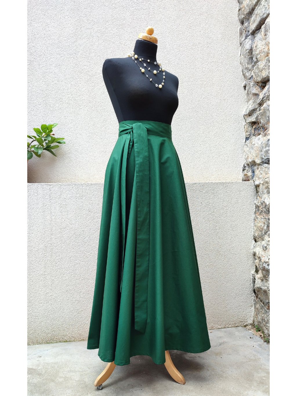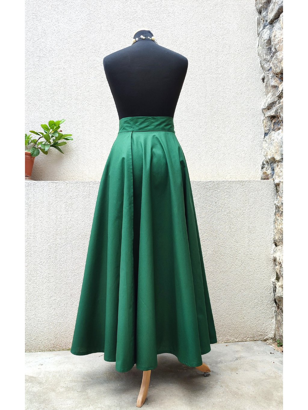 Dlouhá kolová sukně - tmavě zelená
