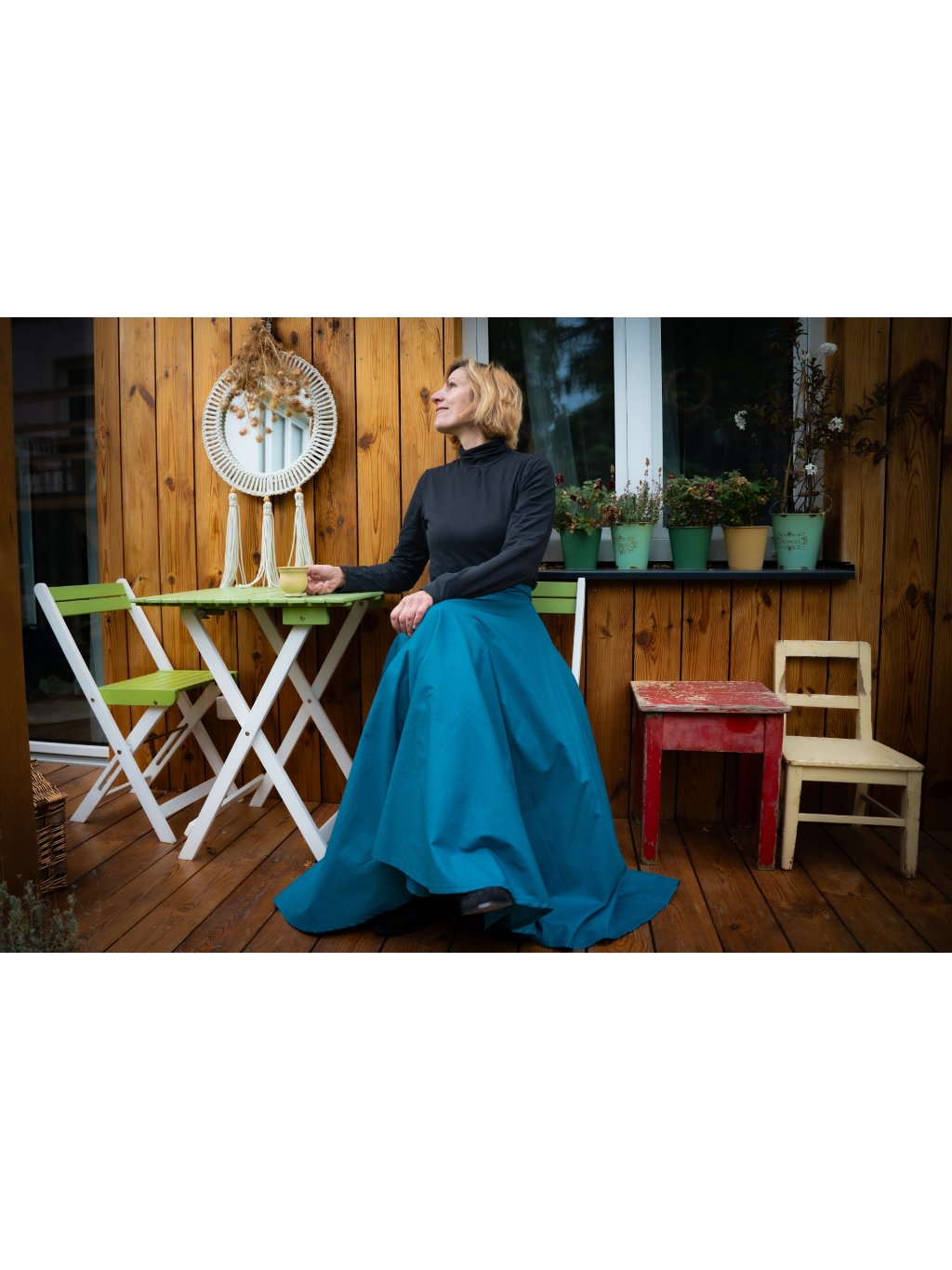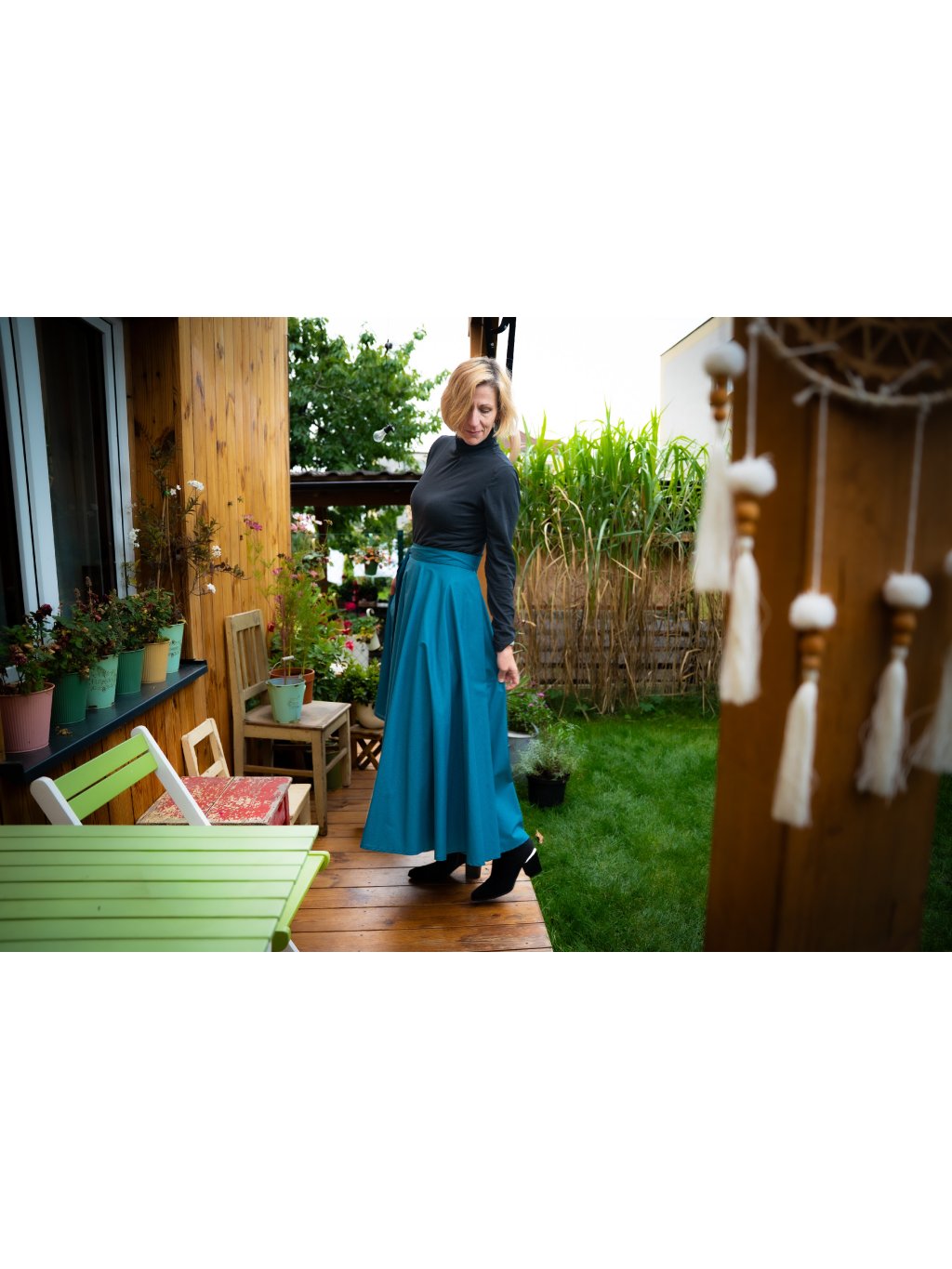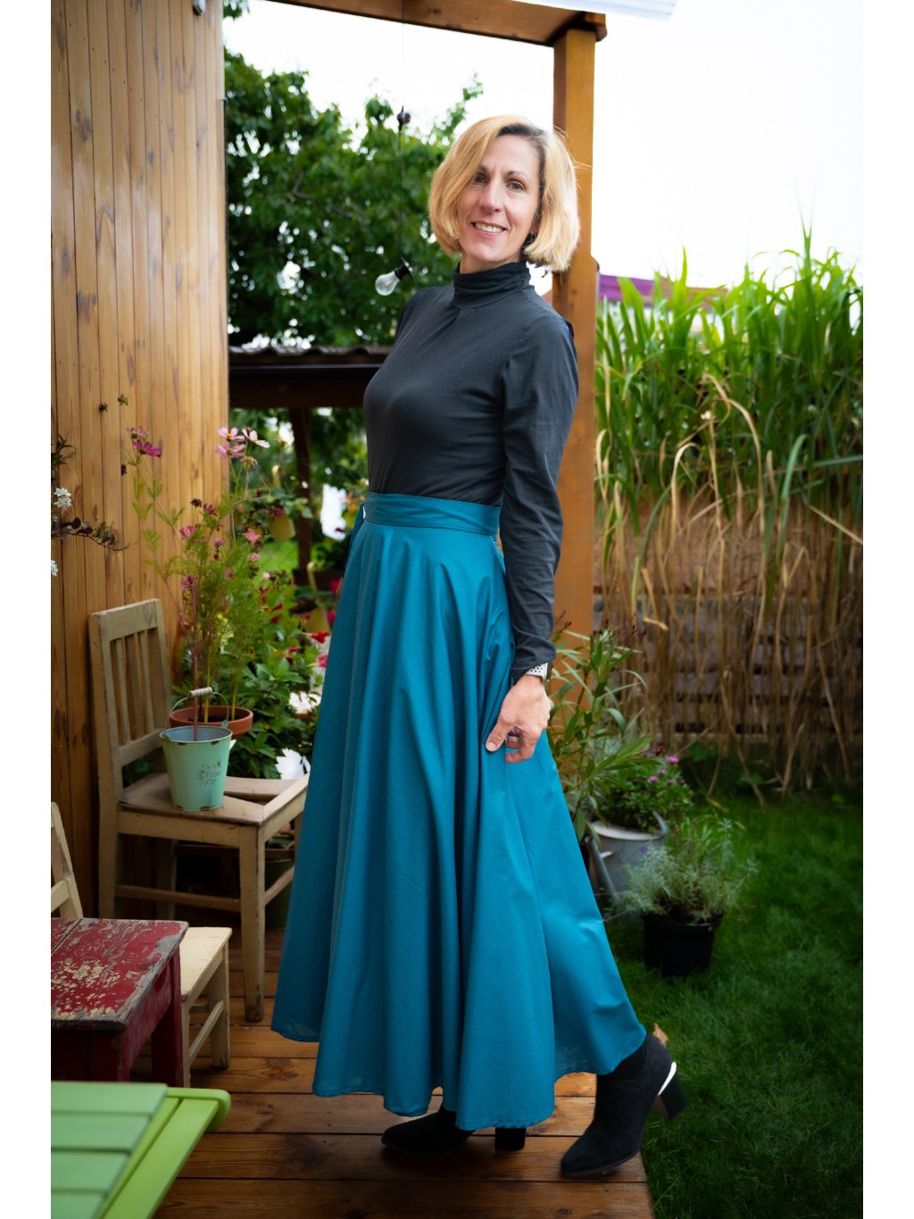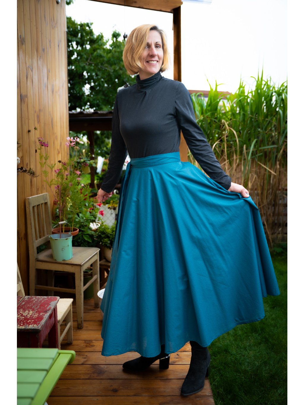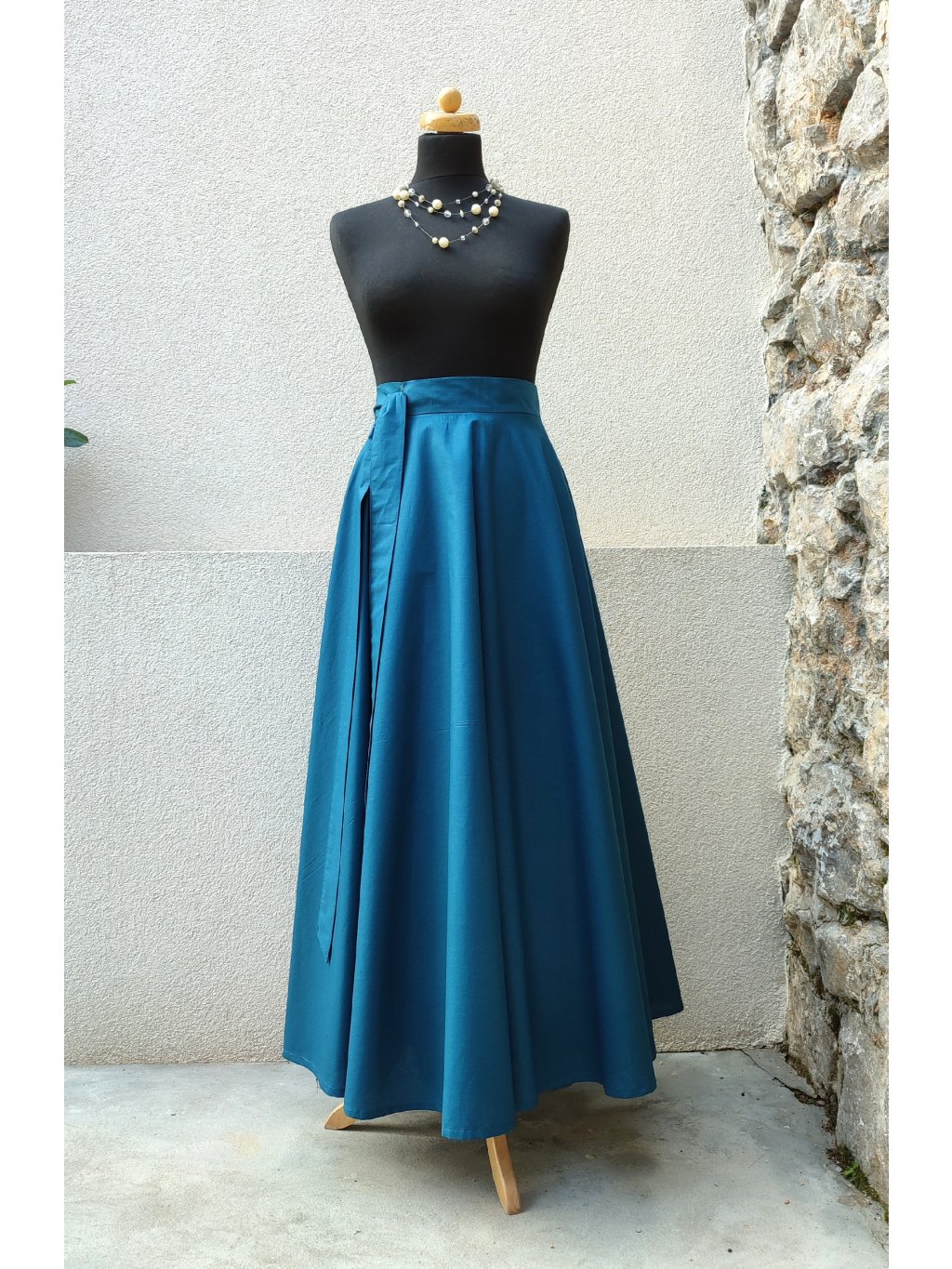 Dlouhá kolová sukně - tmavý petrolej
