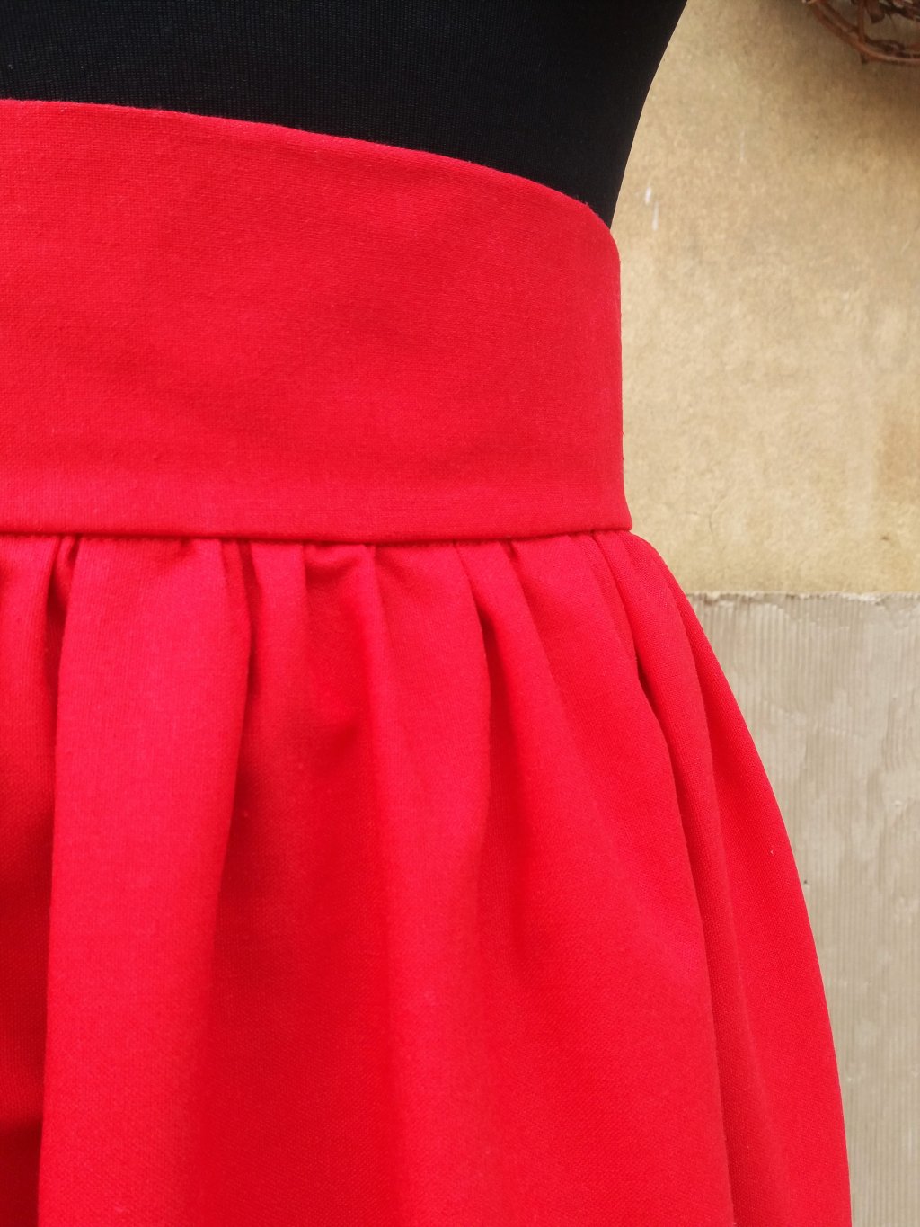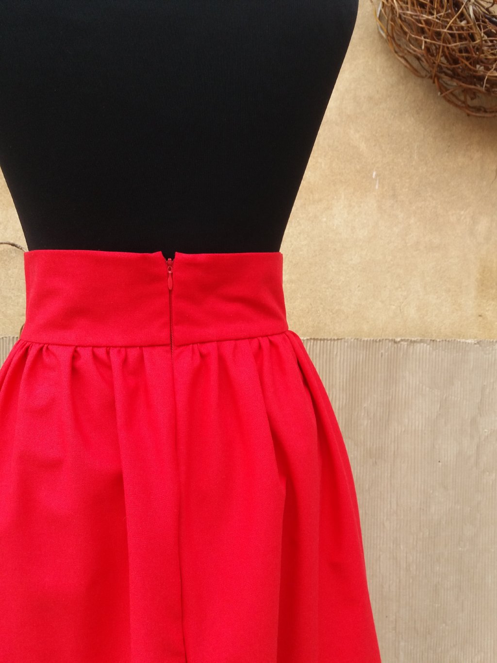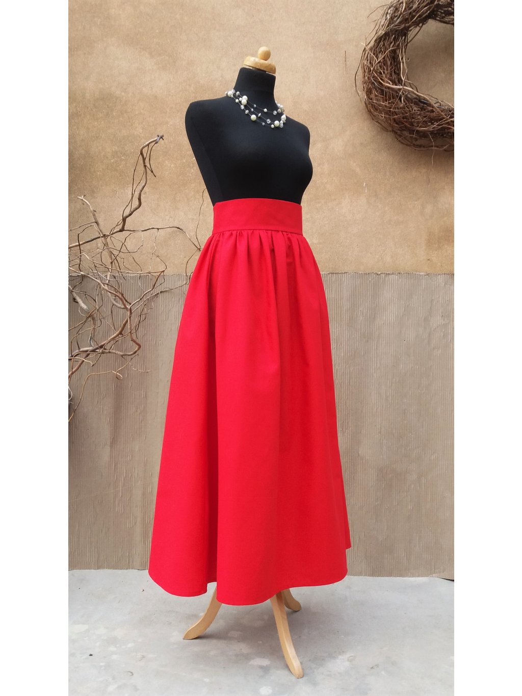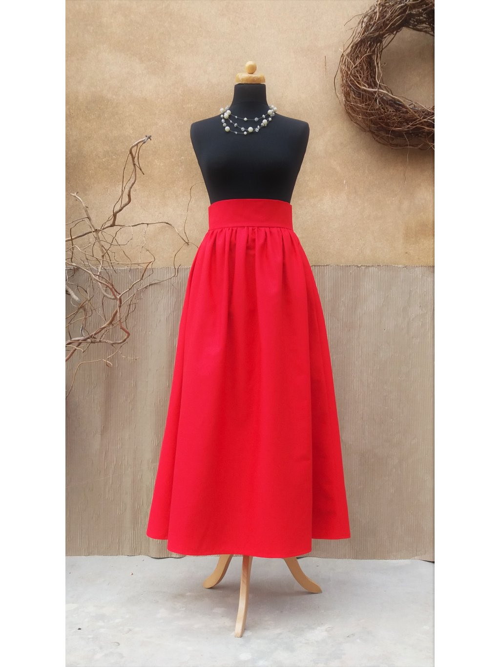 Originální sukně ušitá z kvalitního materiálu, směs bavlny a lnu v jasně červené barvě.