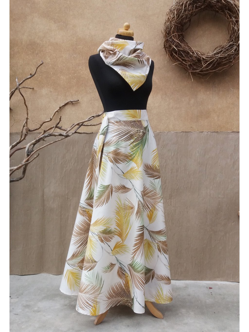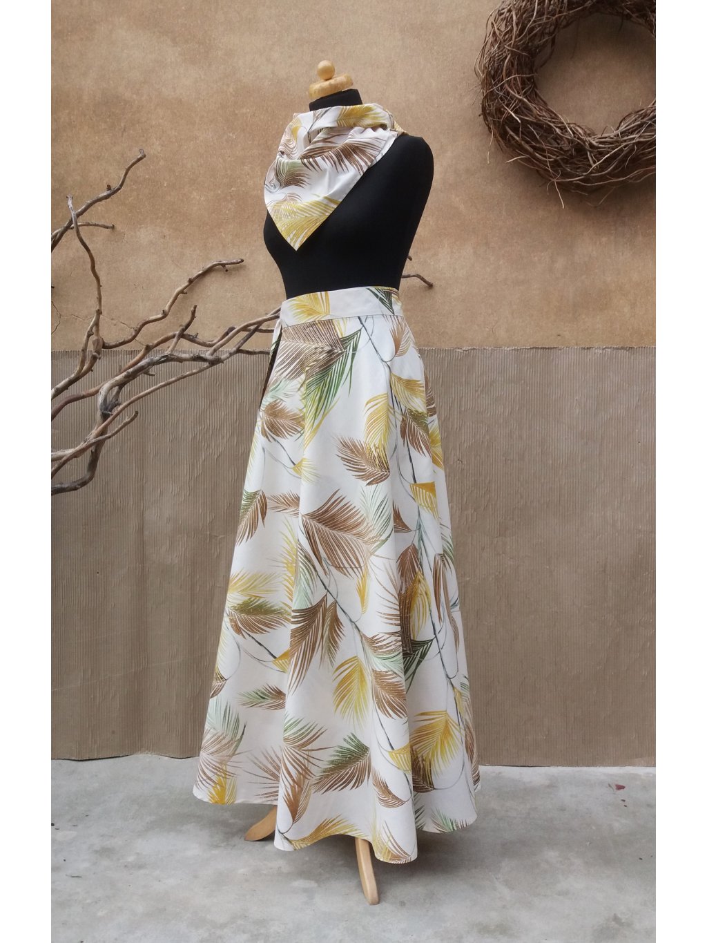 Dlouhá půlkolová sukně - béžová paradise