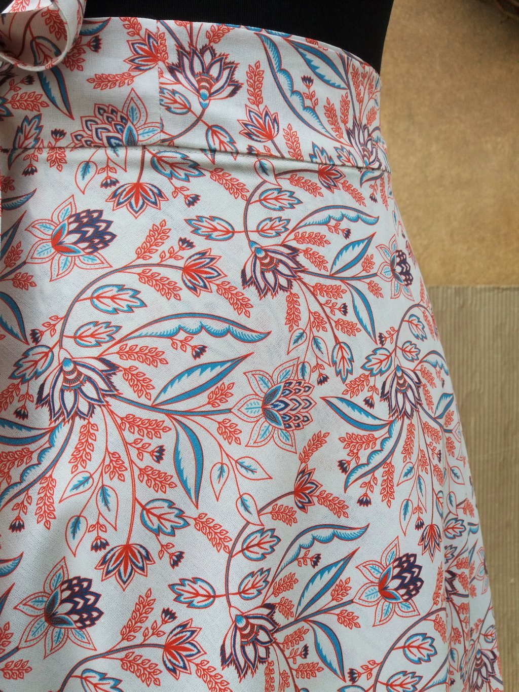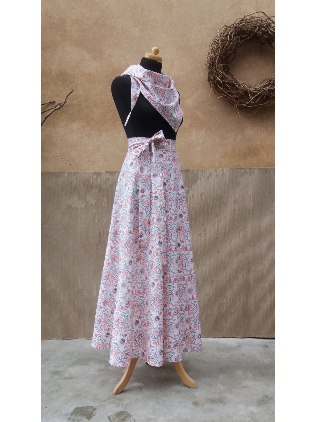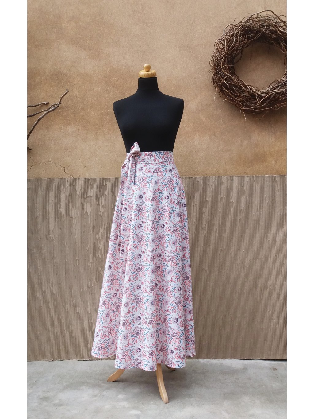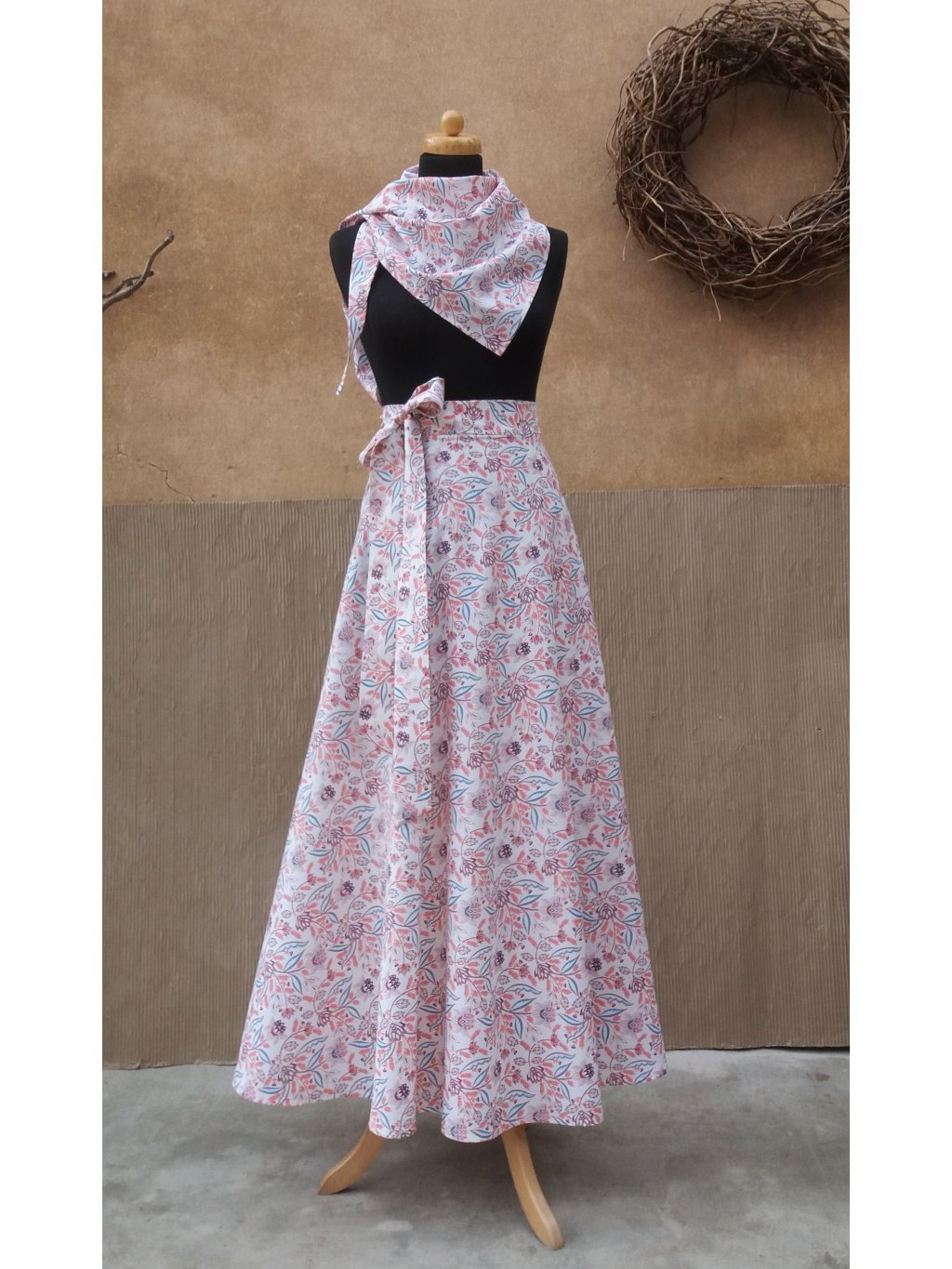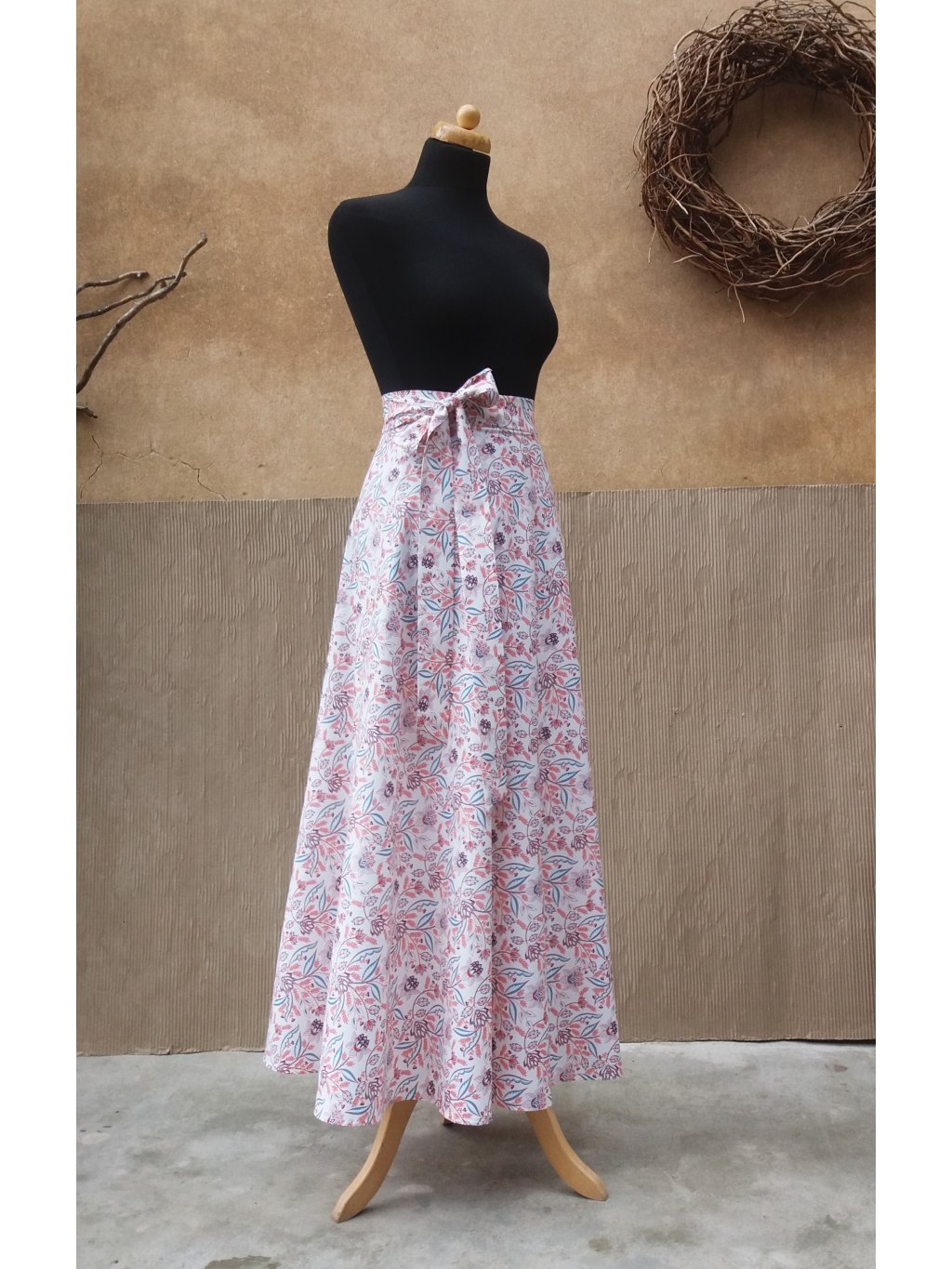 Dlouhá půlkolová sukně - bílá káva s kvítky
