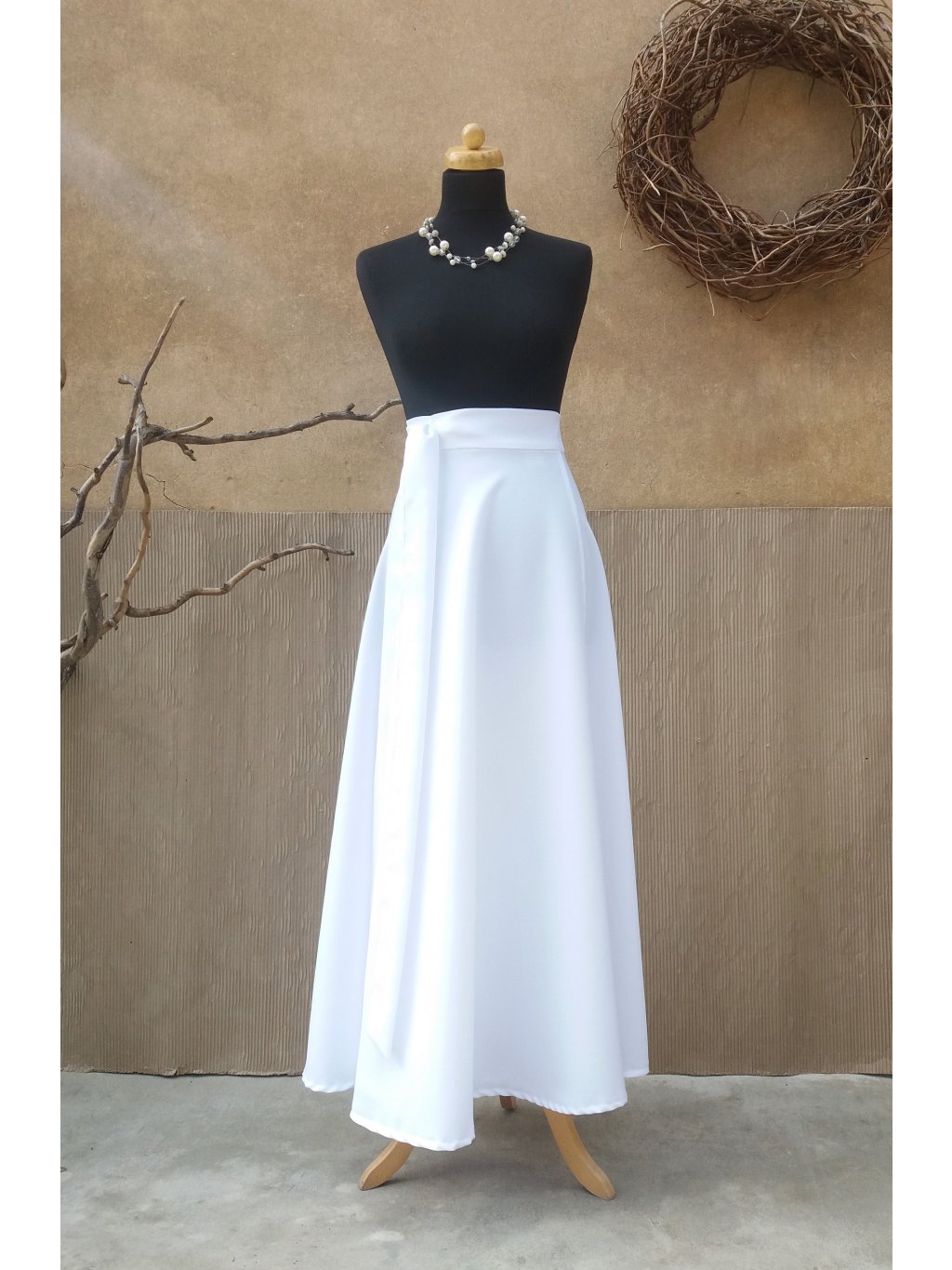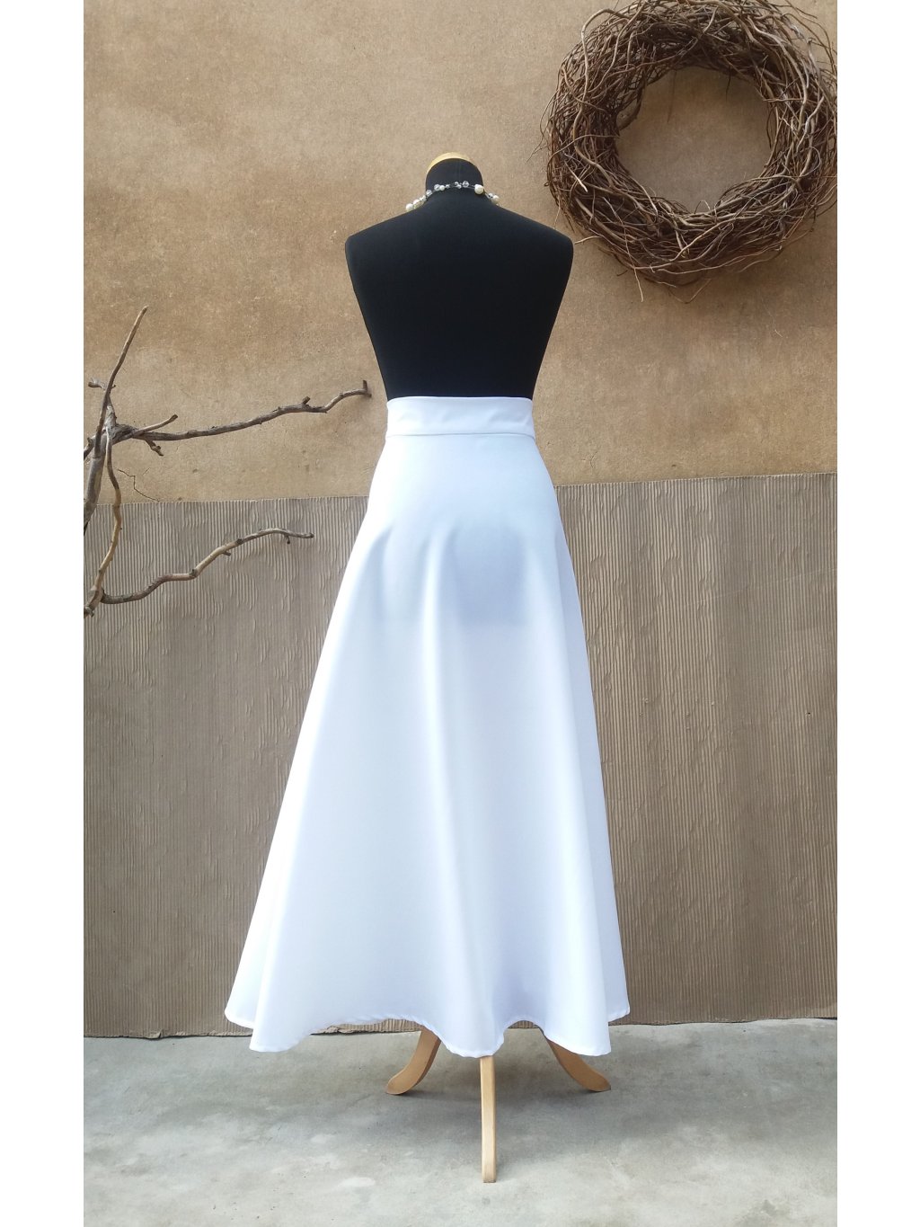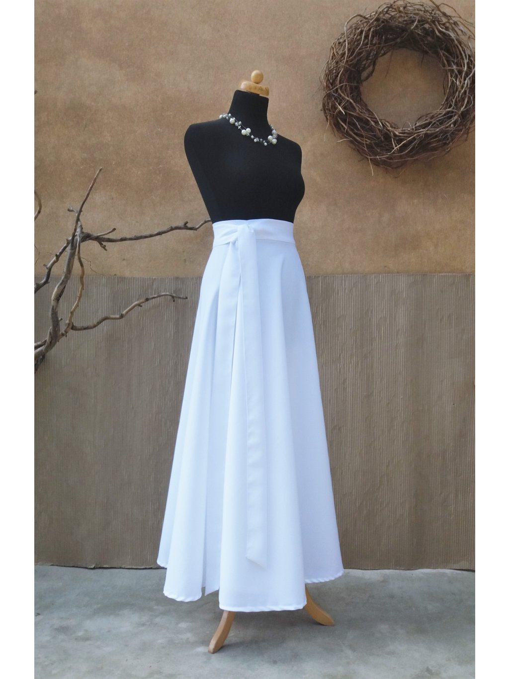 Dlouhá půlkolová sukně - bílá nejen svatební