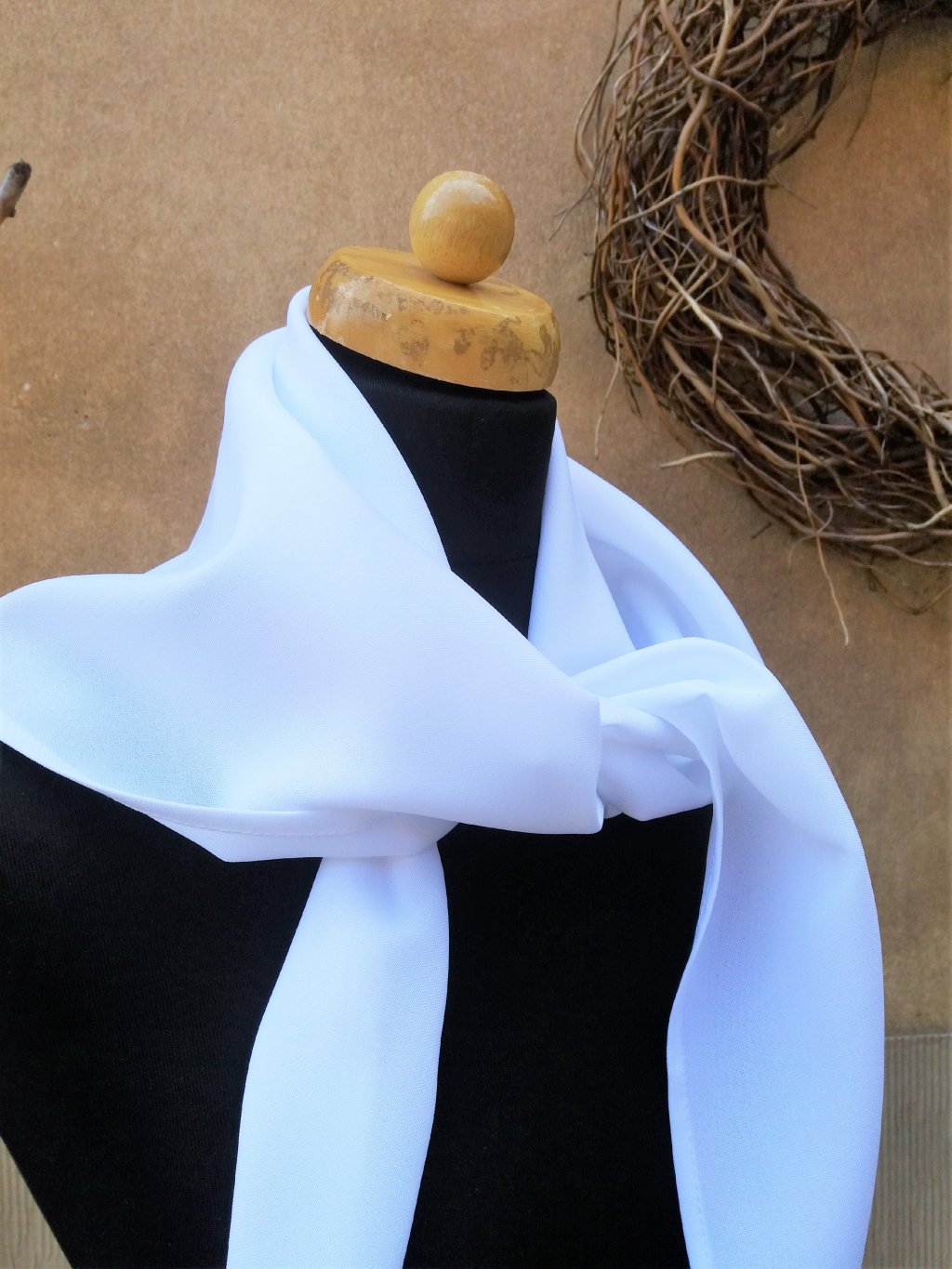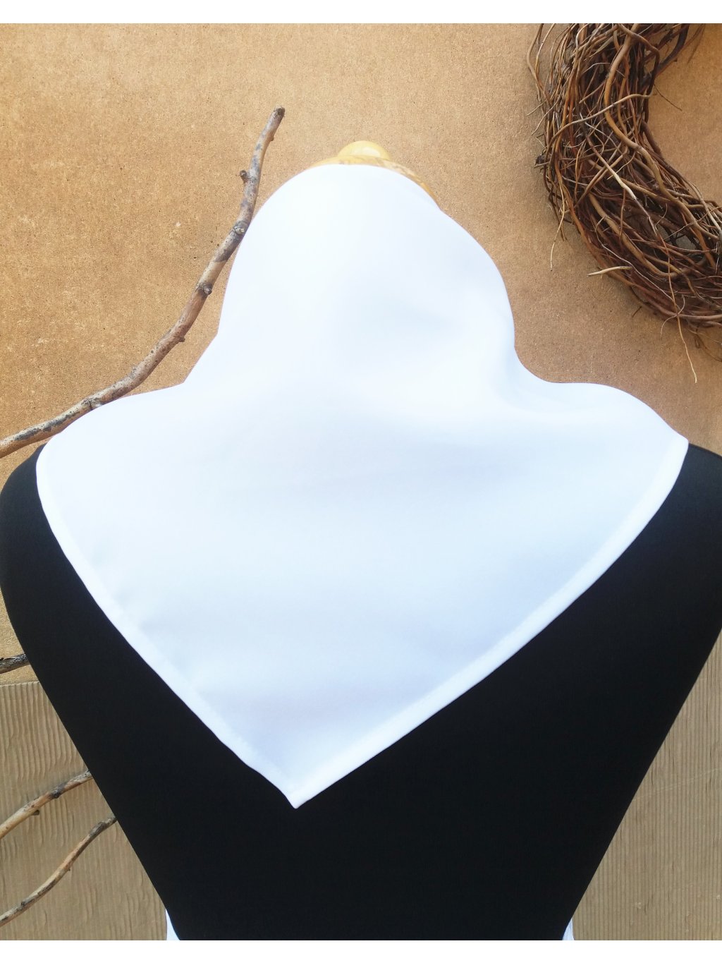 Šáteček vypadá hezky uvázán kolem krku.