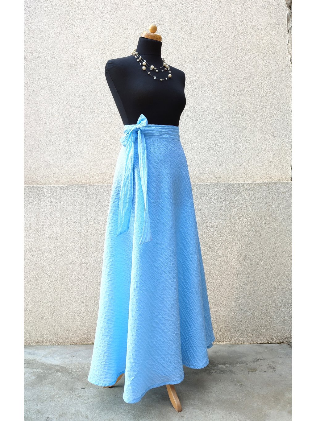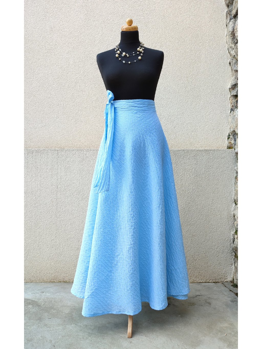 Dlouhá půlkolová sukně - blankytně modrá