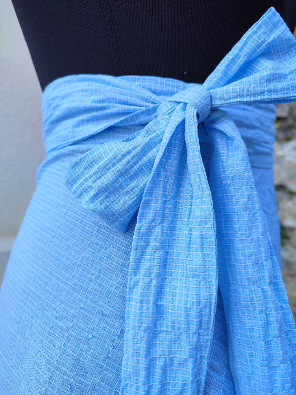 Elegantní, zavinovací sukně půlkolového střihu.