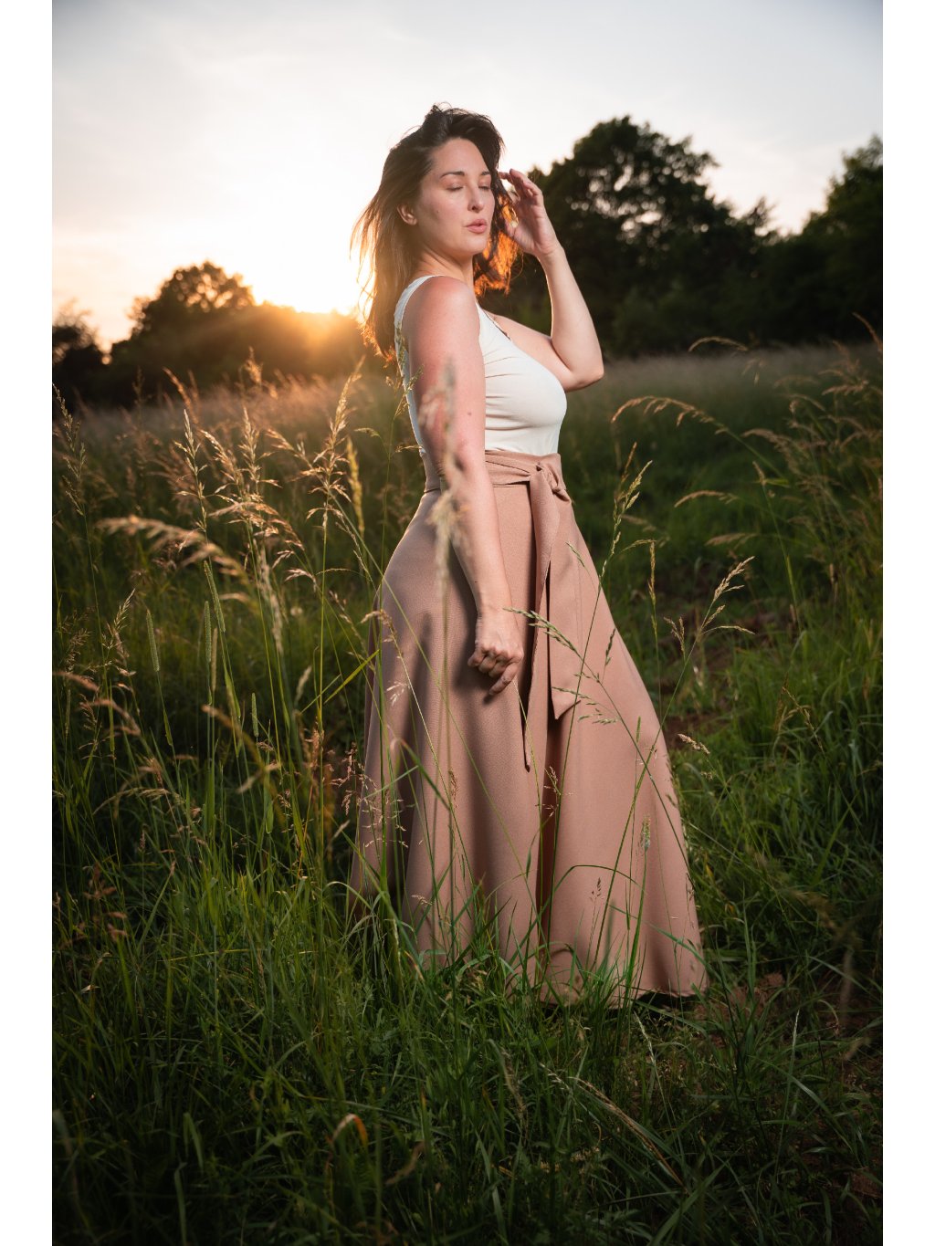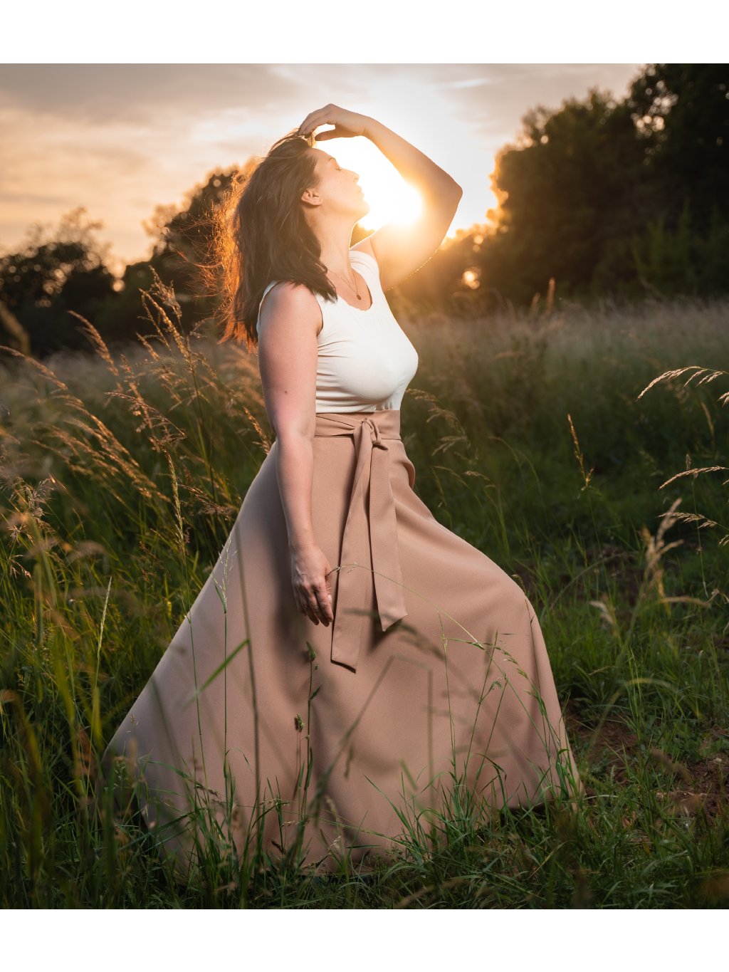 Ušita z umělého vlákna příjemného na omak, které krásně splývá, ale přesto drží bohatý objem. Pohodlný střih, pouze oviňte kolem pasu a uvažte mašli či uzlík.