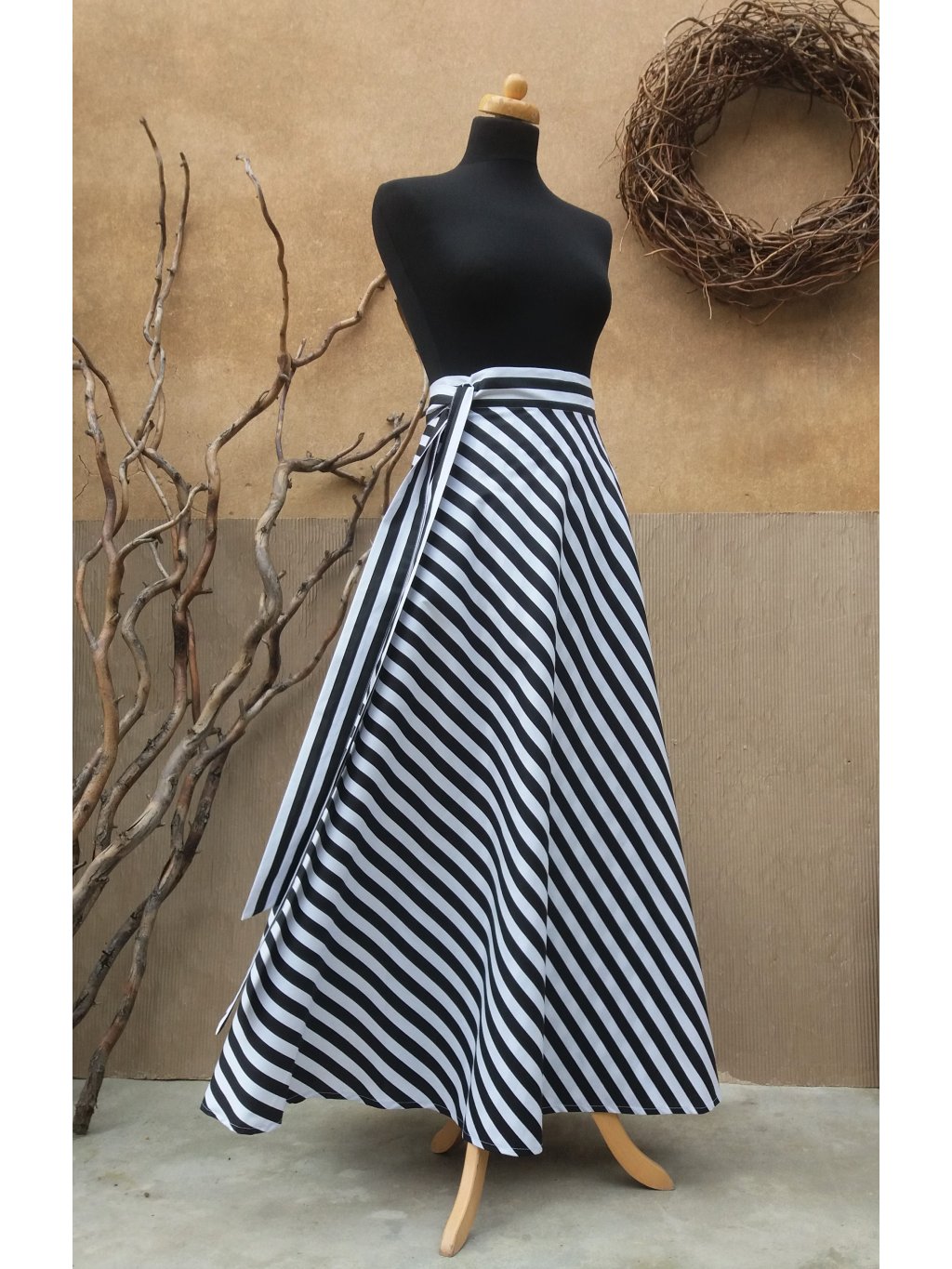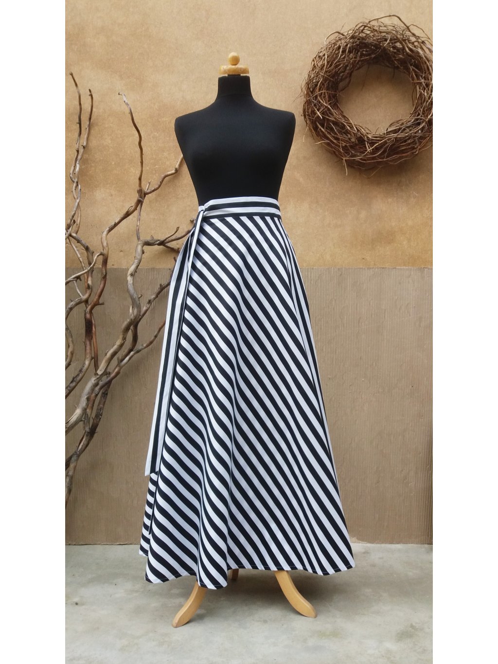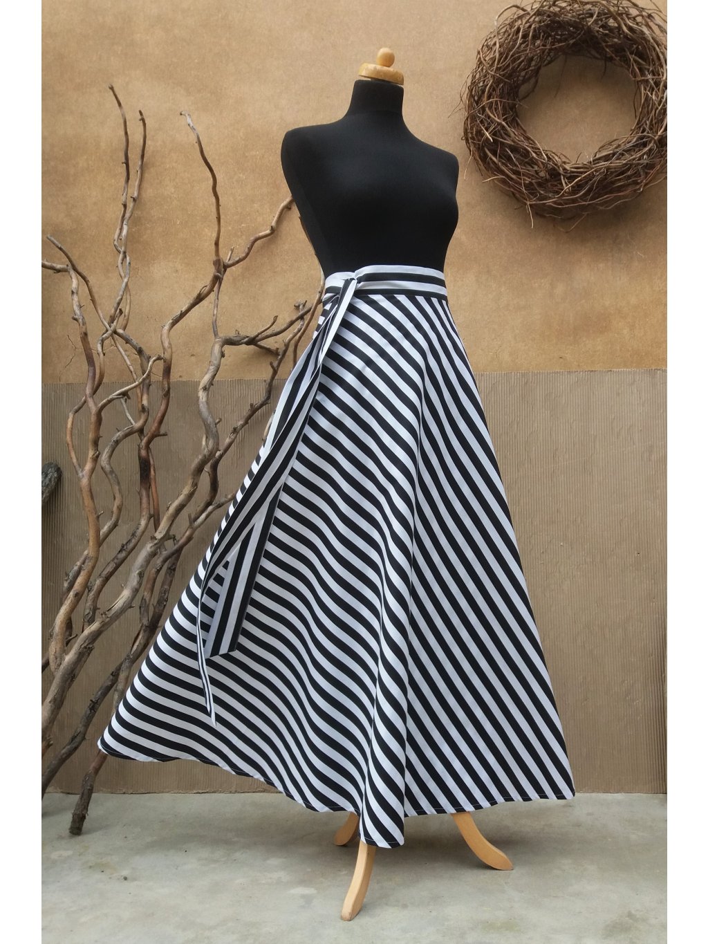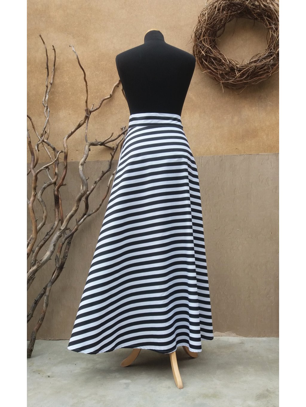 Dlouhá půlkolová sukně - černý proužek