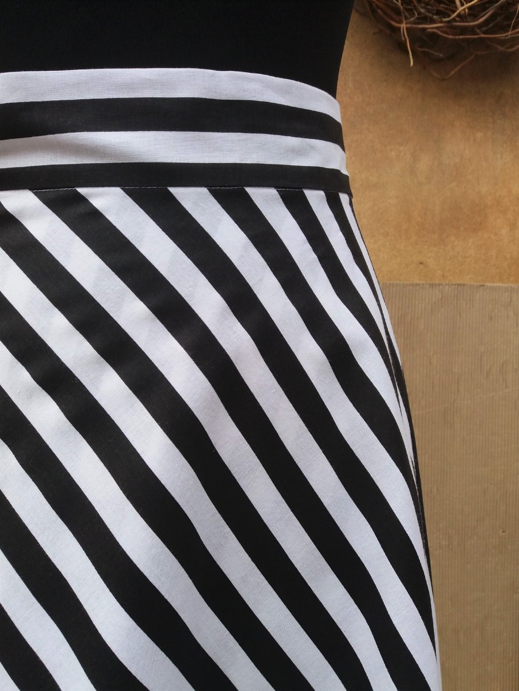 Bavlna, černý proužek na bílém podkladu, krásné kontrasty.