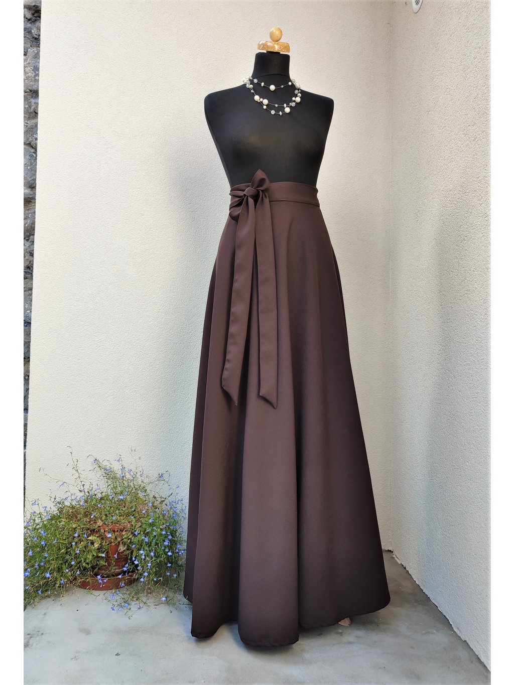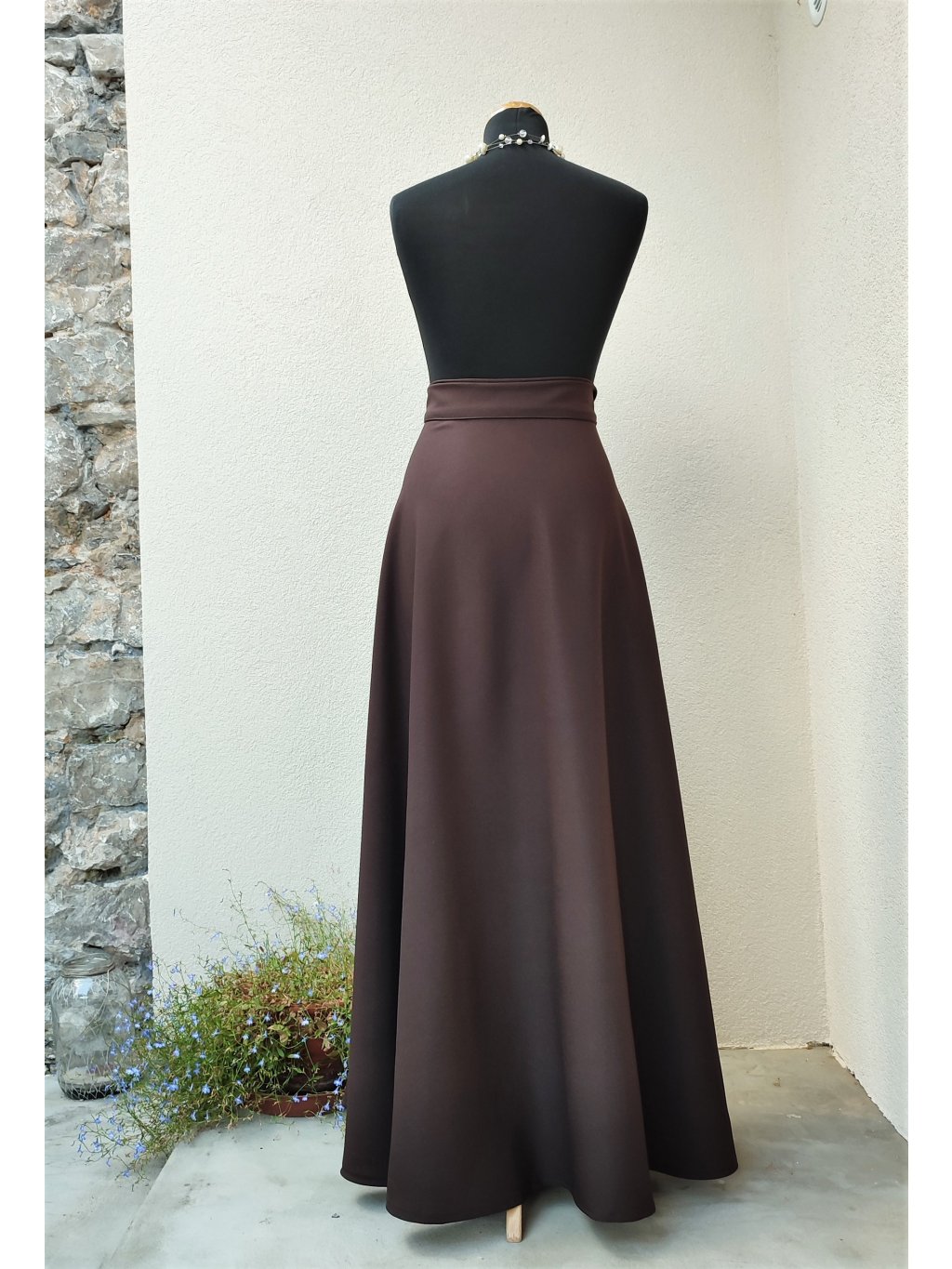 Zavinovací sukně půlkolového střihu, hnědá barva.