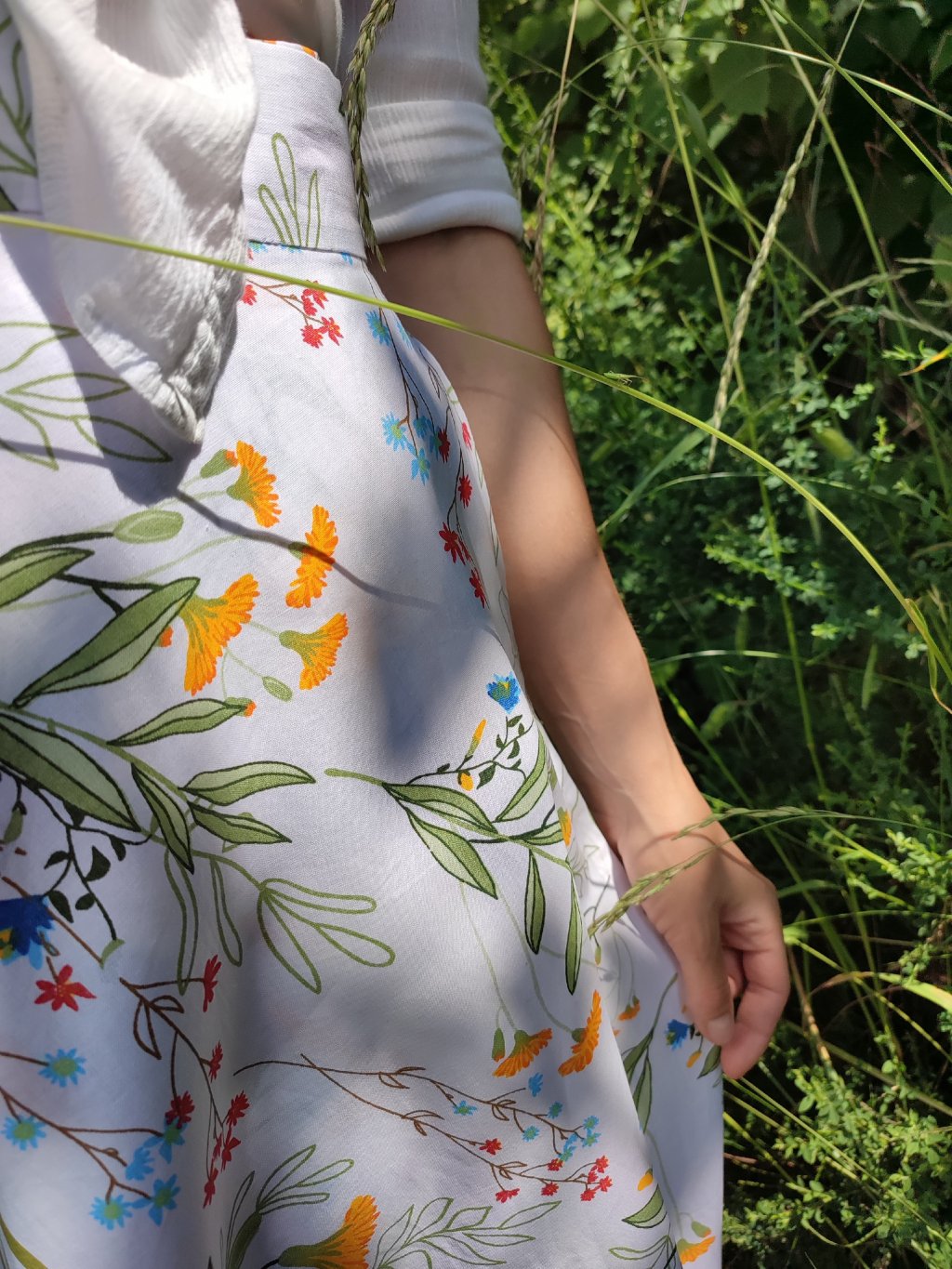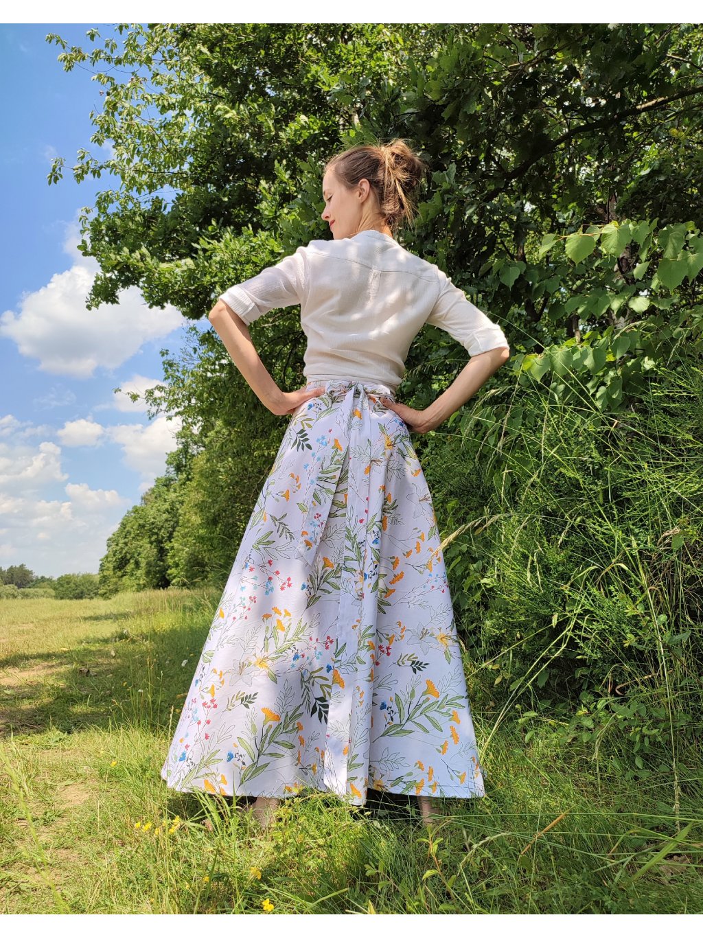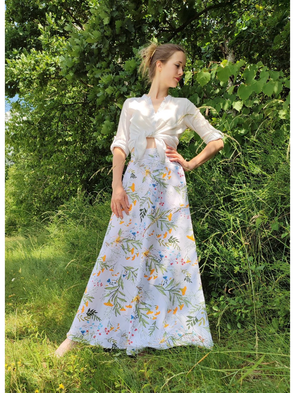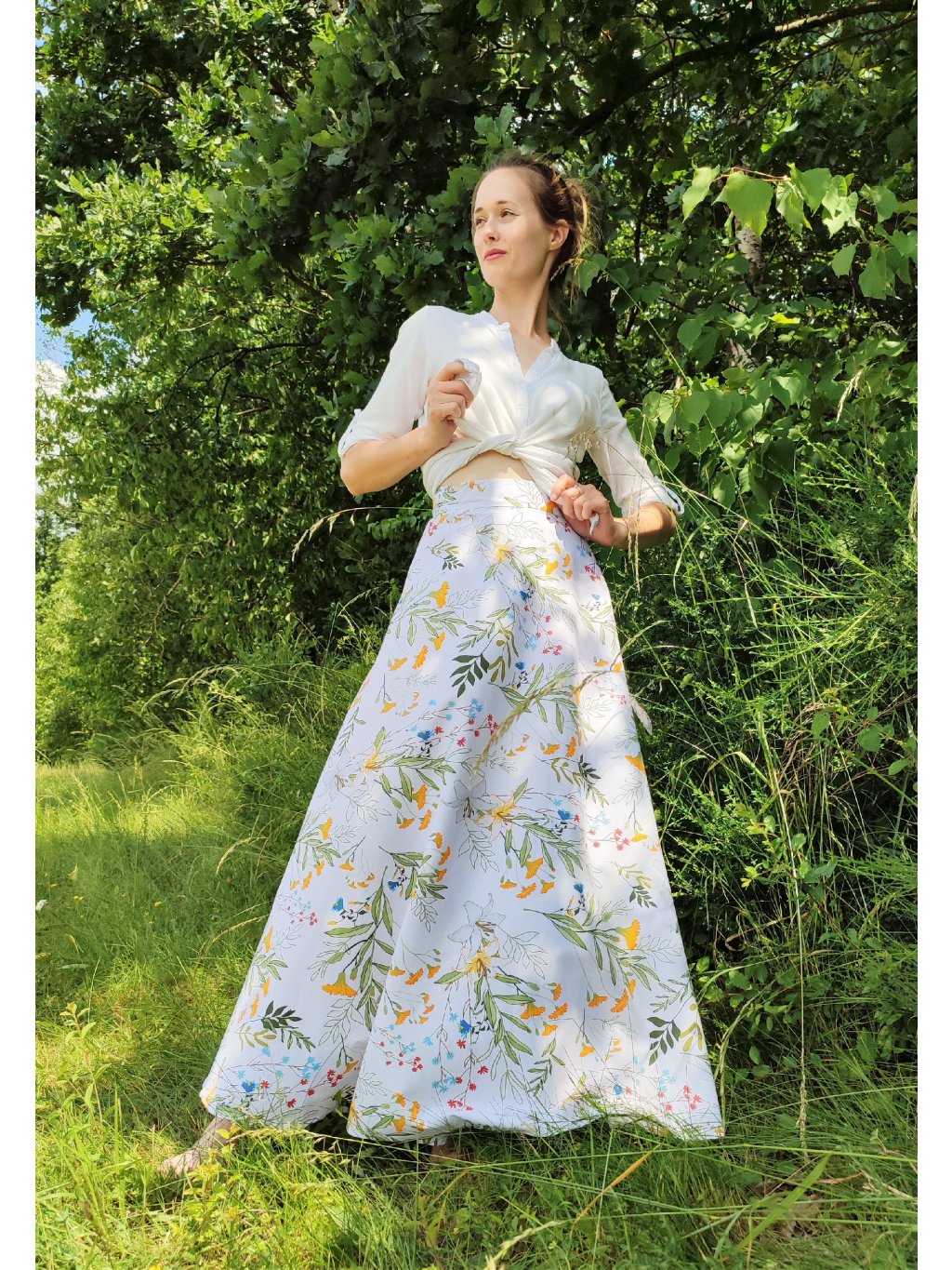 Dlouhá půlkolová sukně - louka