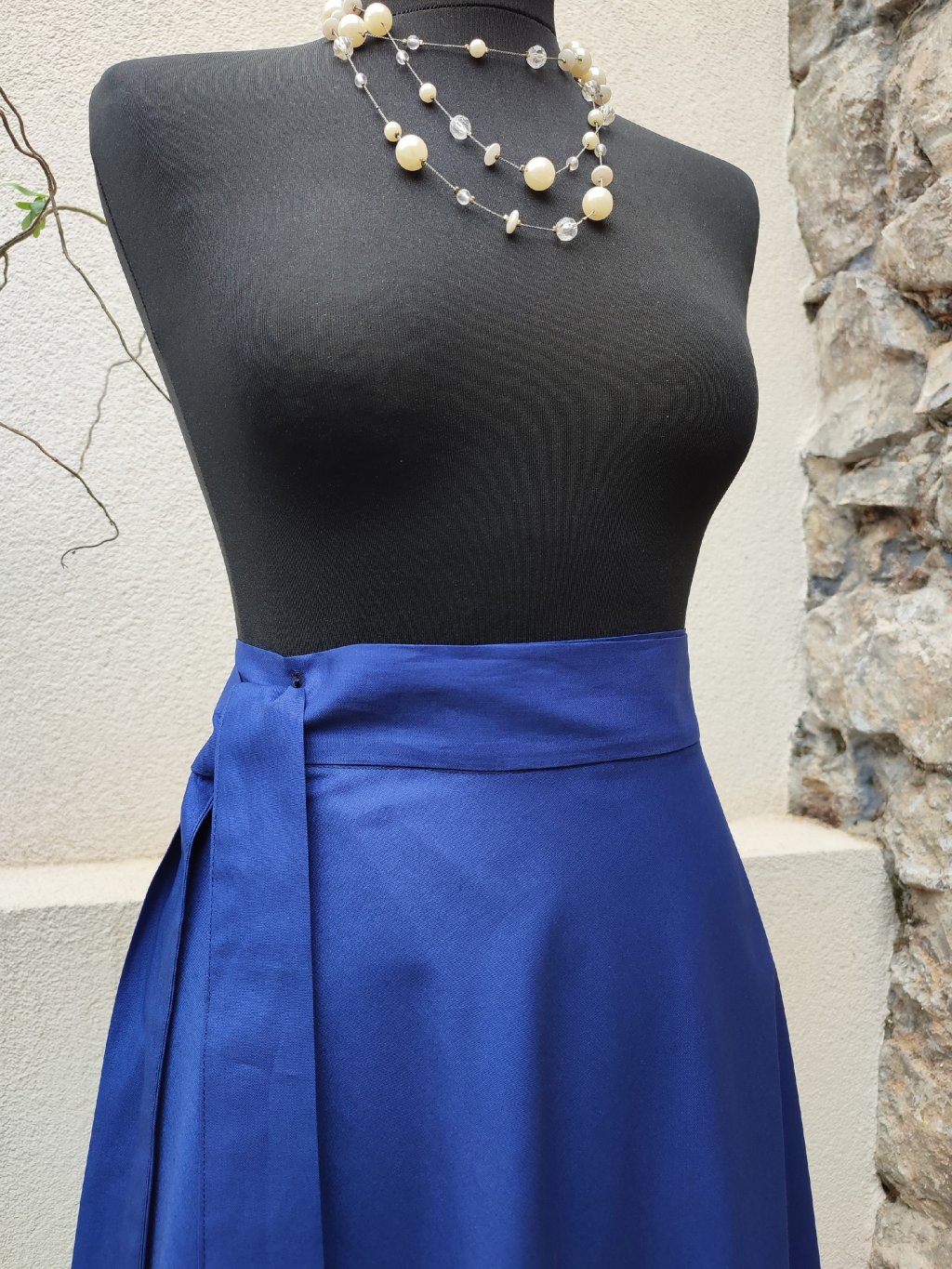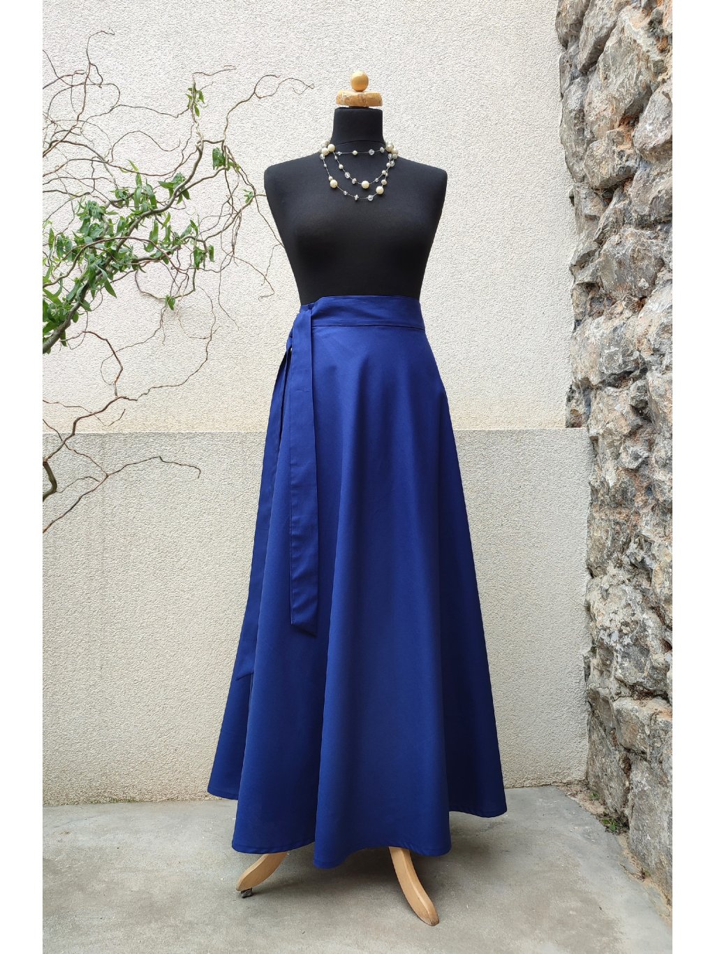 Nadčasová, elegantní a ručně šitá s důrazem na detail. Tato dlouhá půlkolová sukně z 100 % bavlny v hluboké námořnické modři (navy) je ideální pro ženy, které hledají kombinaci klasiky, pohodlí a originality.
