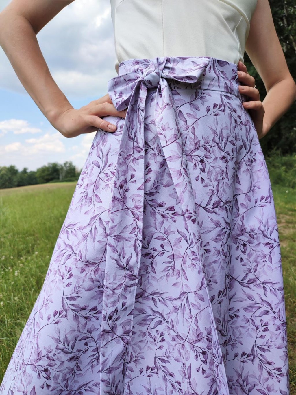 Něžná zavinovací sukně půlkolového střihu.