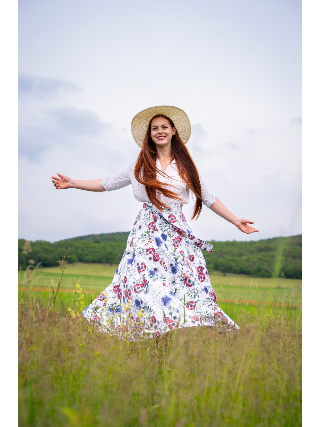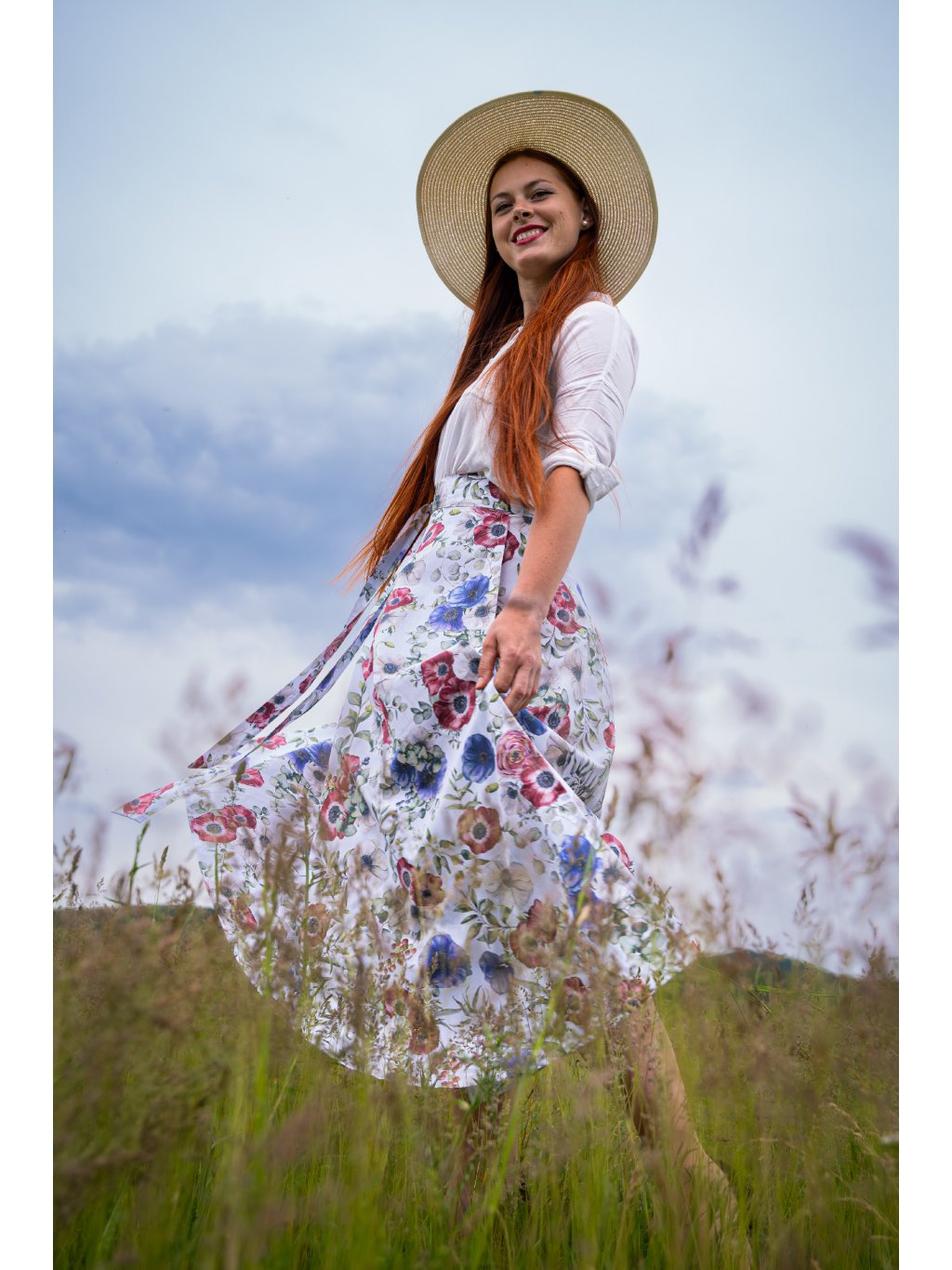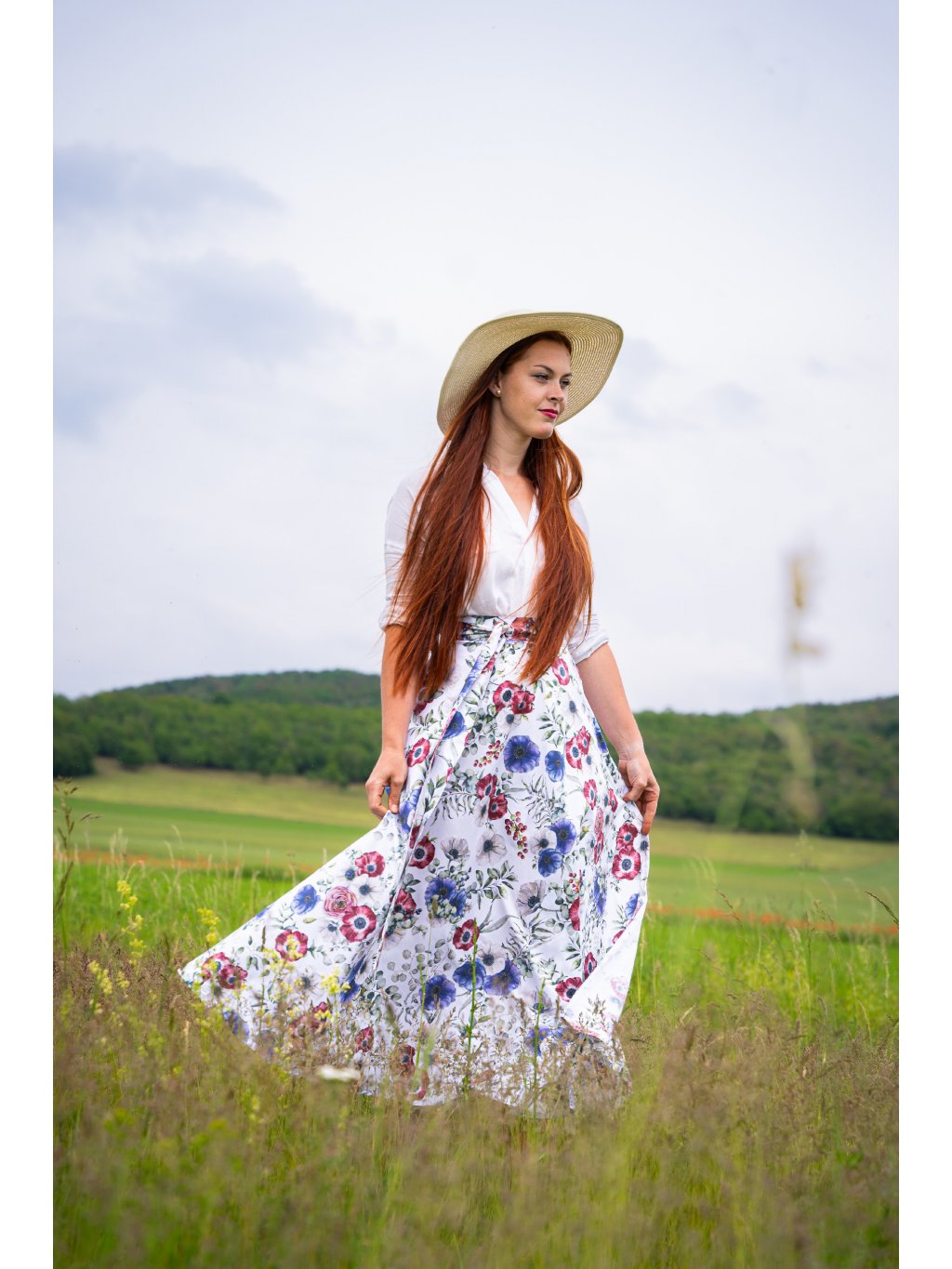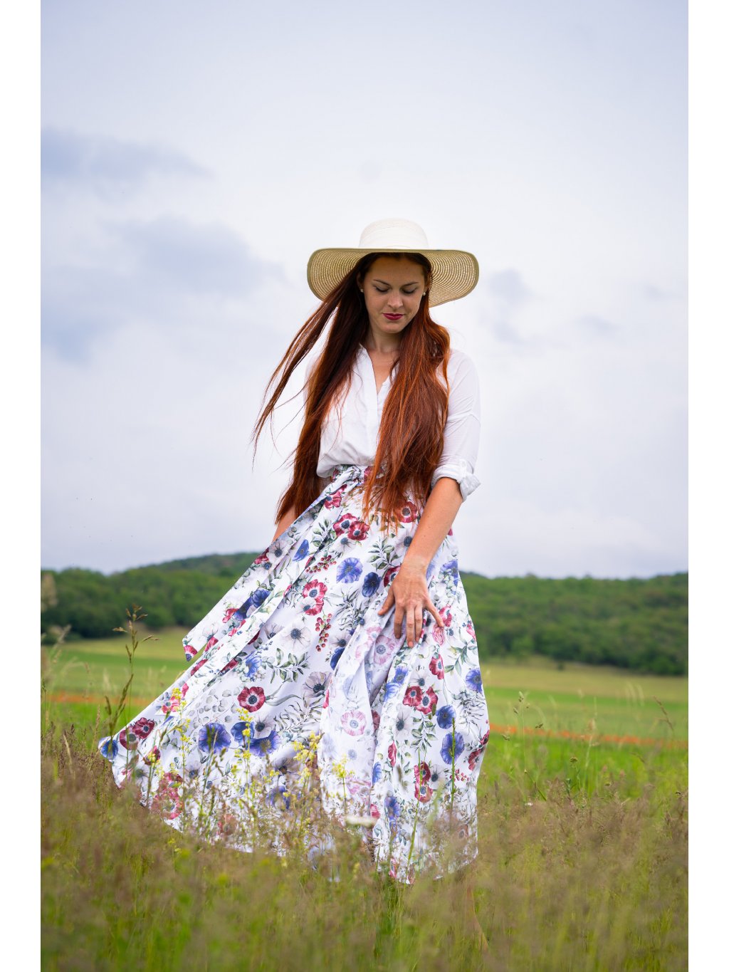Dlouhá půlkolová sukně - s máky