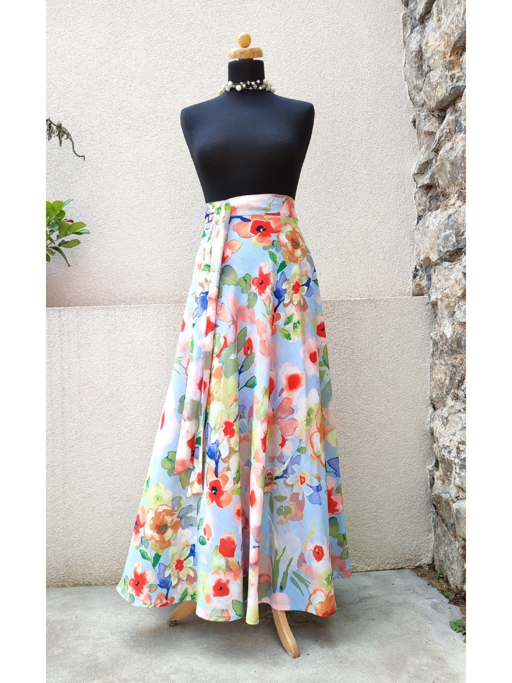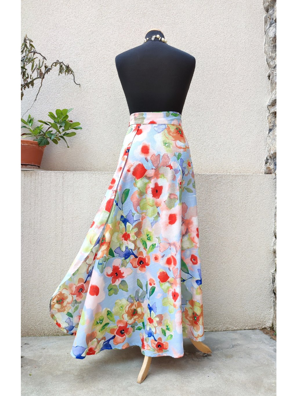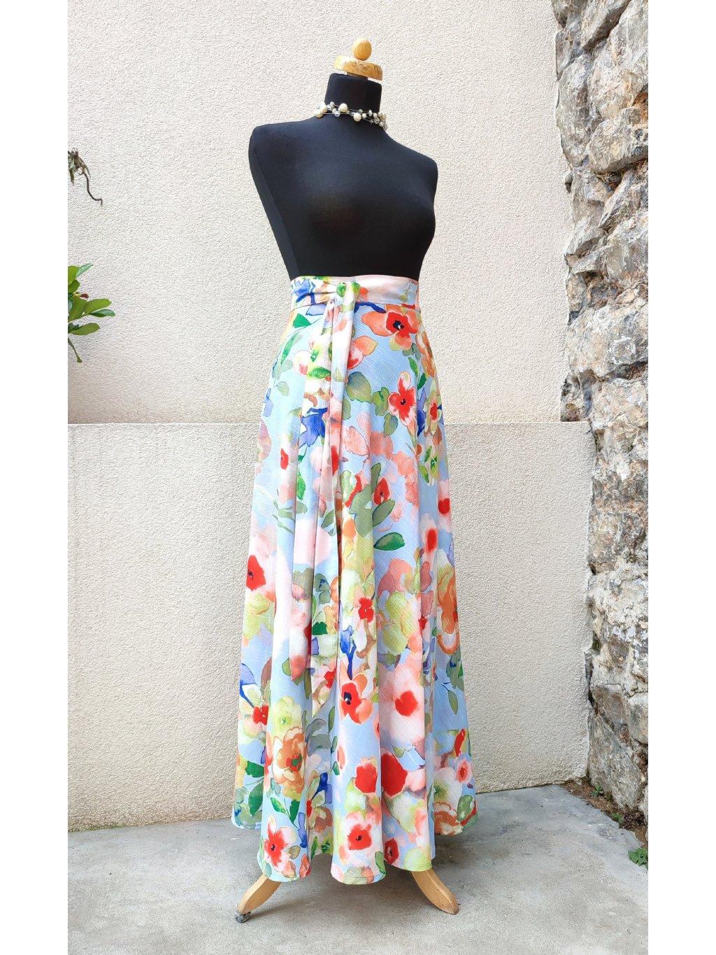 Dlouhá půlkolová sukně - viskoza - akvarelové květy