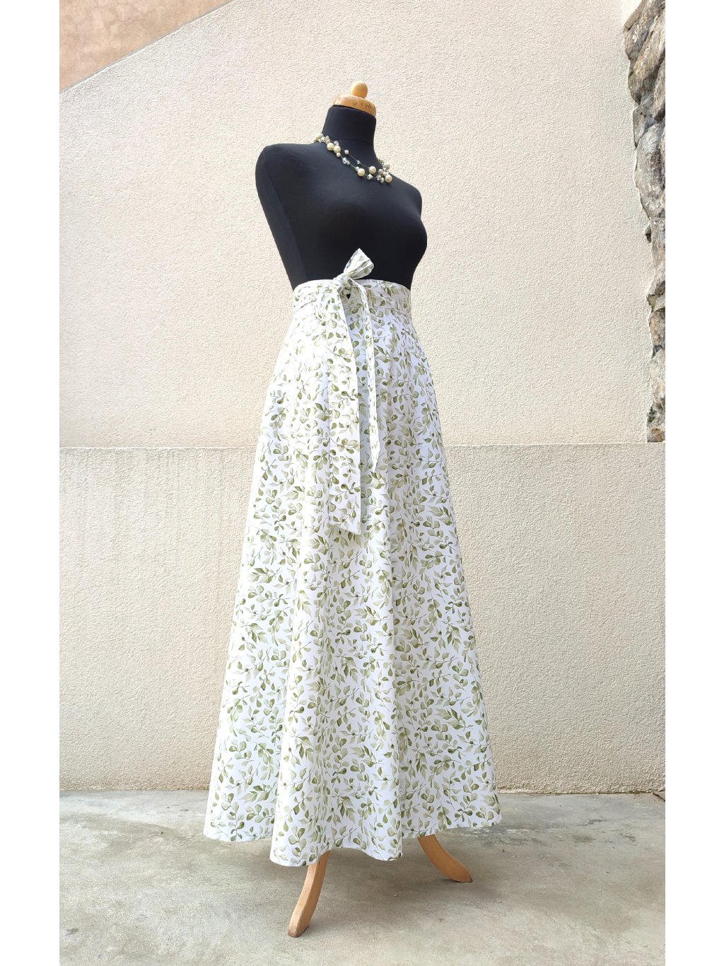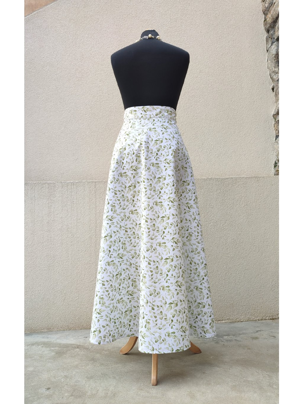 Dlouhá půlkolová sukně - zelené lístky