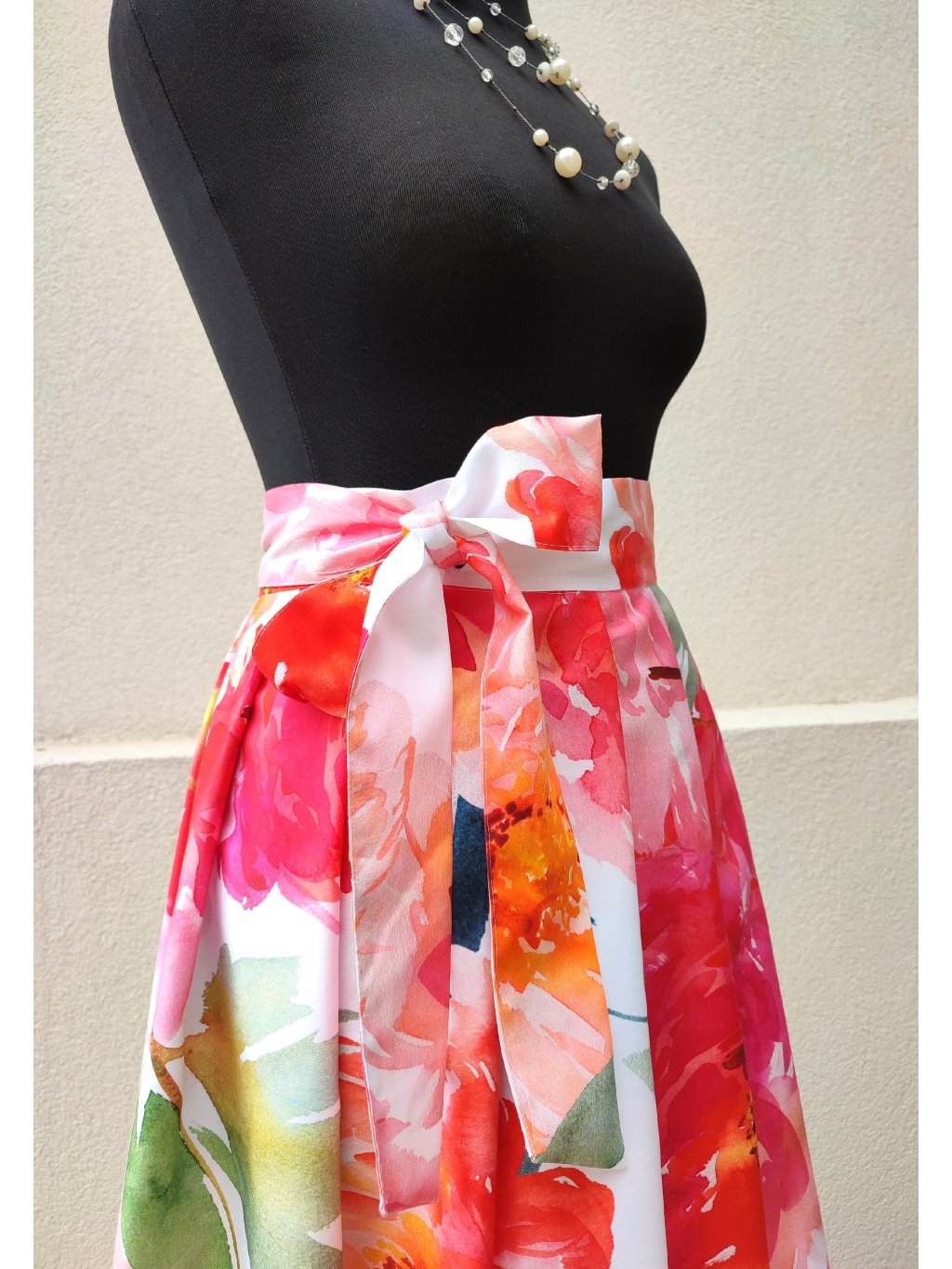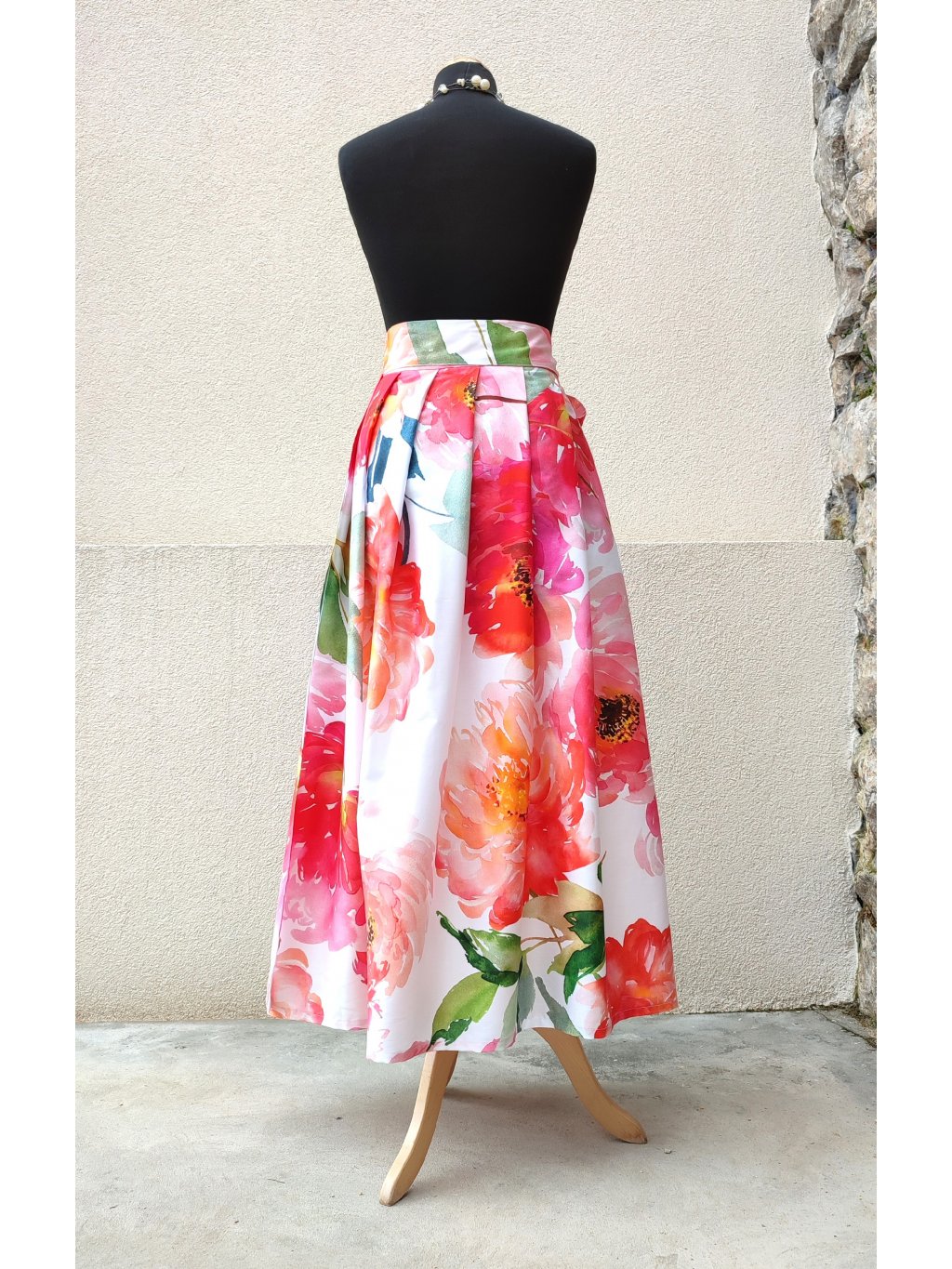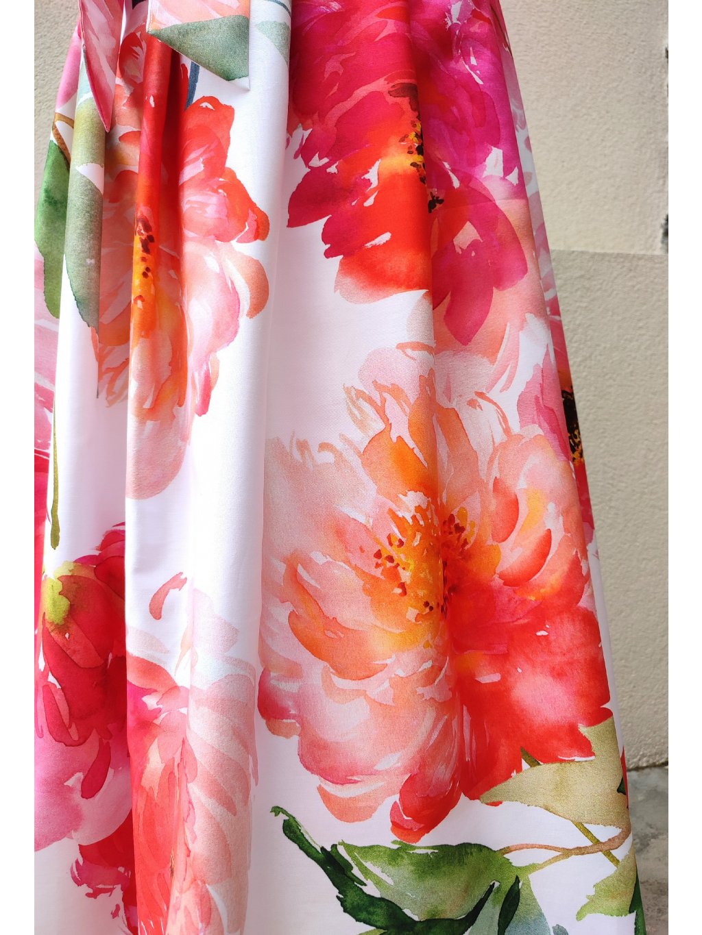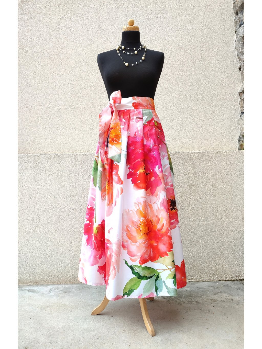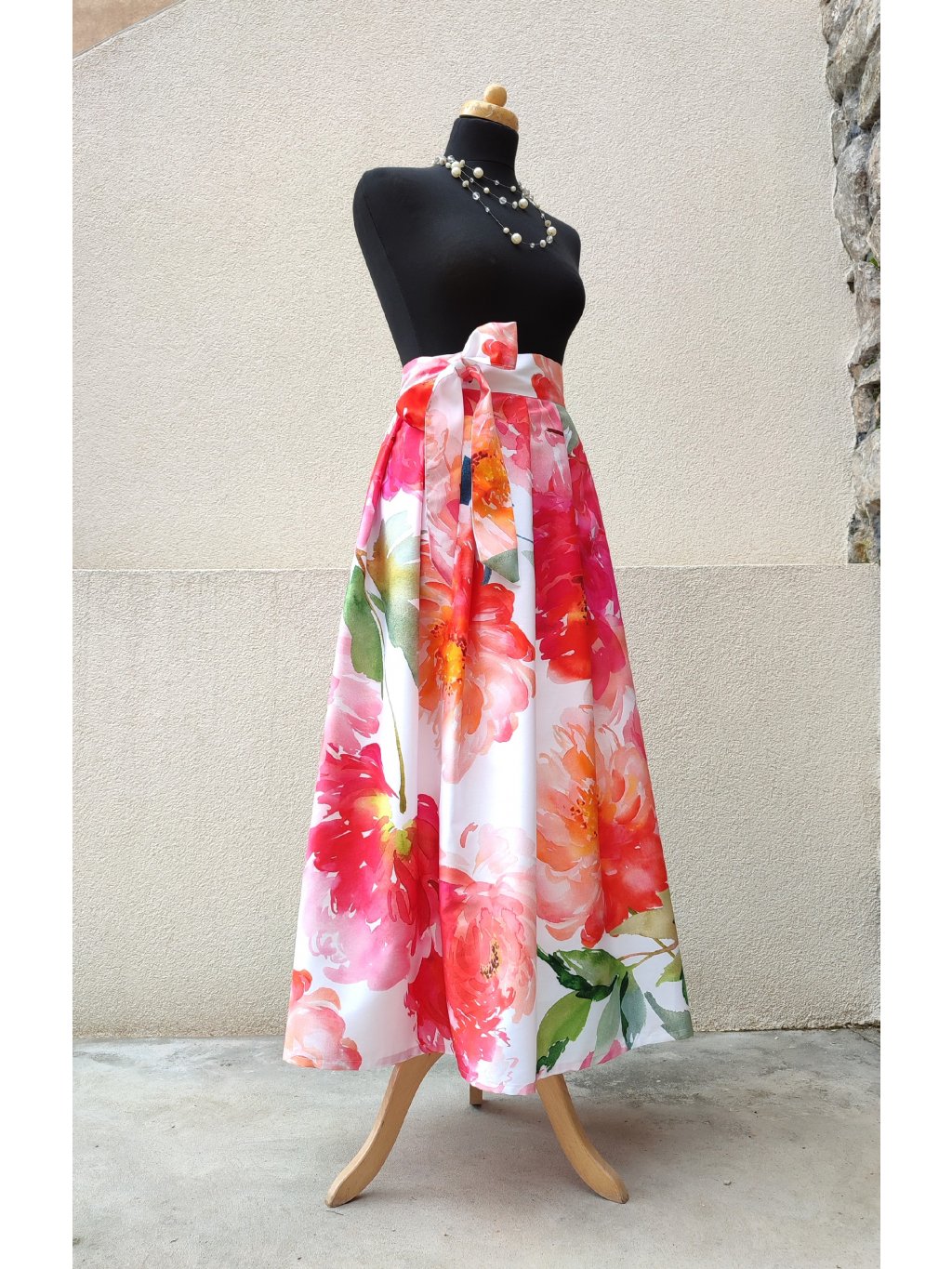 Dlouhá zavinovací sukně - saténové pivoňky