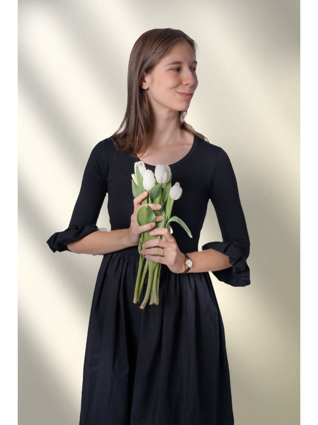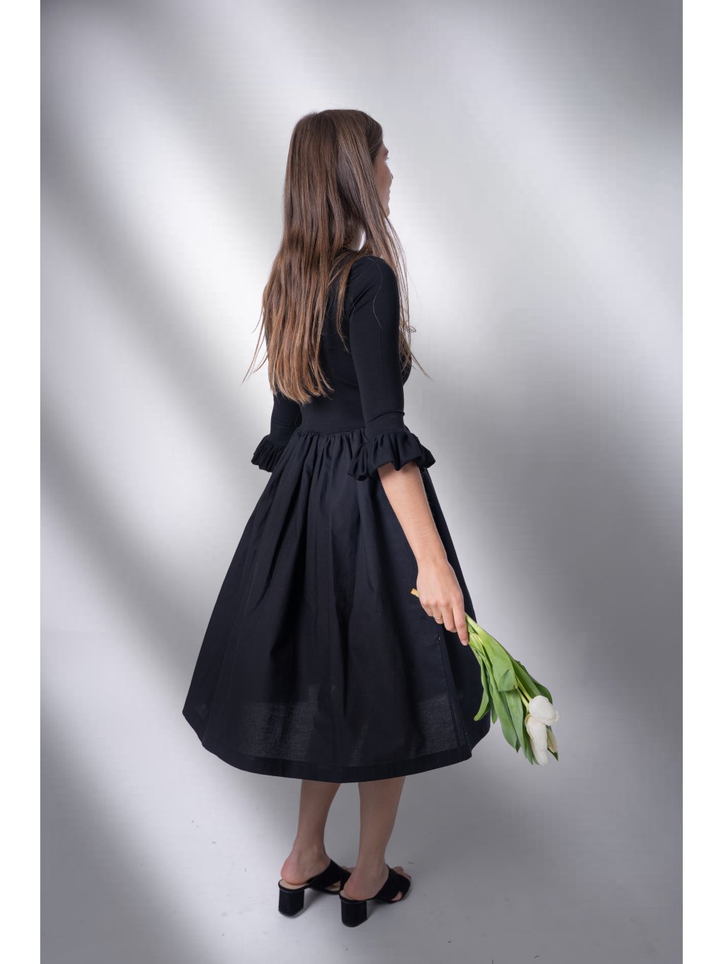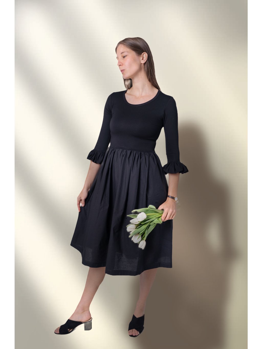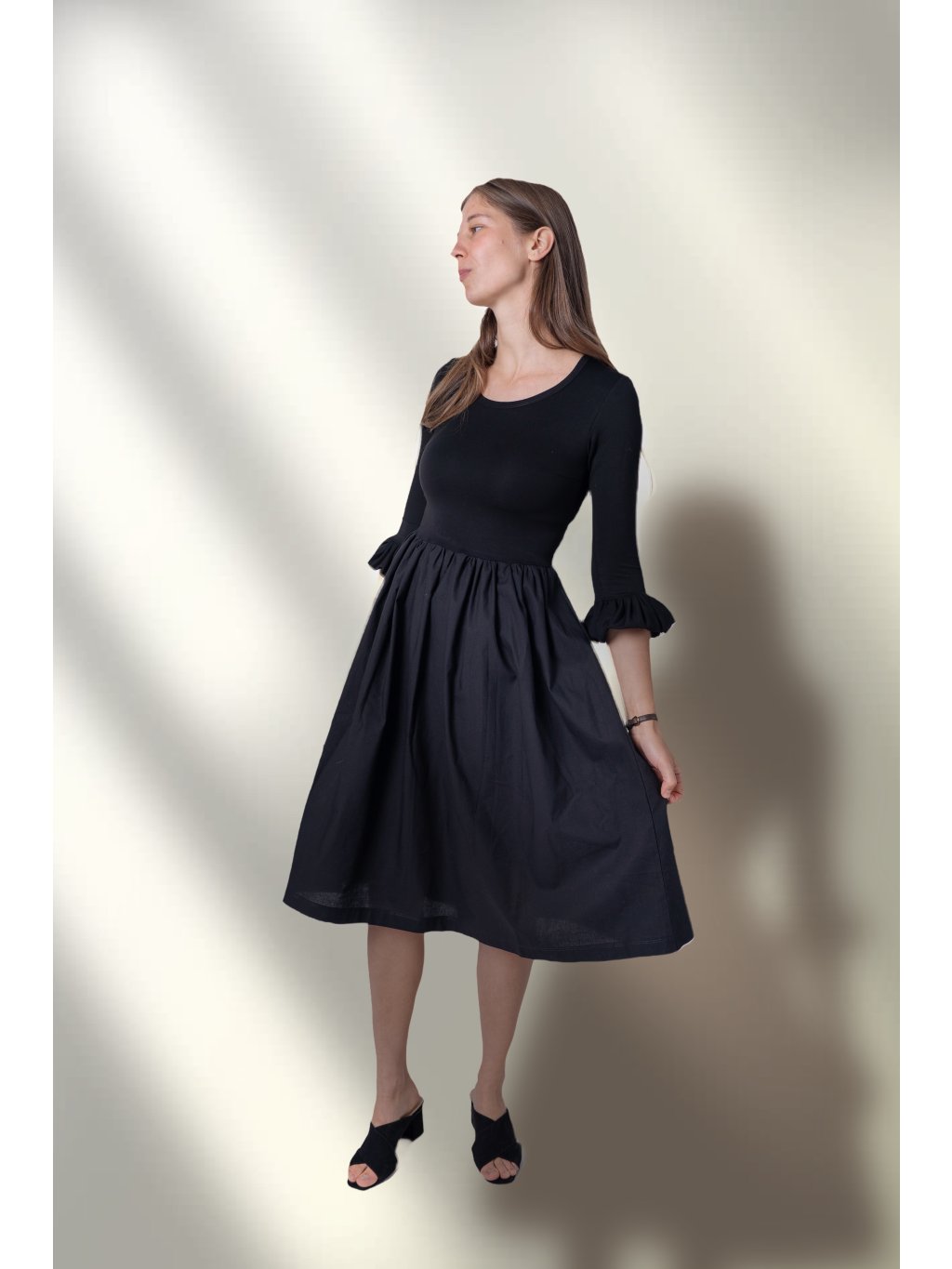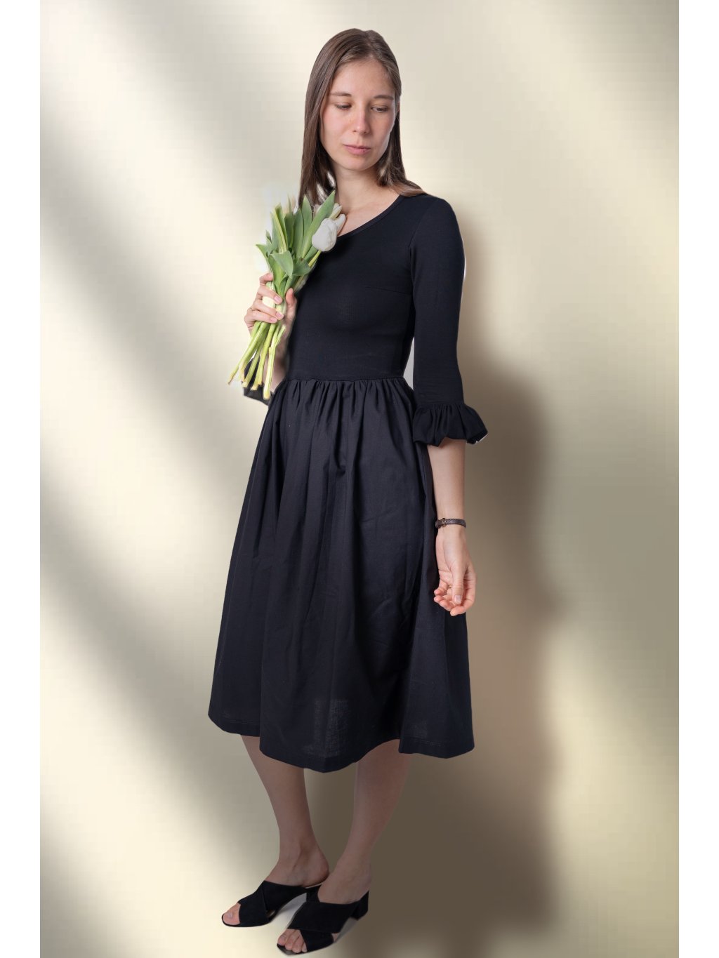 Elegantní midi šaty v černé barvě – ztělesnění jednoduchosti, krásy a ženské elegance.