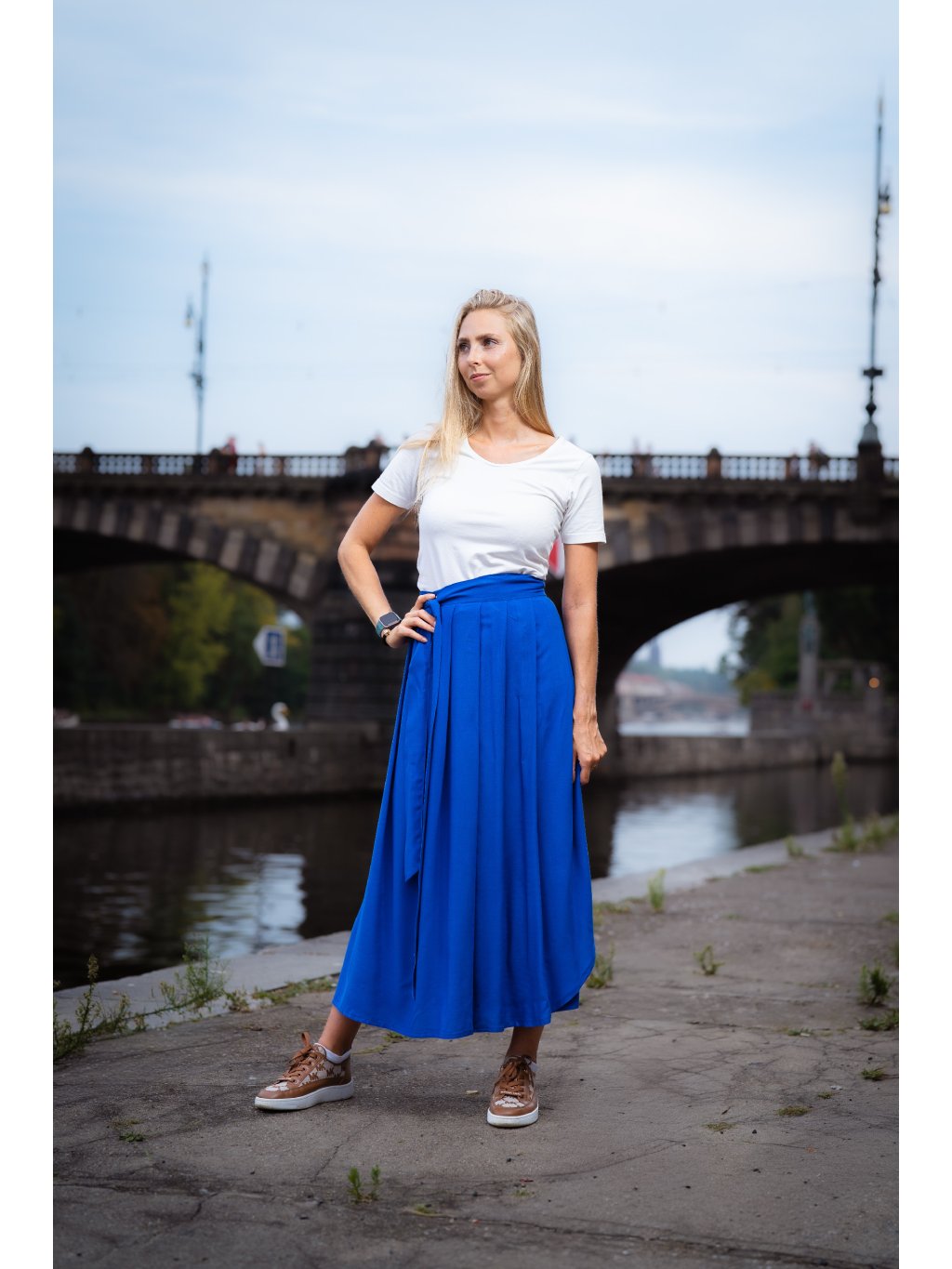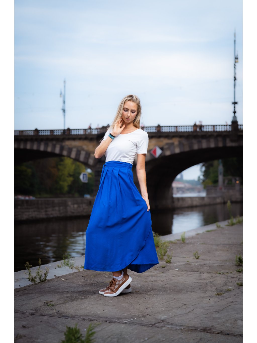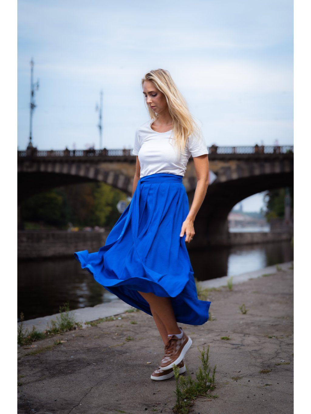 Zavinovací sukně v královské modři – lehká jako letní vánek, jemná jako dotek hedvábí.