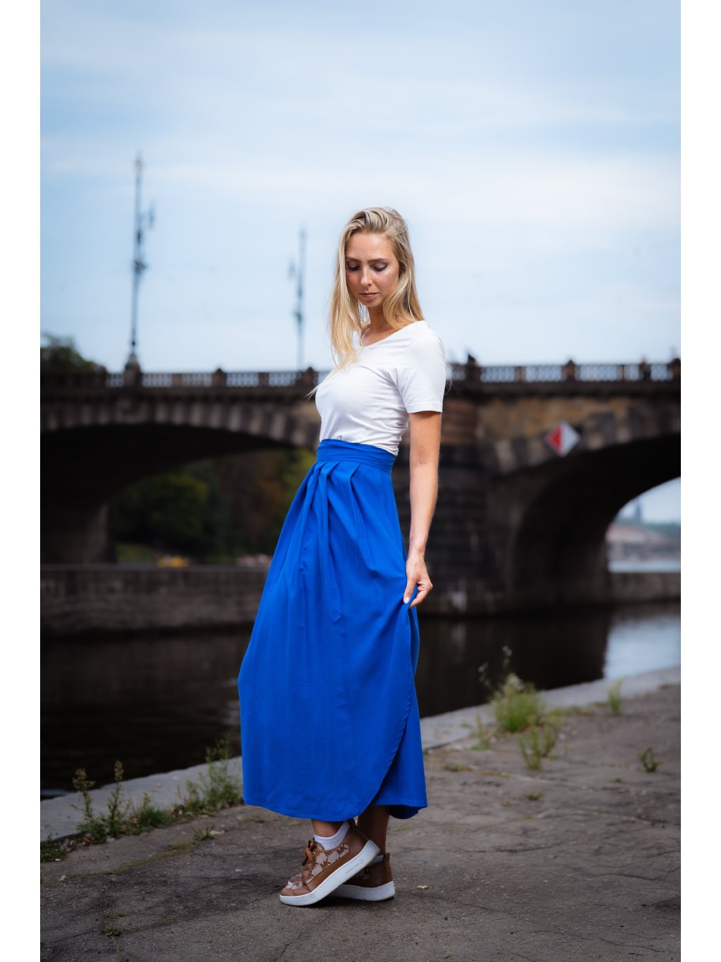 Dlouhá, zavinovací sukně ušitá z velmi jemné a hebké viskózy, barva královská modř.