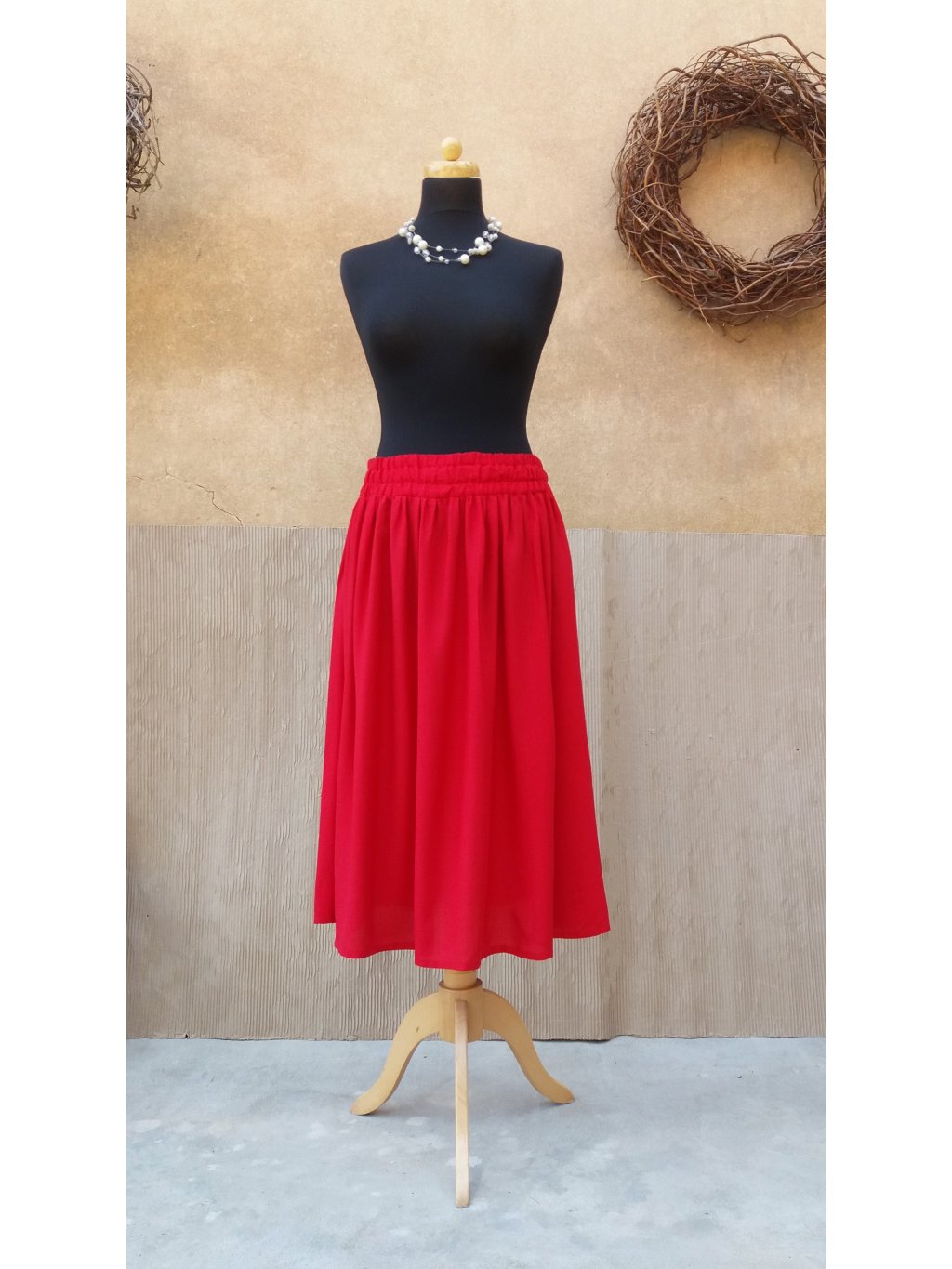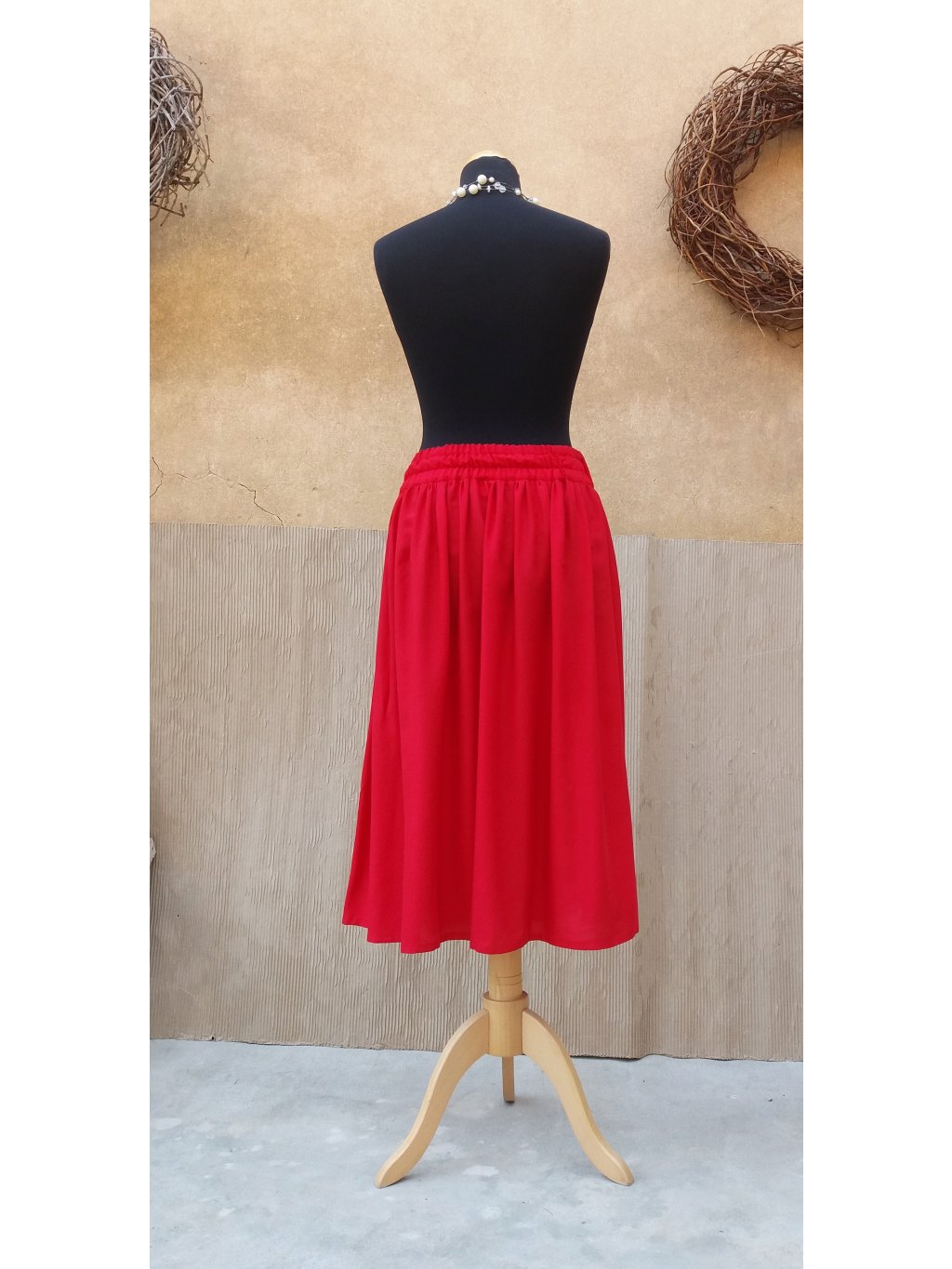 Jemná sukně ušitá z hebké, červené viskozy.
