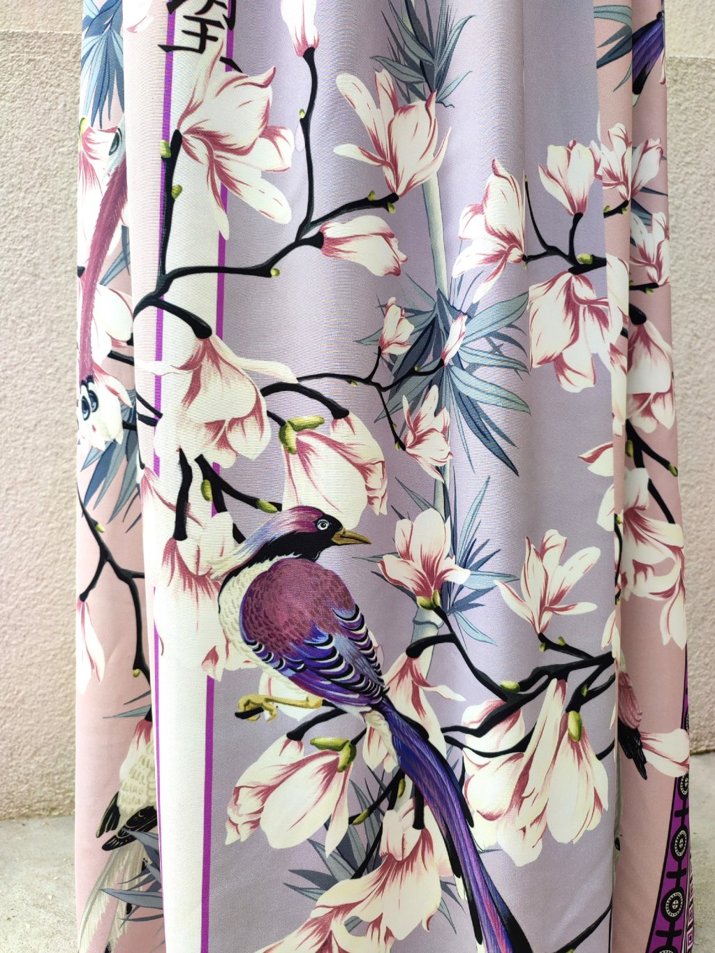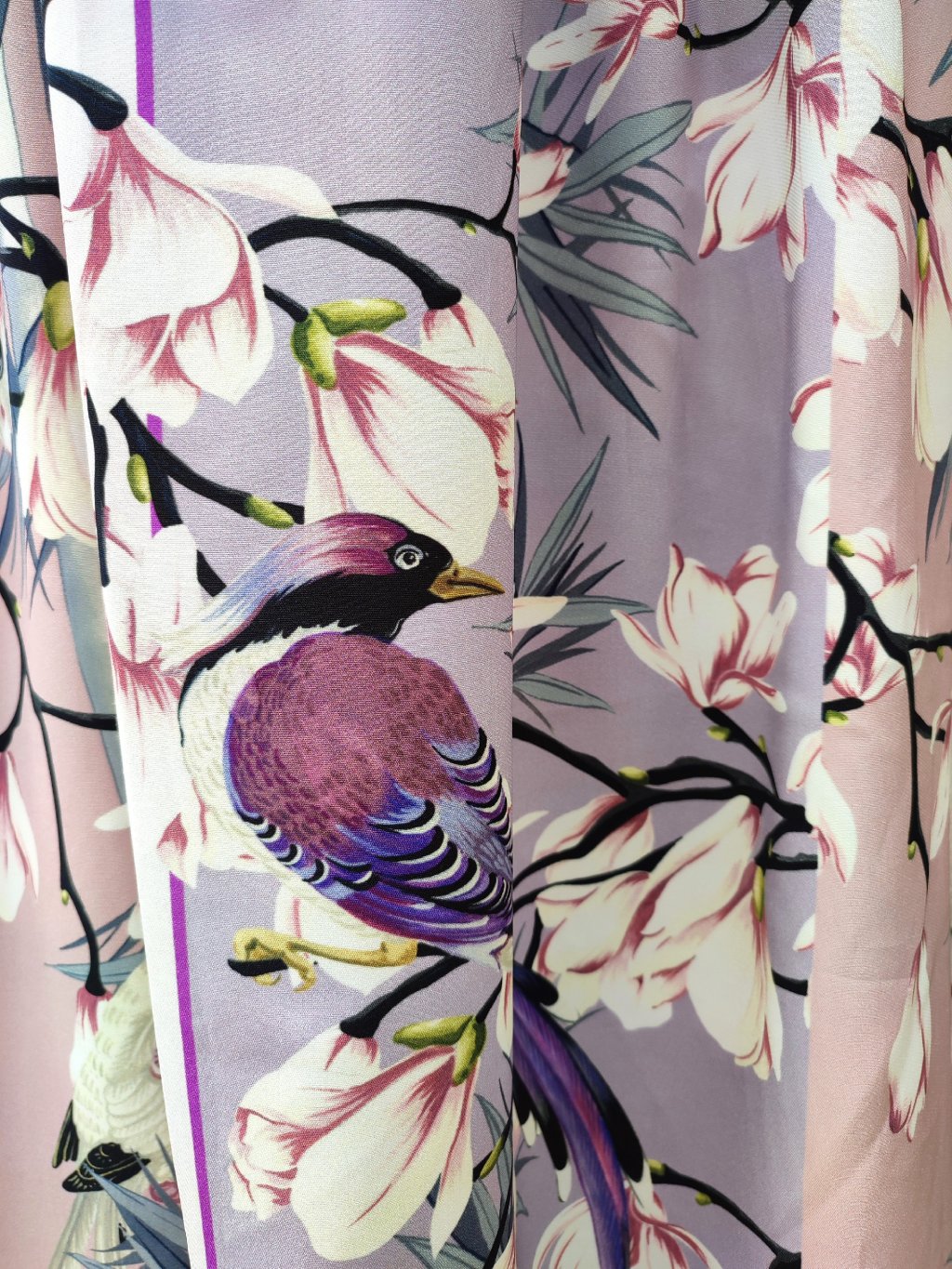 Zaujme svým jedinečným japonským potiskem s motivem ptáčků – jemným, ale výrazným detailem, který dodá outfitu osobitost.