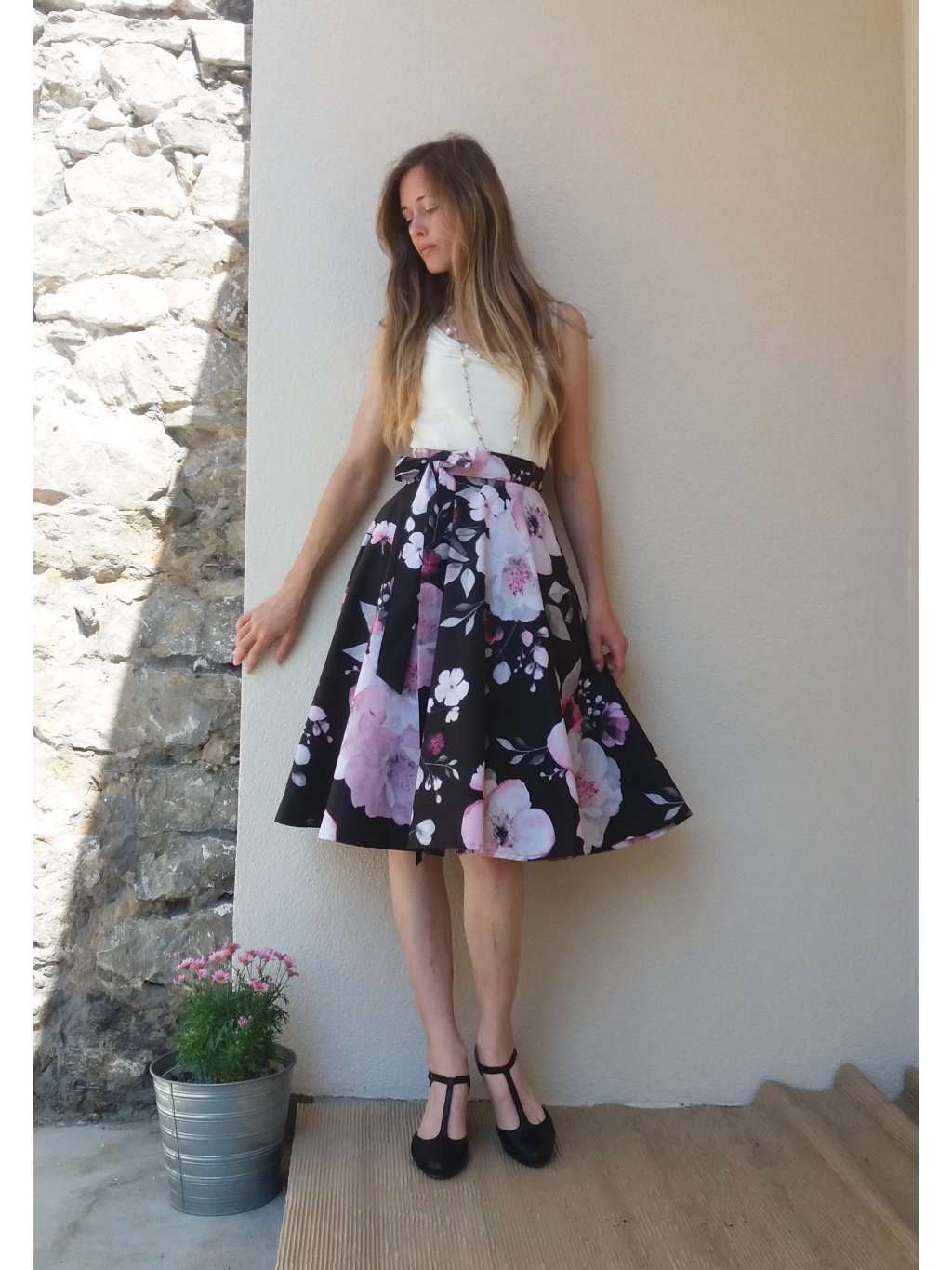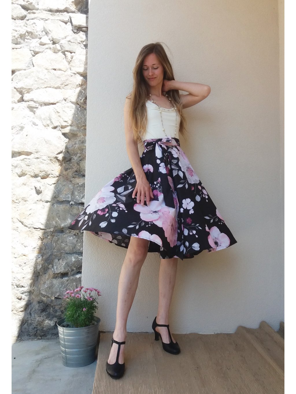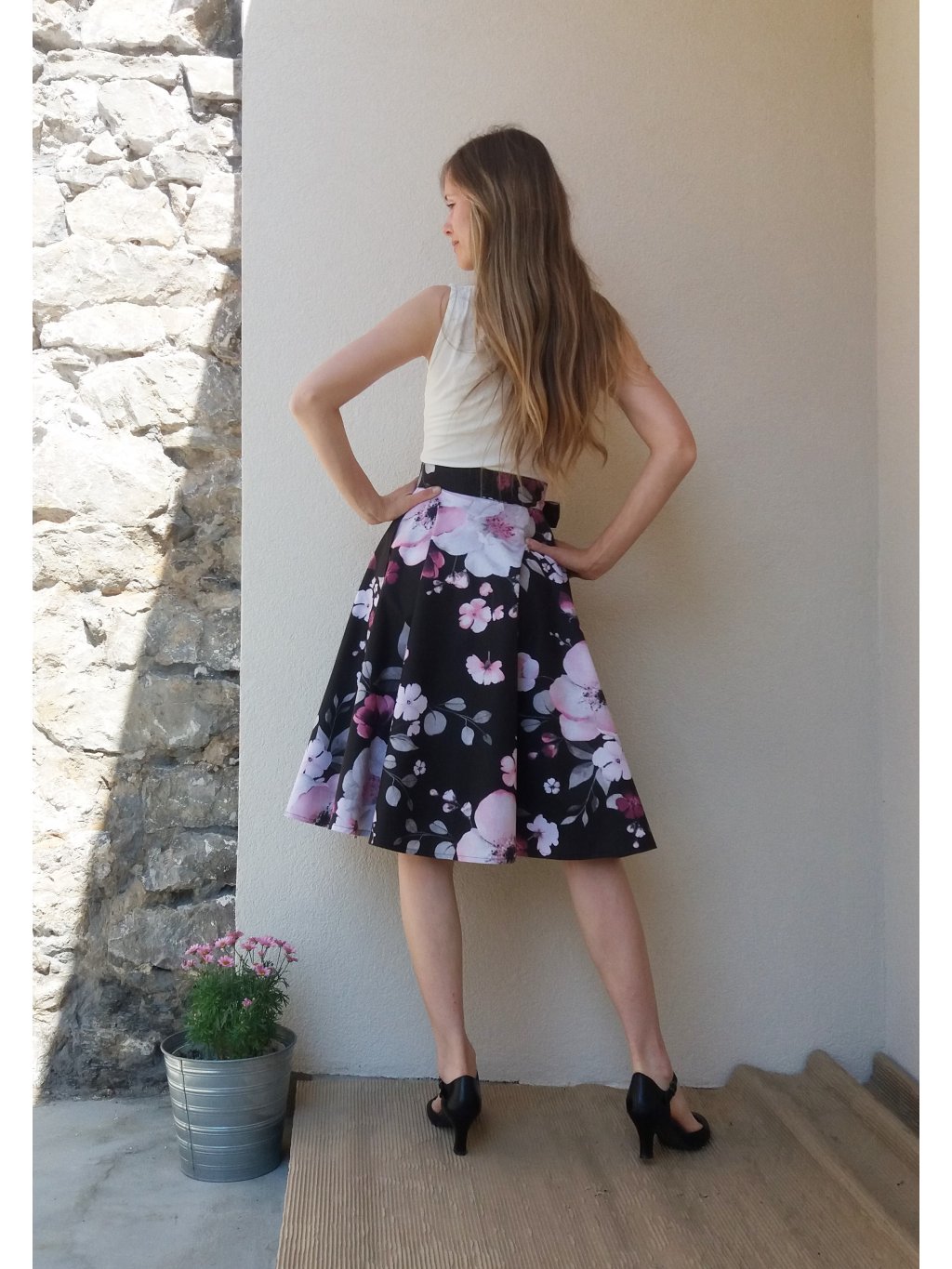 Zavinovací sukně kolového střihu ušitá z krásné, něžné látky. Květy v akvarelu, krásné provedení.
