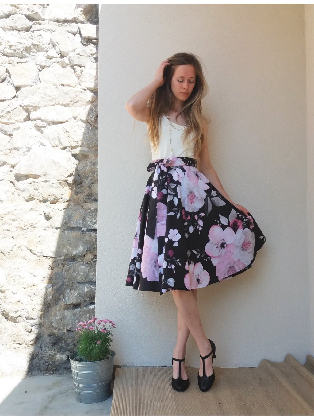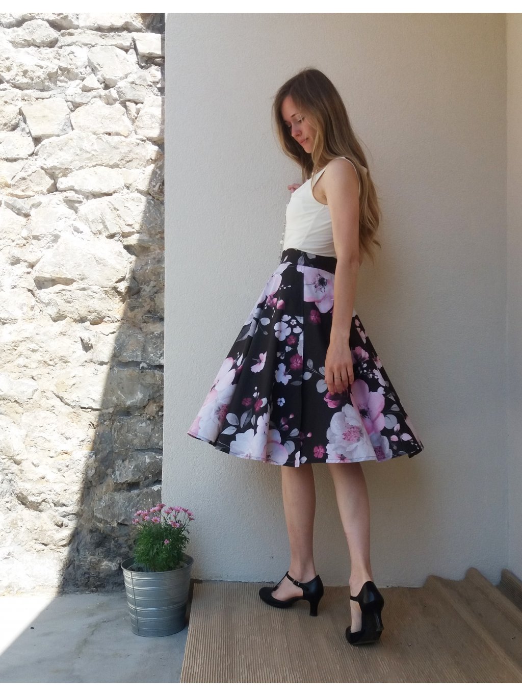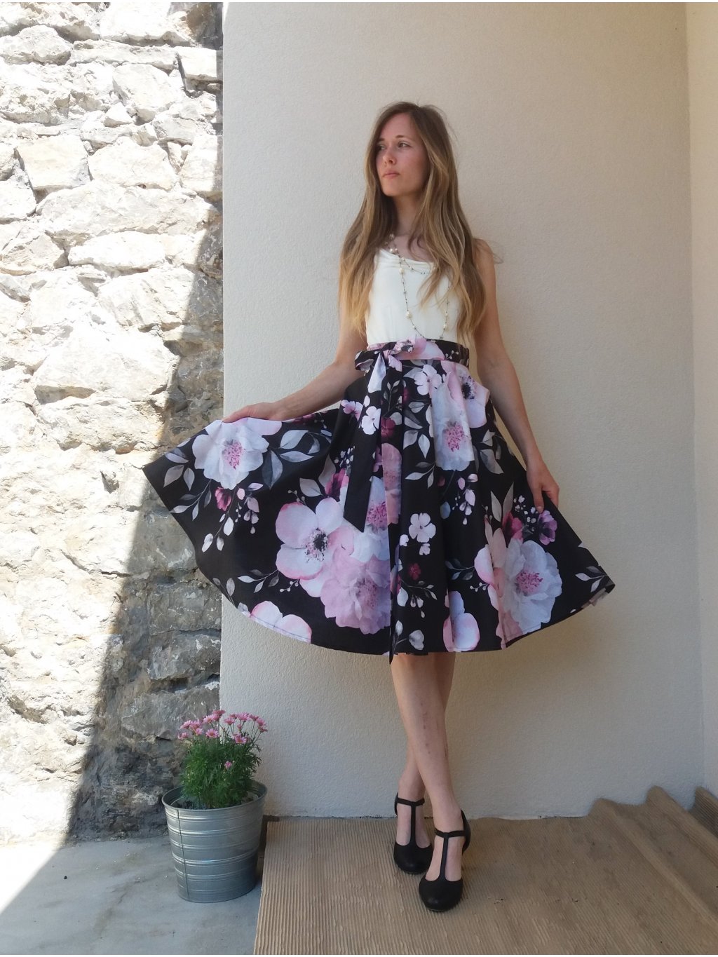 Zavinovací sukně kolového střihu ušitá z krásné, něžné látky. Květy v akvarelu, krásné provedení.