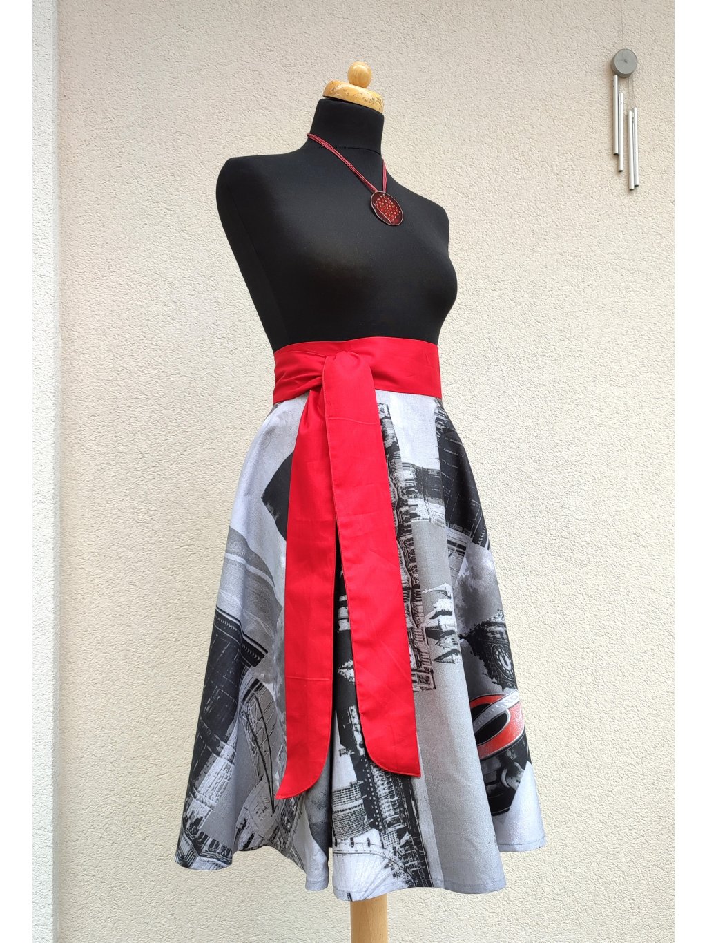 Zavinovací sukně kolového střihu.