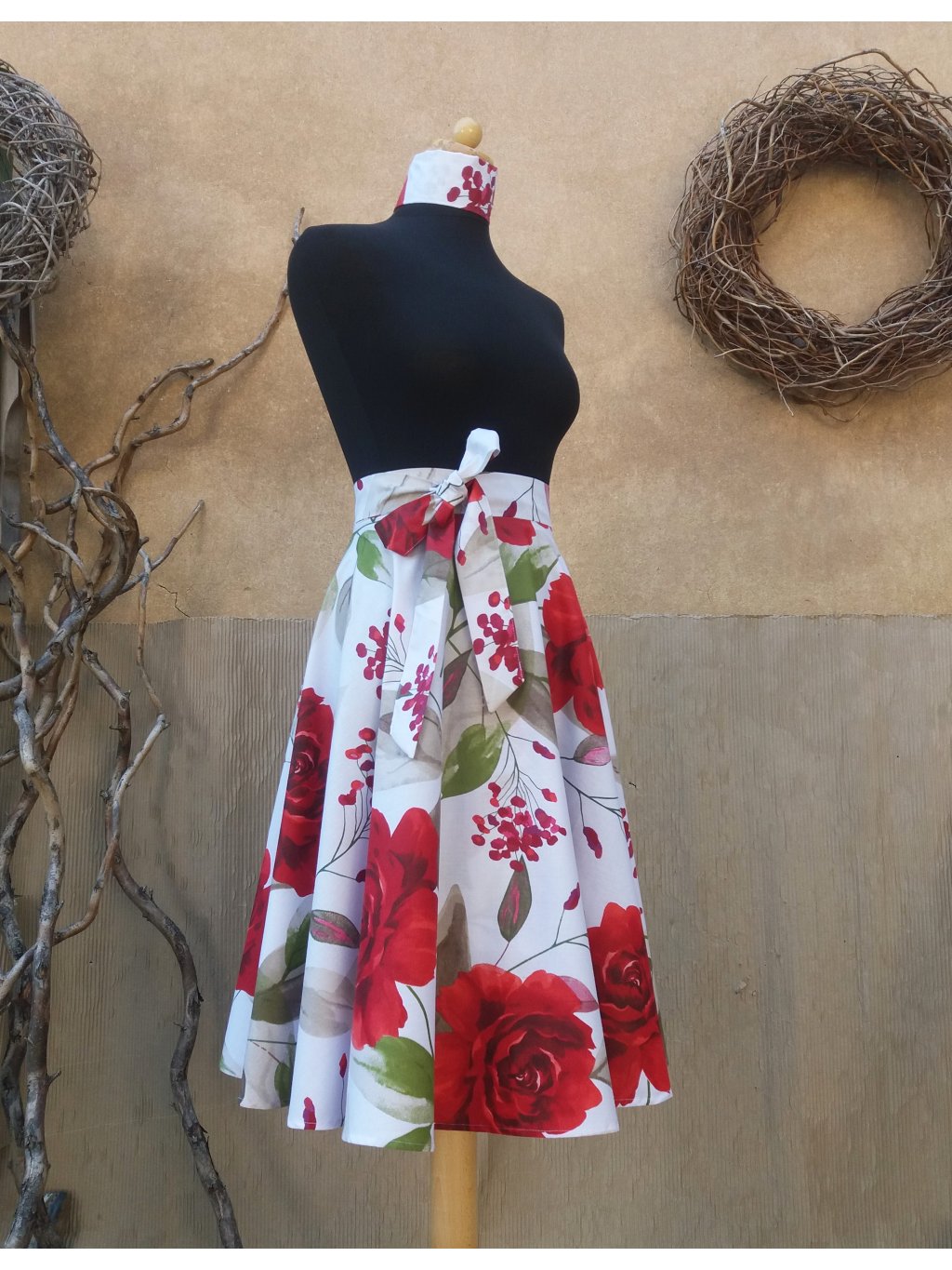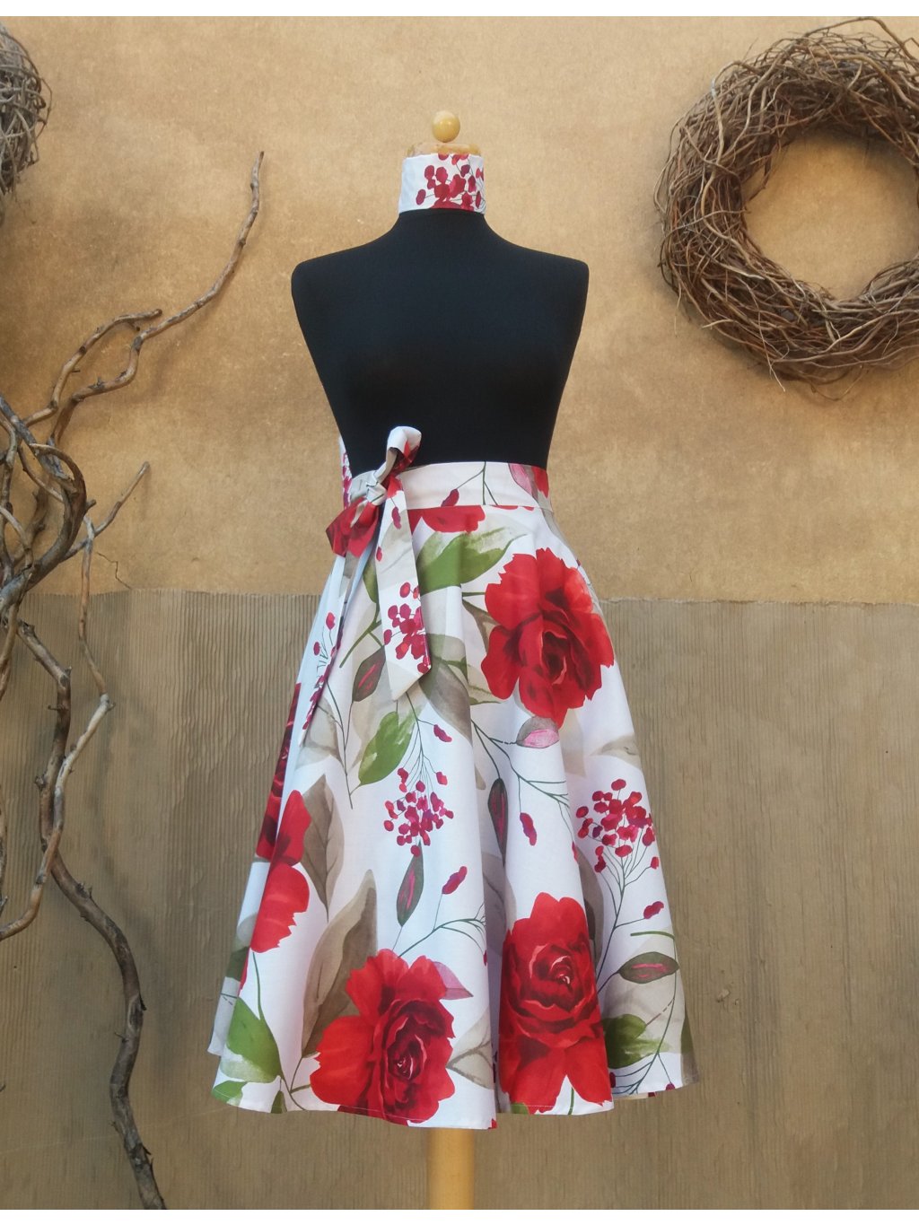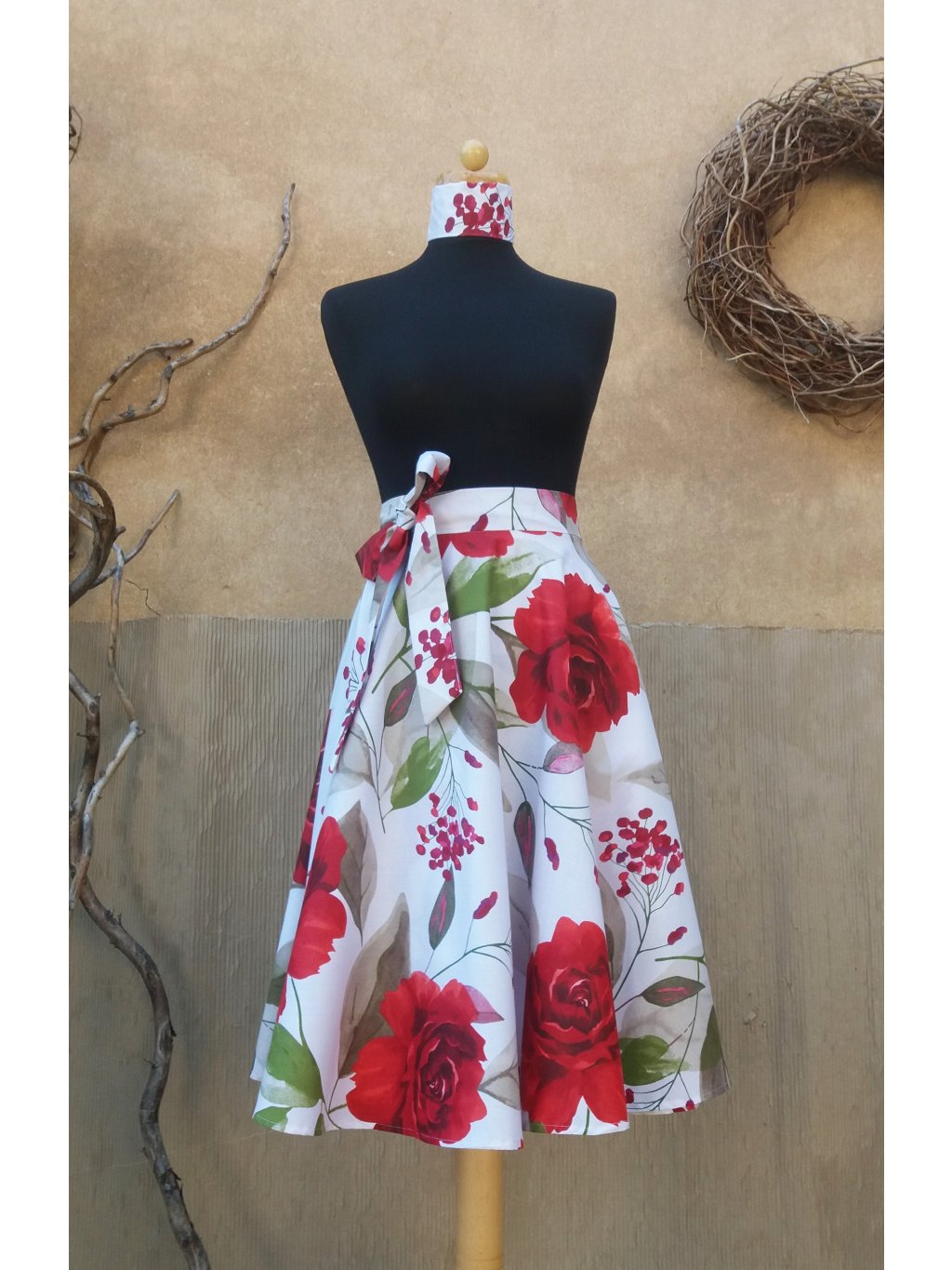 Kolová midi sukně - velké růže