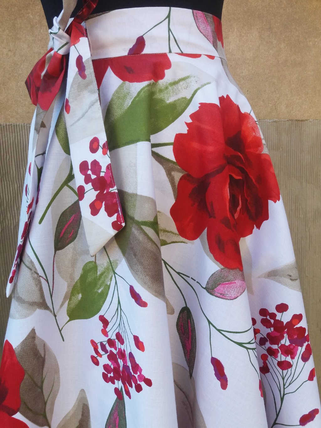 Veselá, zavinovací sukně kolového střihu.