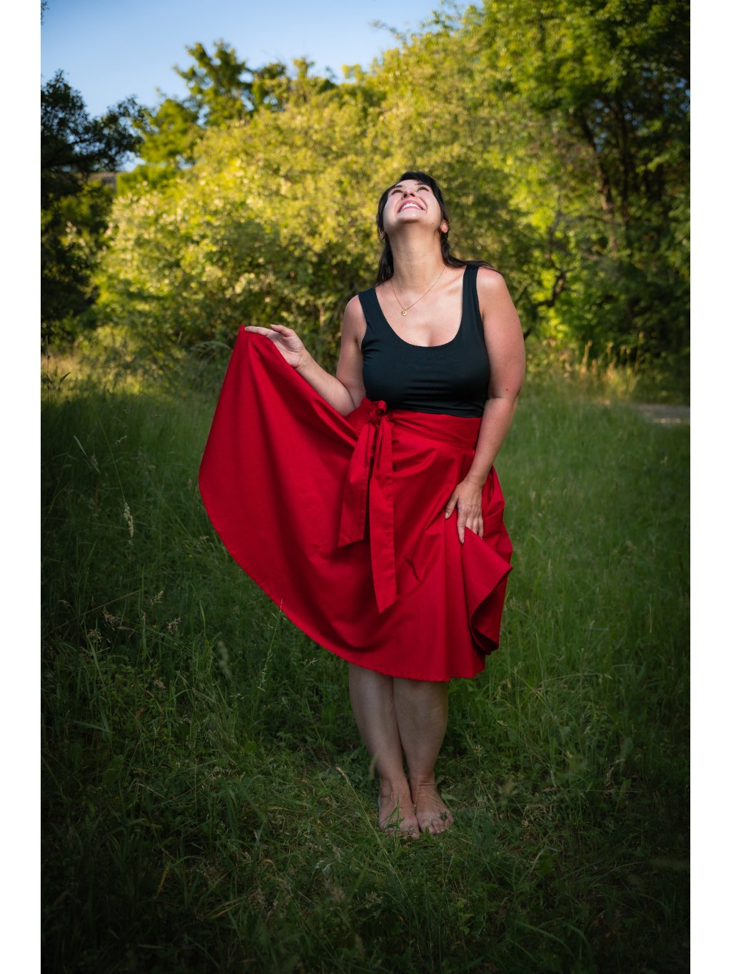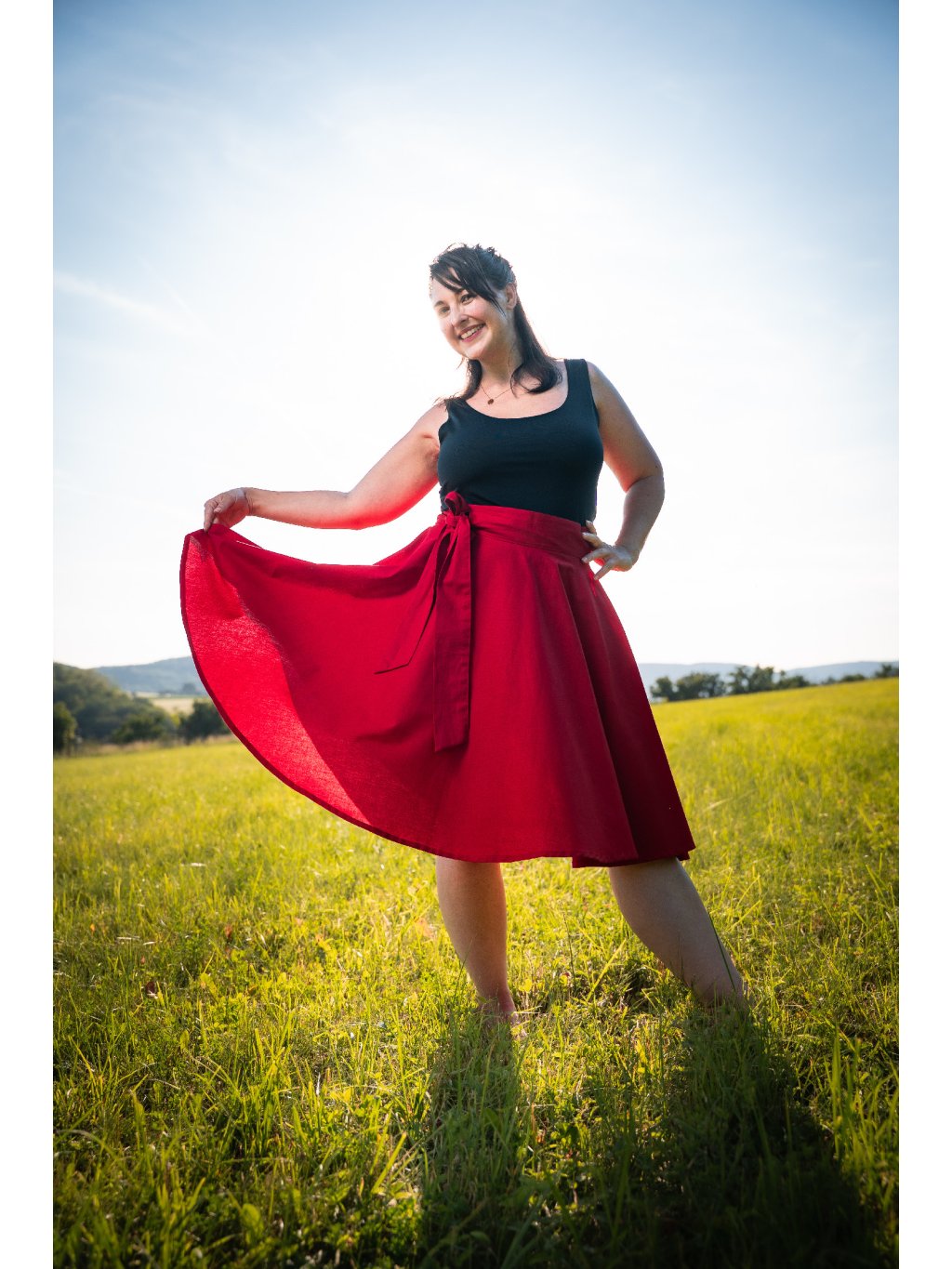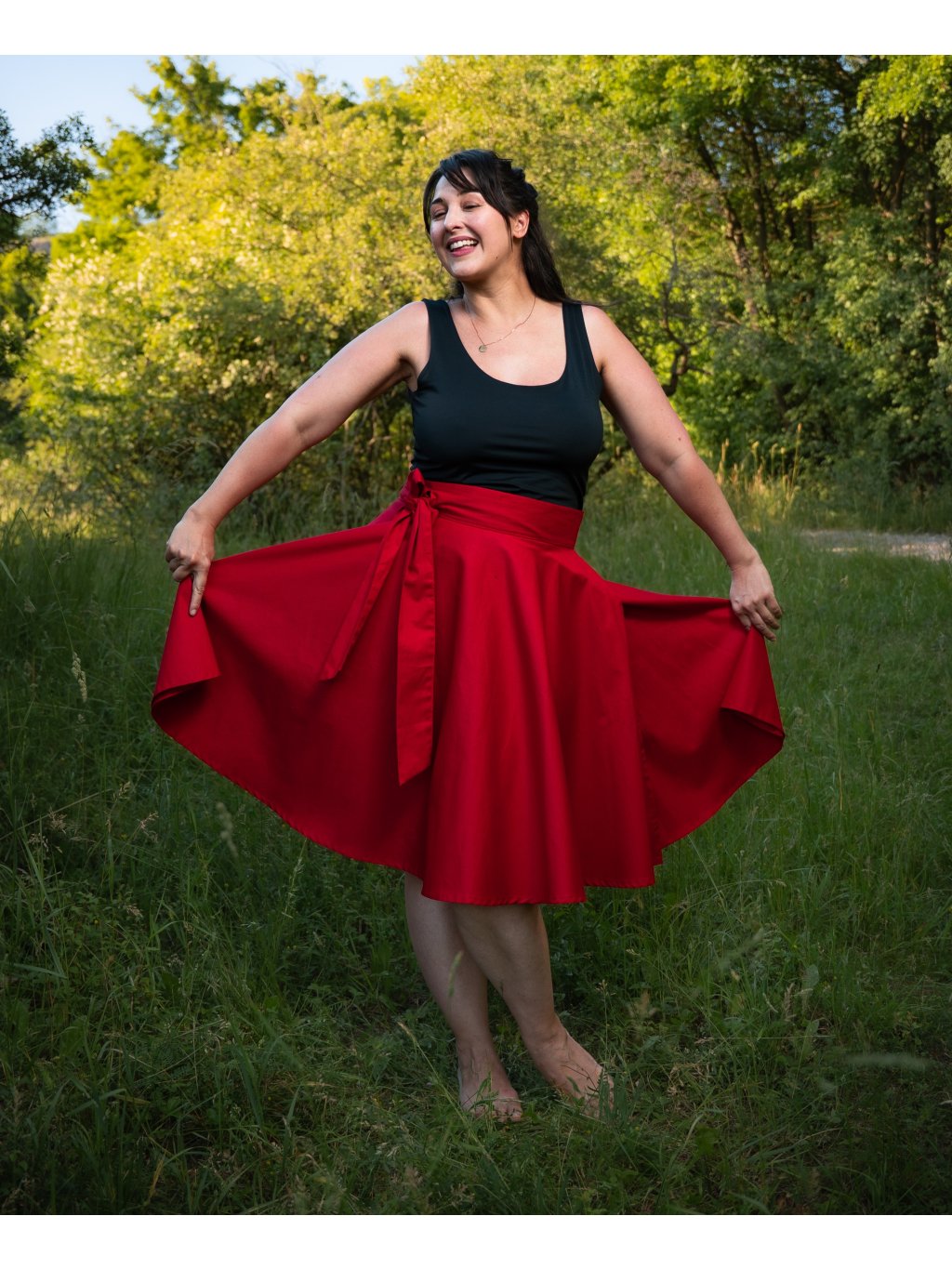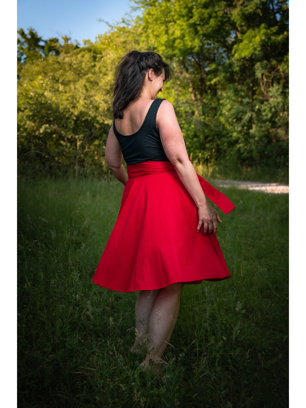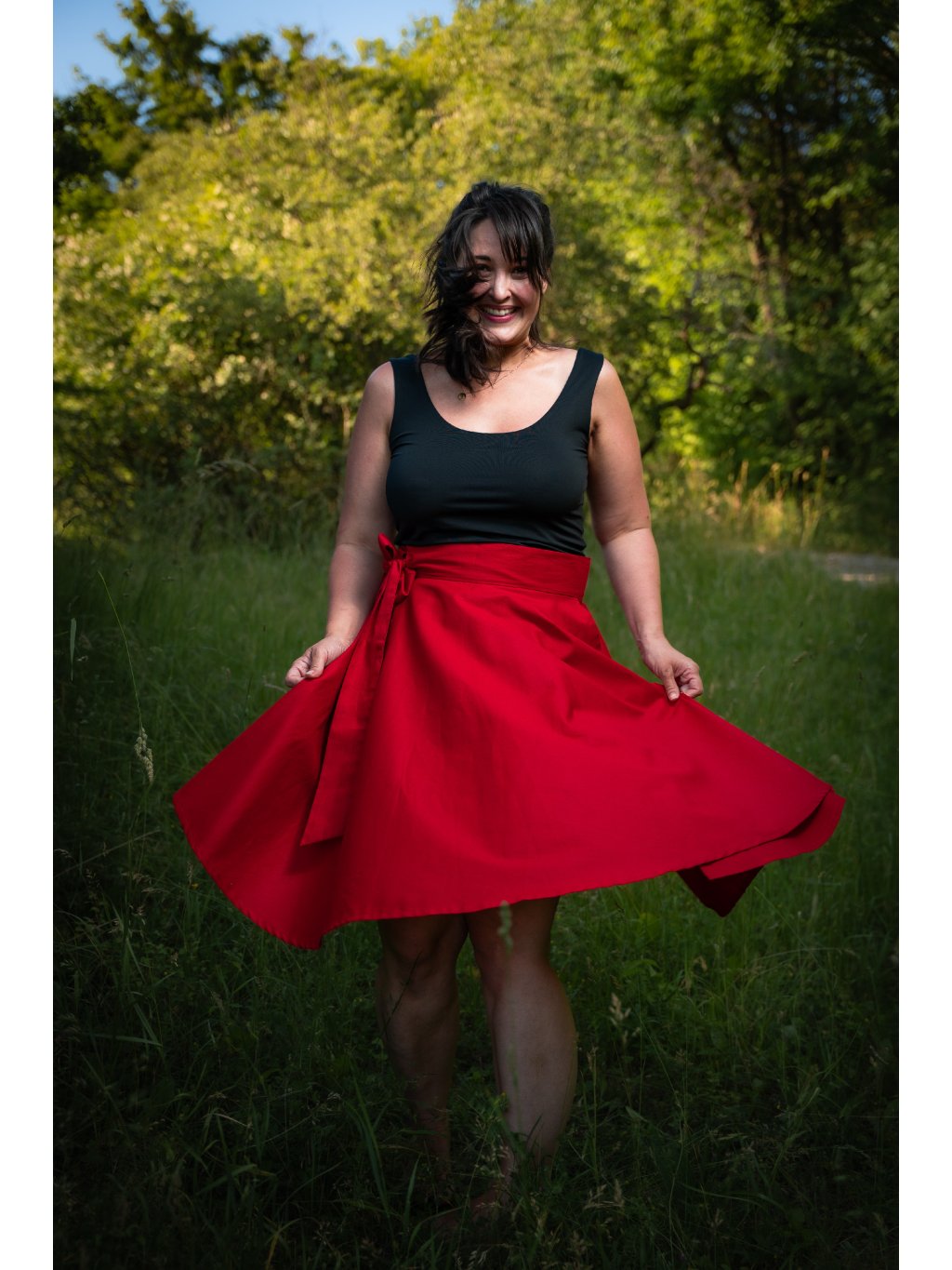 Zavinovací sukně kolového střihu.