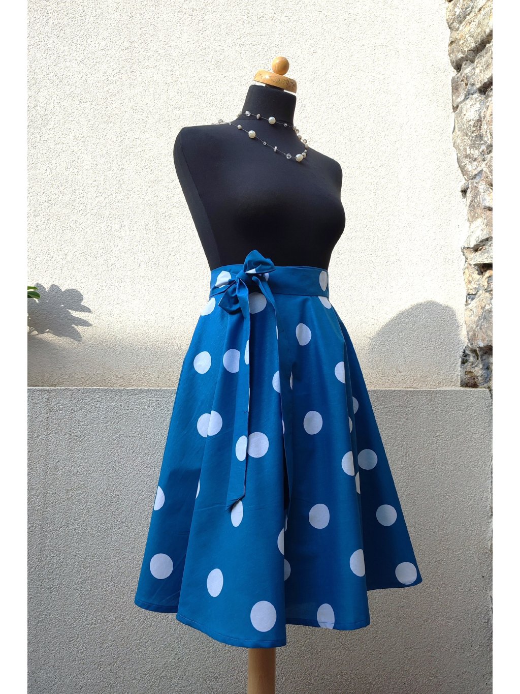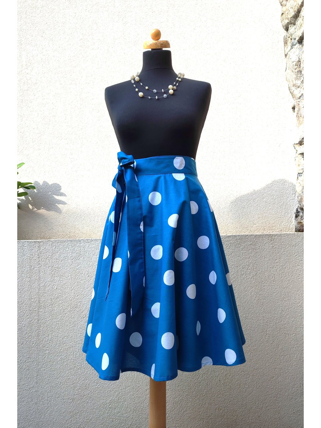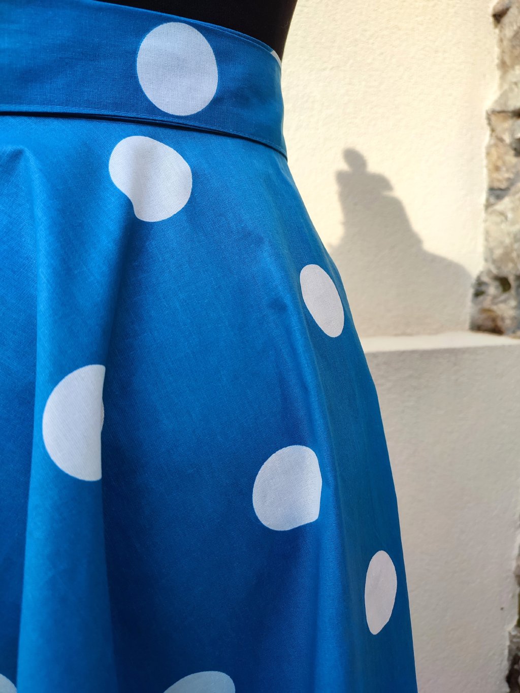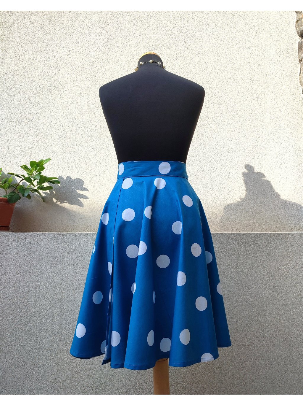 Kolová sukně - modrá s bílým puntíkem