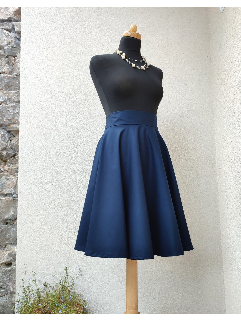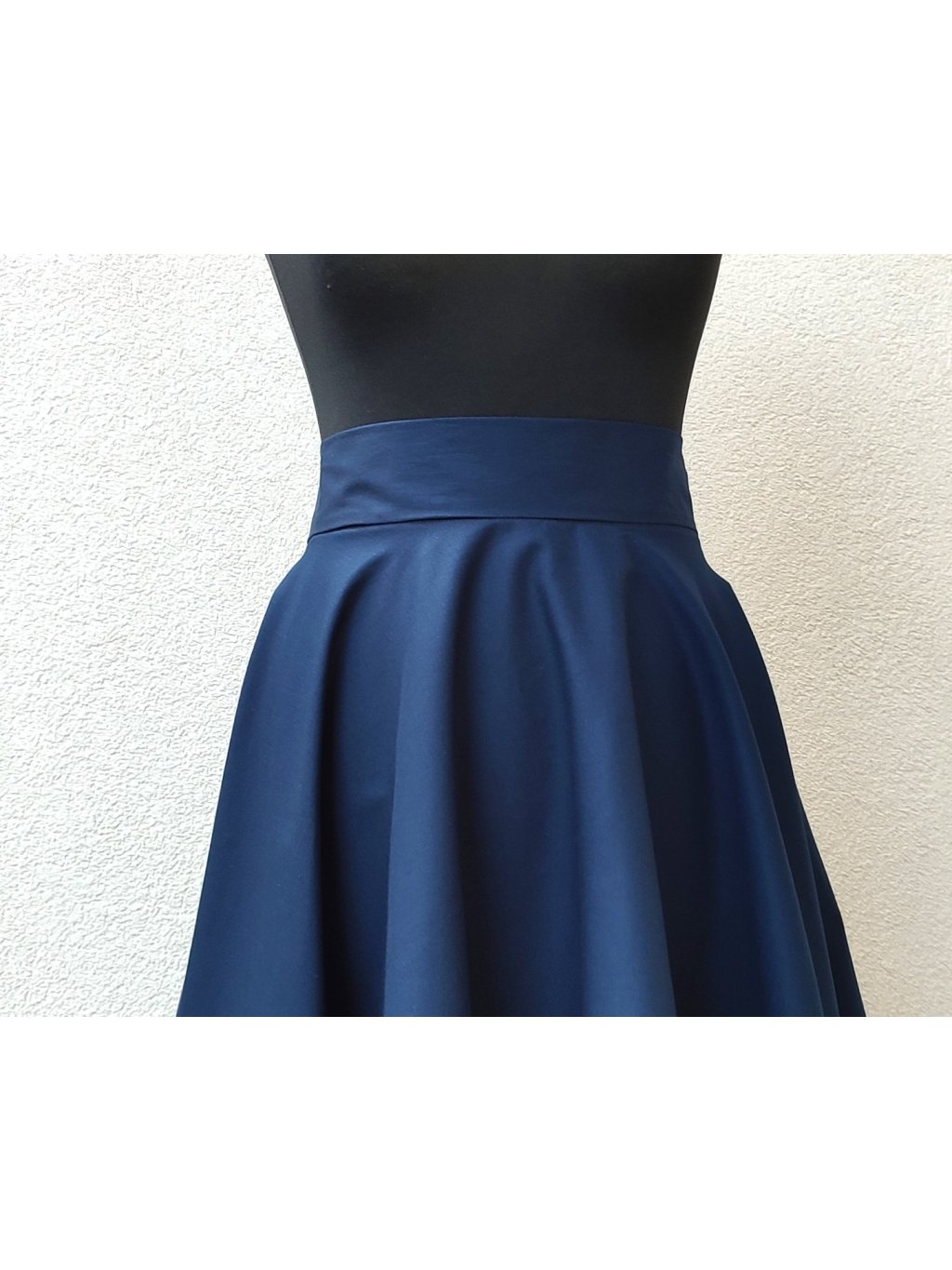 Kolová sukně ušitá z velmi kvalitní bavlny, s malým podílem elastanu v odstínu navy.