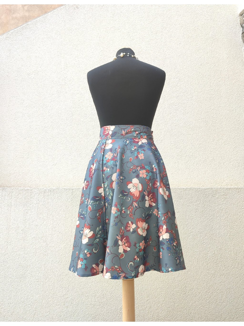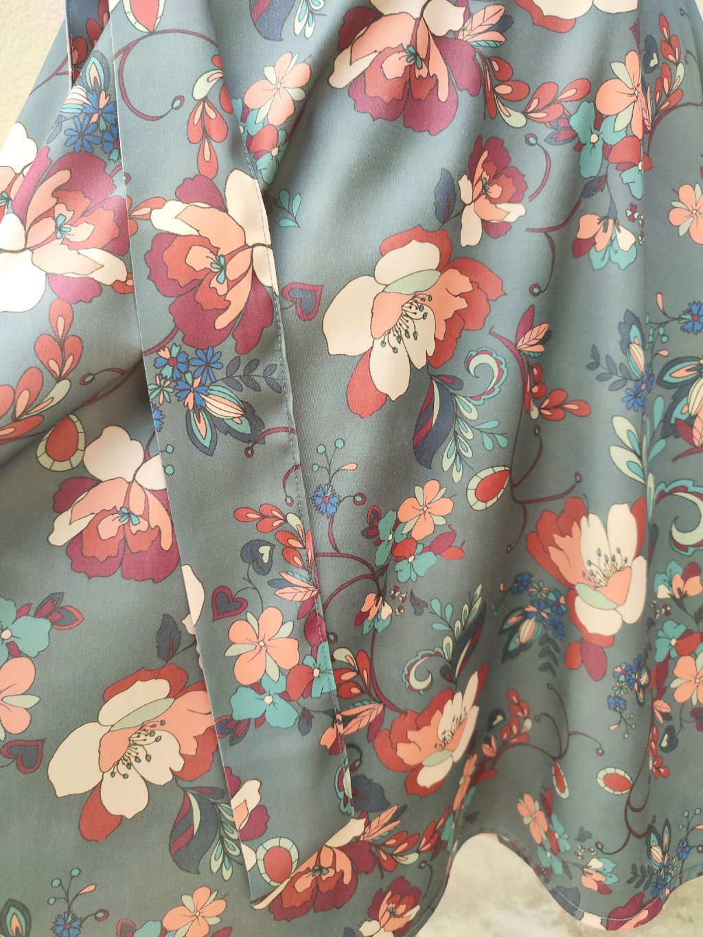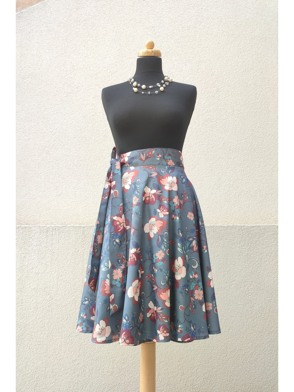 Zavinovací sukně ušitá z kvalitního, nemačkavého materiálu, 95% polyester, 5% elastan, moc pěkný tisk květů.