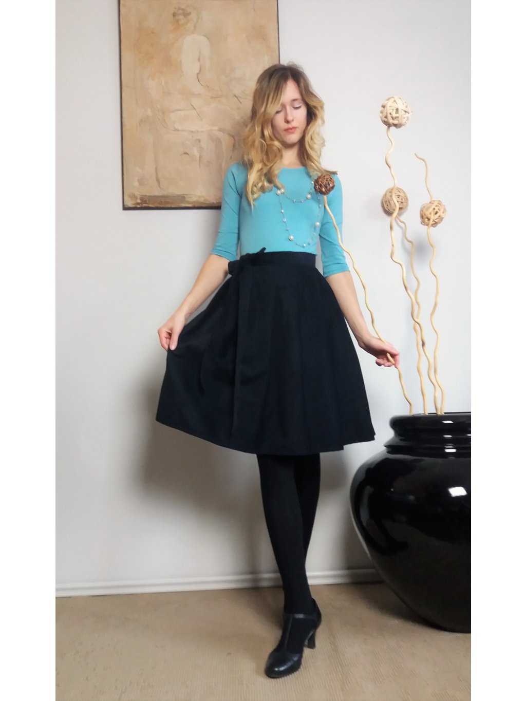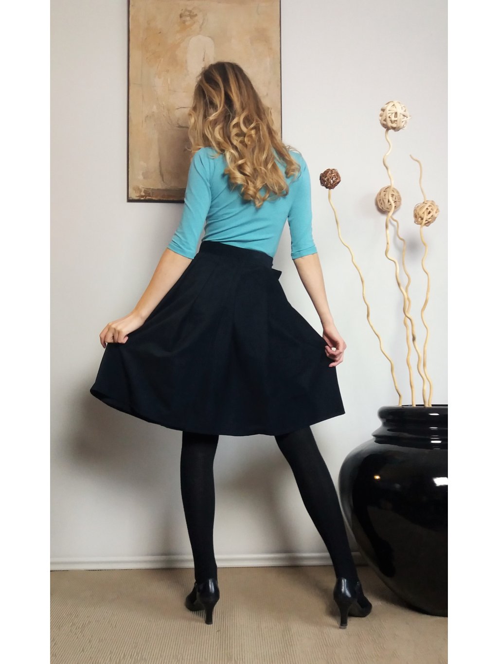 Zavinovací střih lichotí postavě, přizpůsobí se pasu a dodává sukní přirozený ženský tvar.