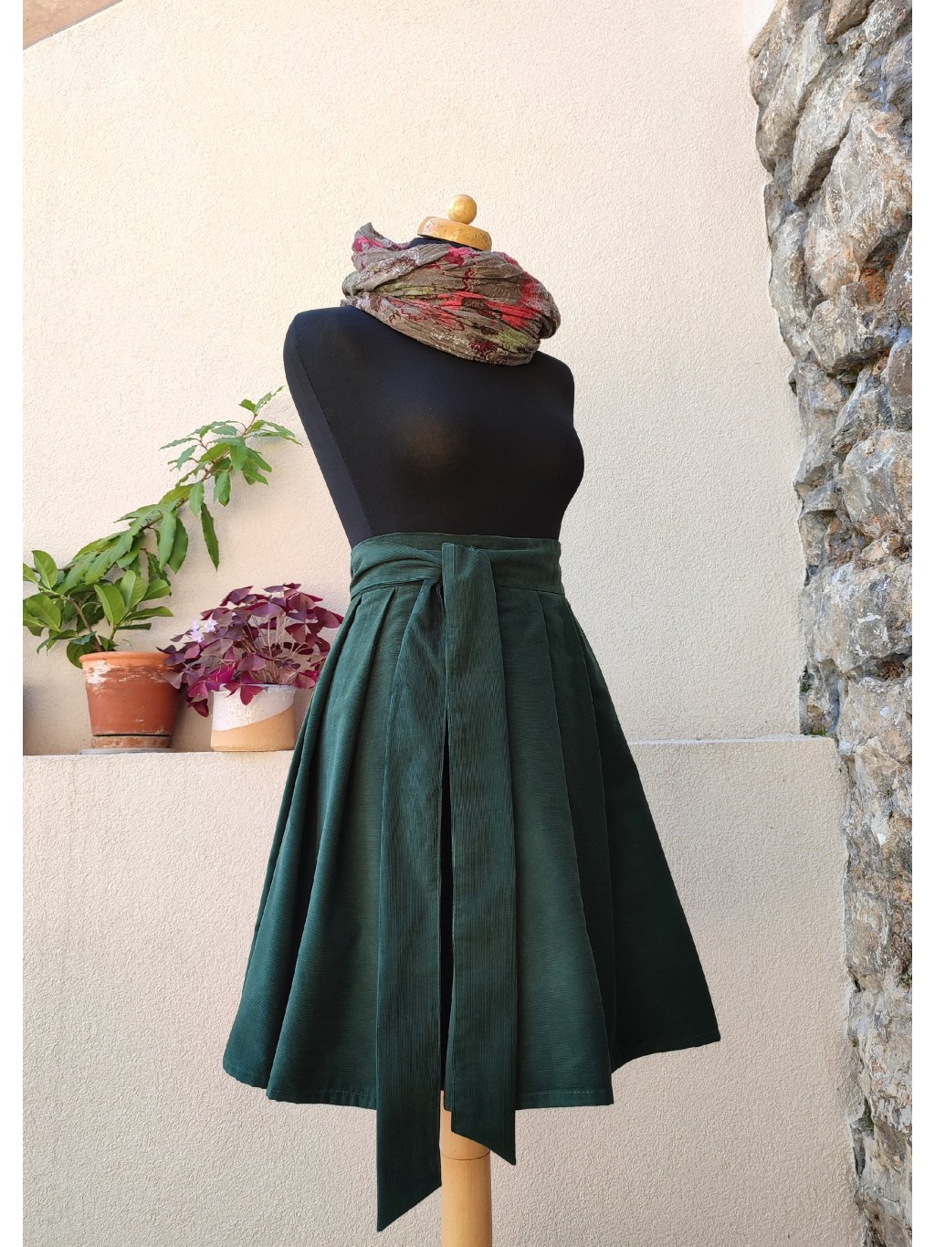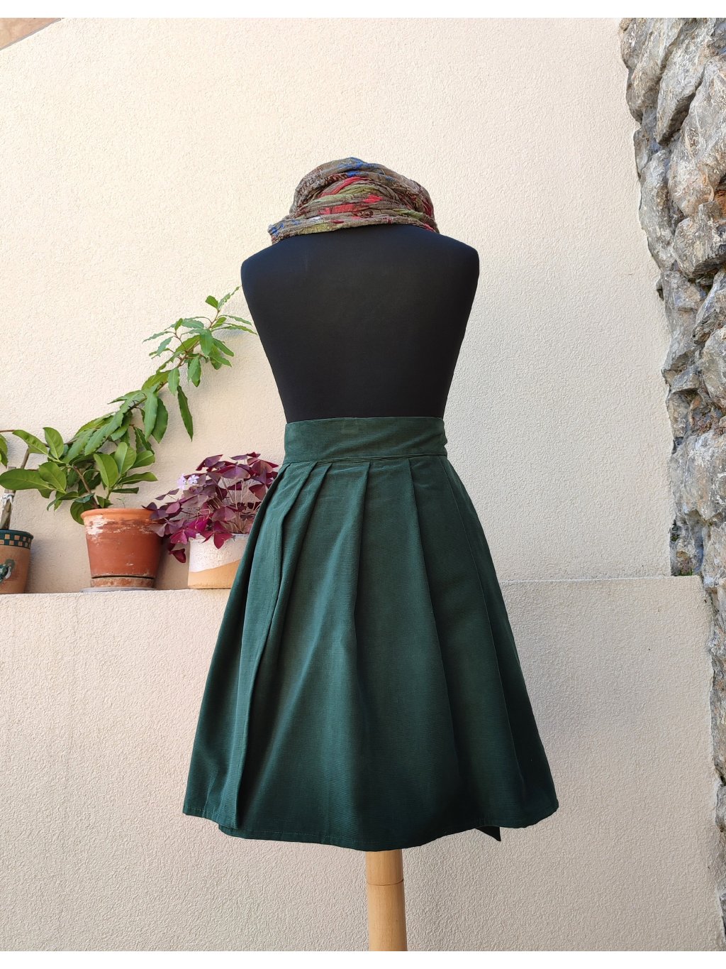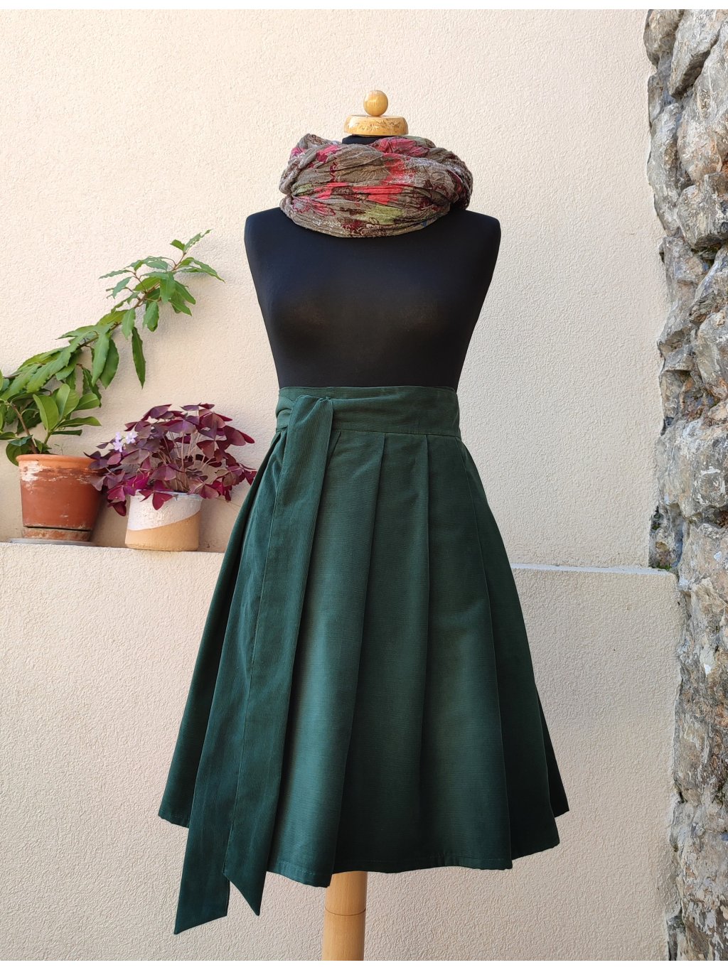 Elegantní zavinovací sukně ušitá ze slabšího manšestru v krásném smaragdovém odstínu.