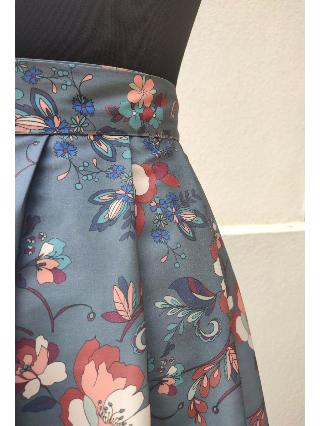Zavinovací sukně ušitá z kvalitního, nemačkavého materiálu, 95% polyester, 5% elastan, moc pěkný tisk květů.