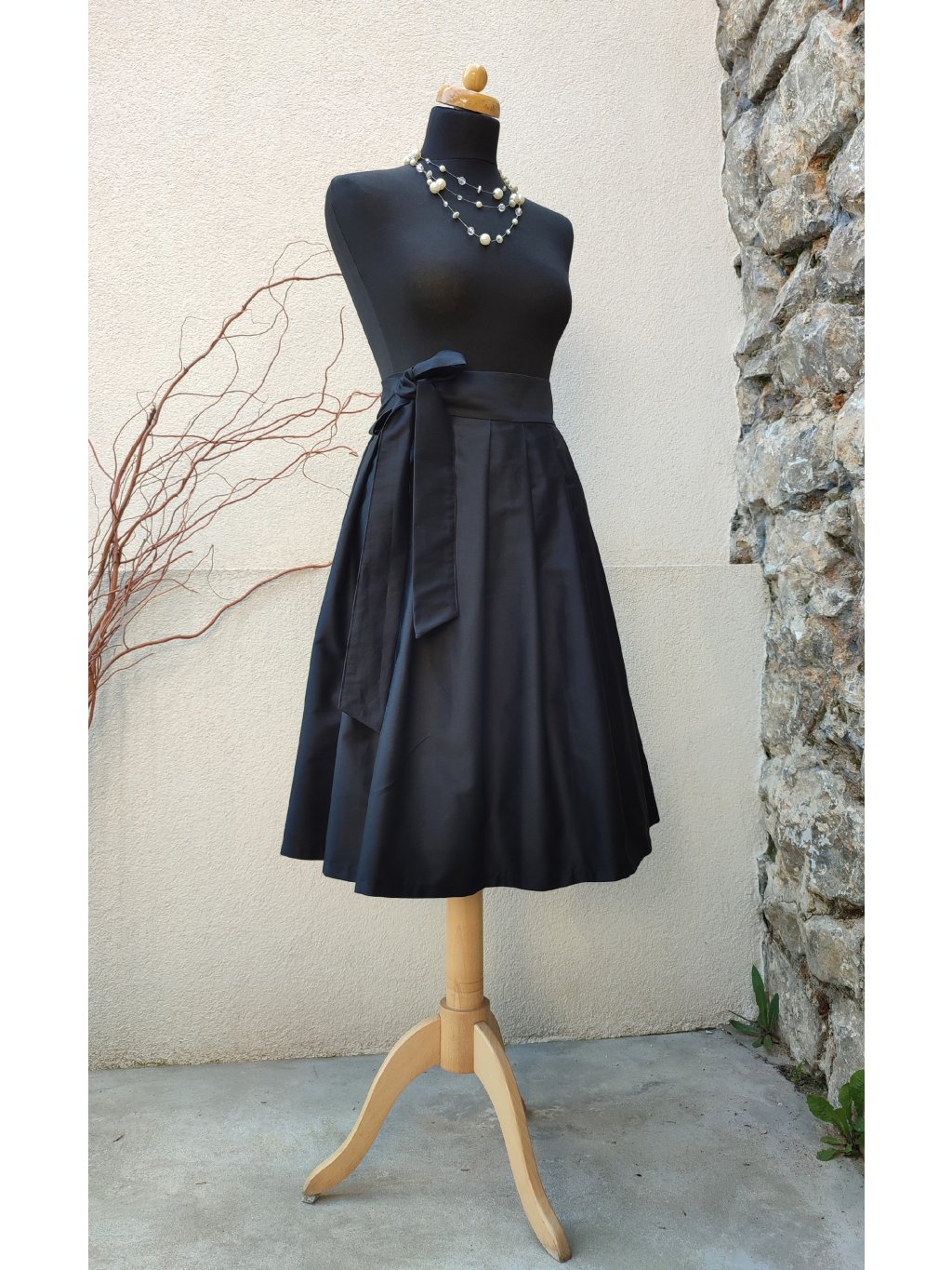 Zavinovací sukně ušitá z hebkého, 100% bavlněného saténu, barva sytá černá.