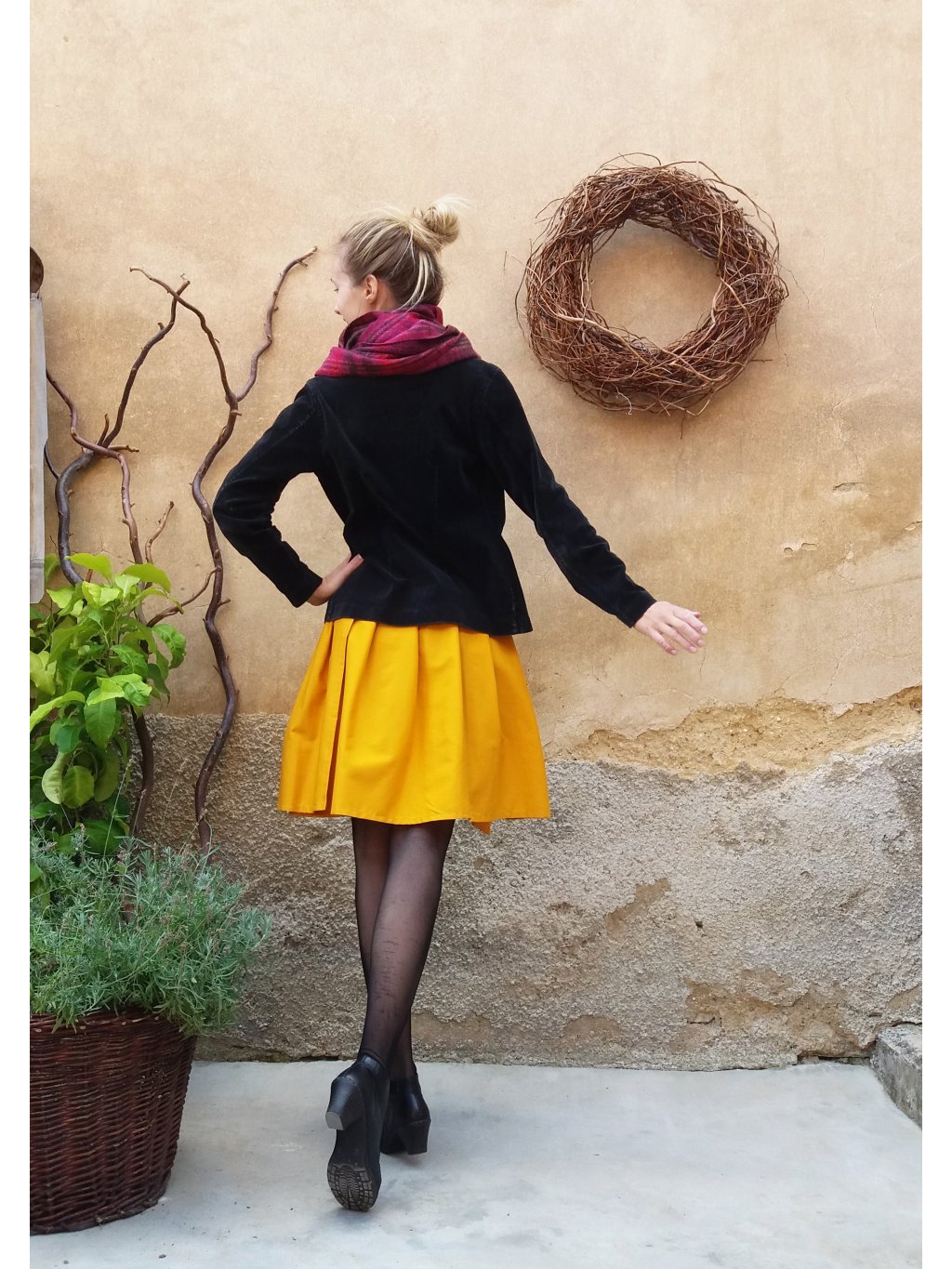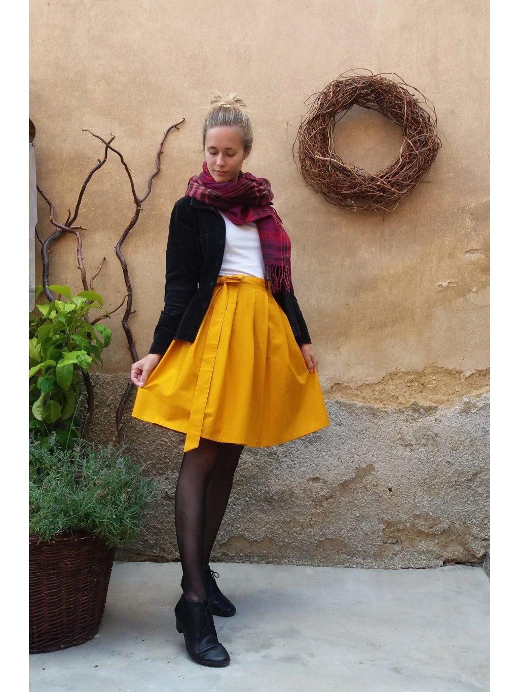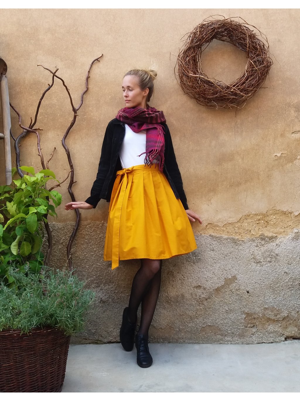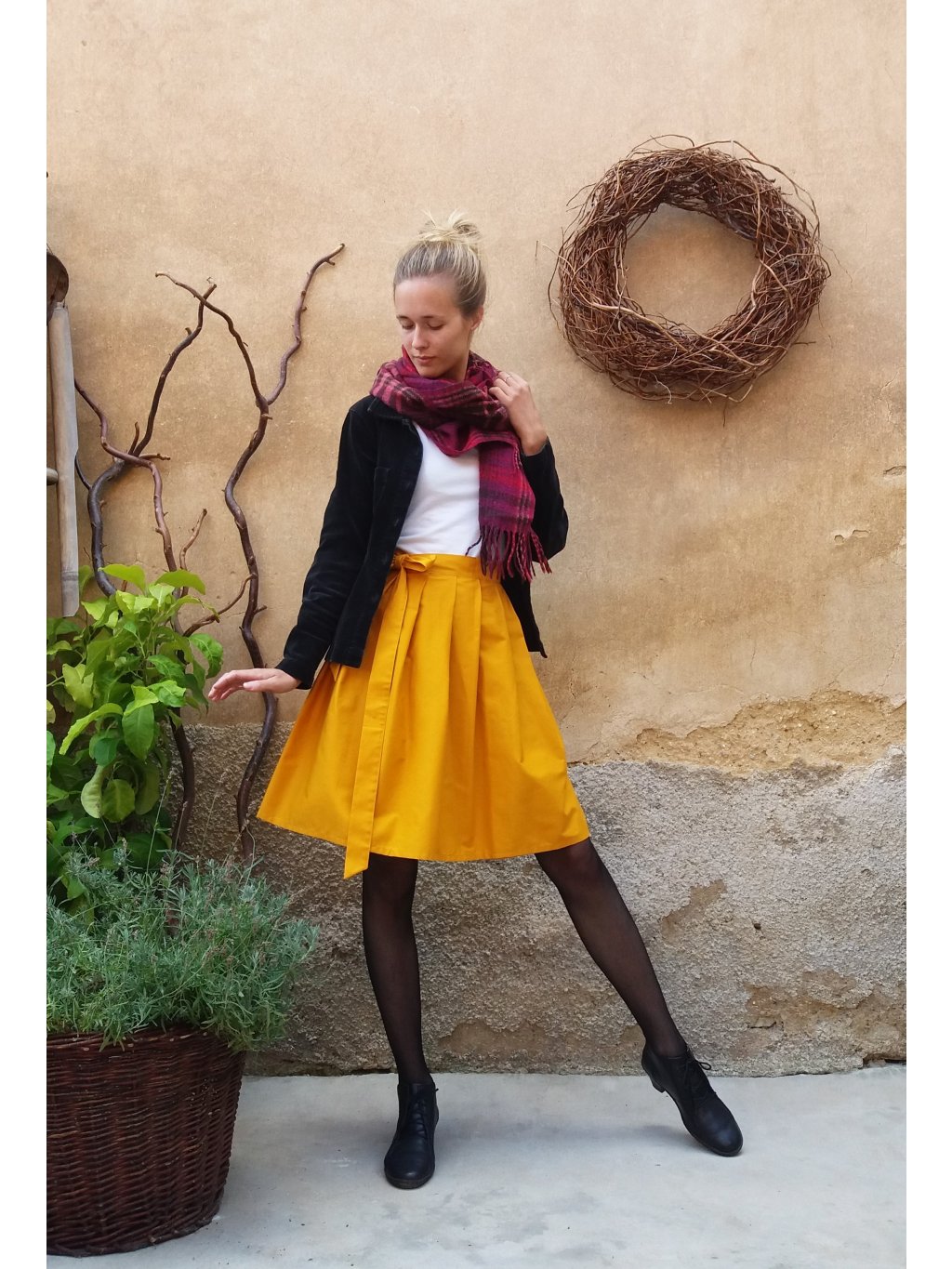 Zavinovací sukénka ušitá z příjemné a kvalitní bavlny v odstínu hořčicové.