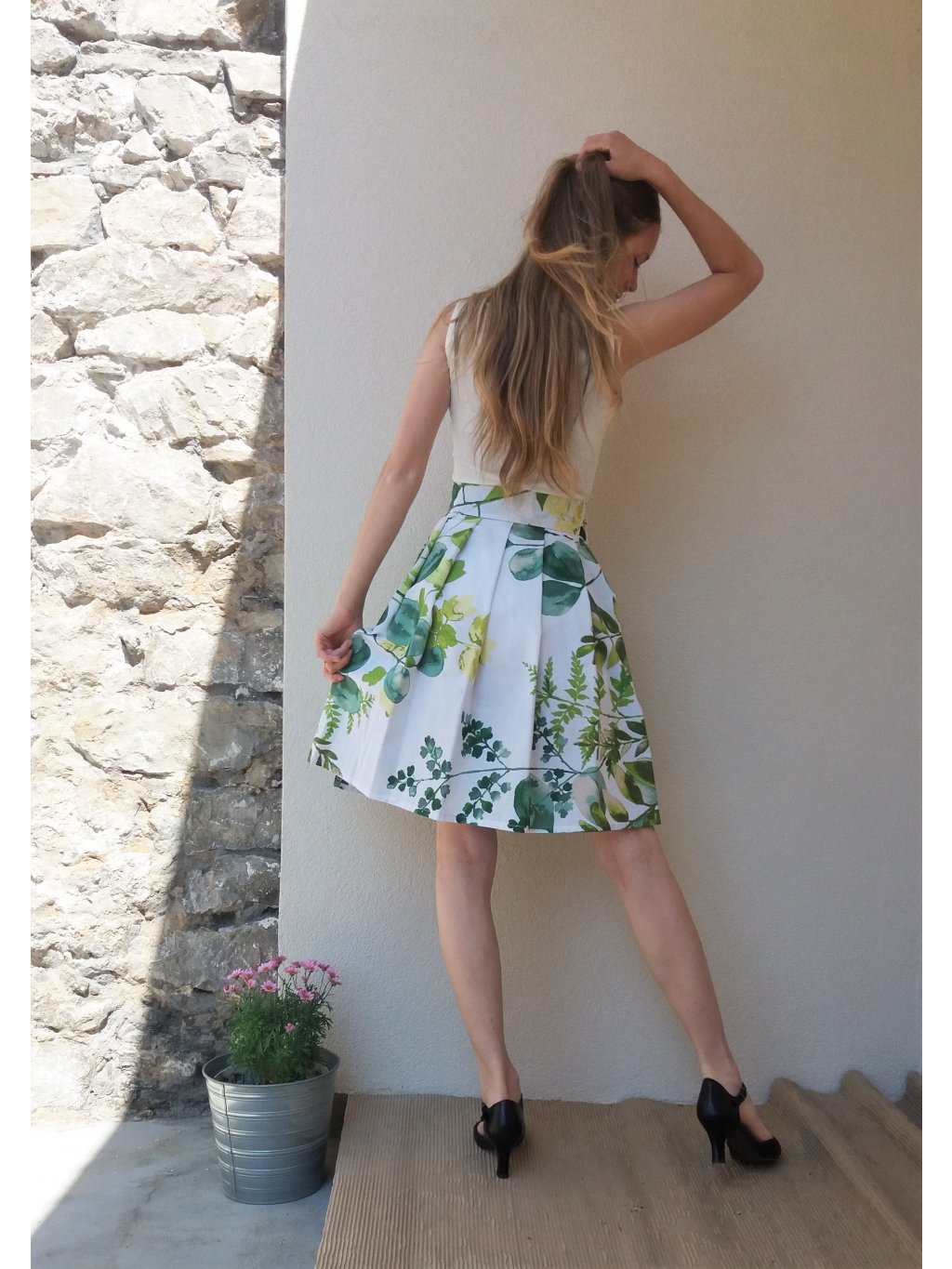 Krátká zavinovací sukně - akvarel zelené listy