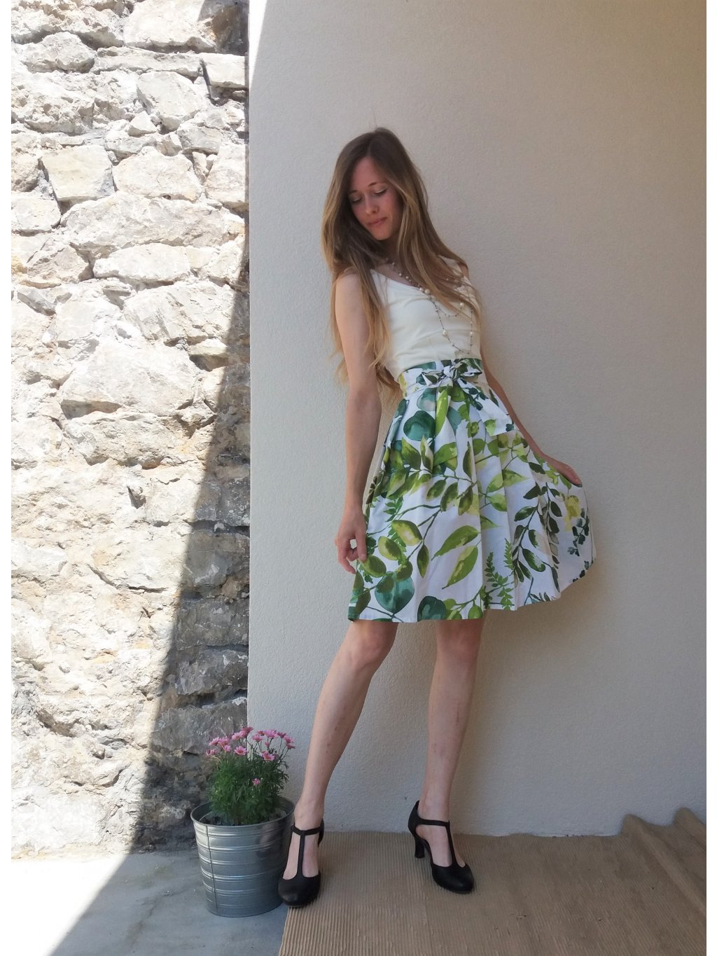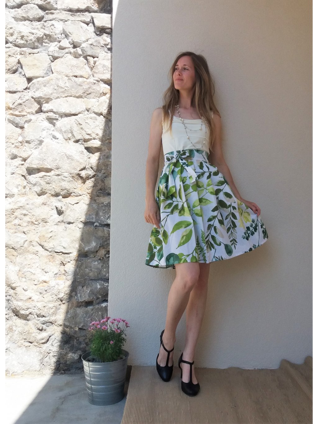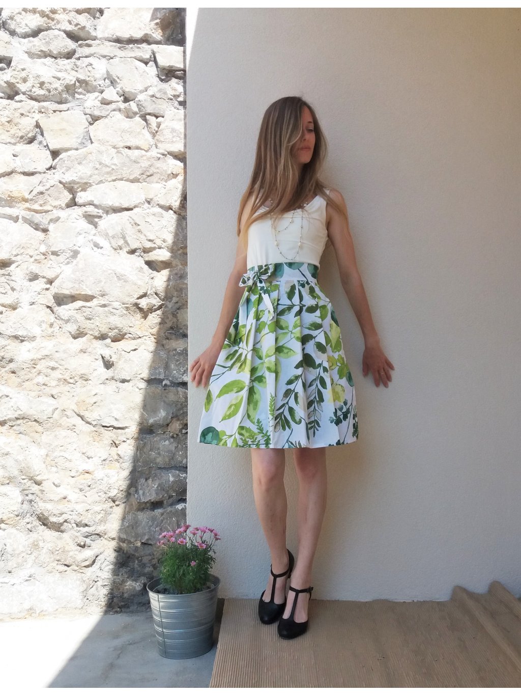 Zavinovací sukně ušitá z 100% bavlny s akvarelovým potiskem.