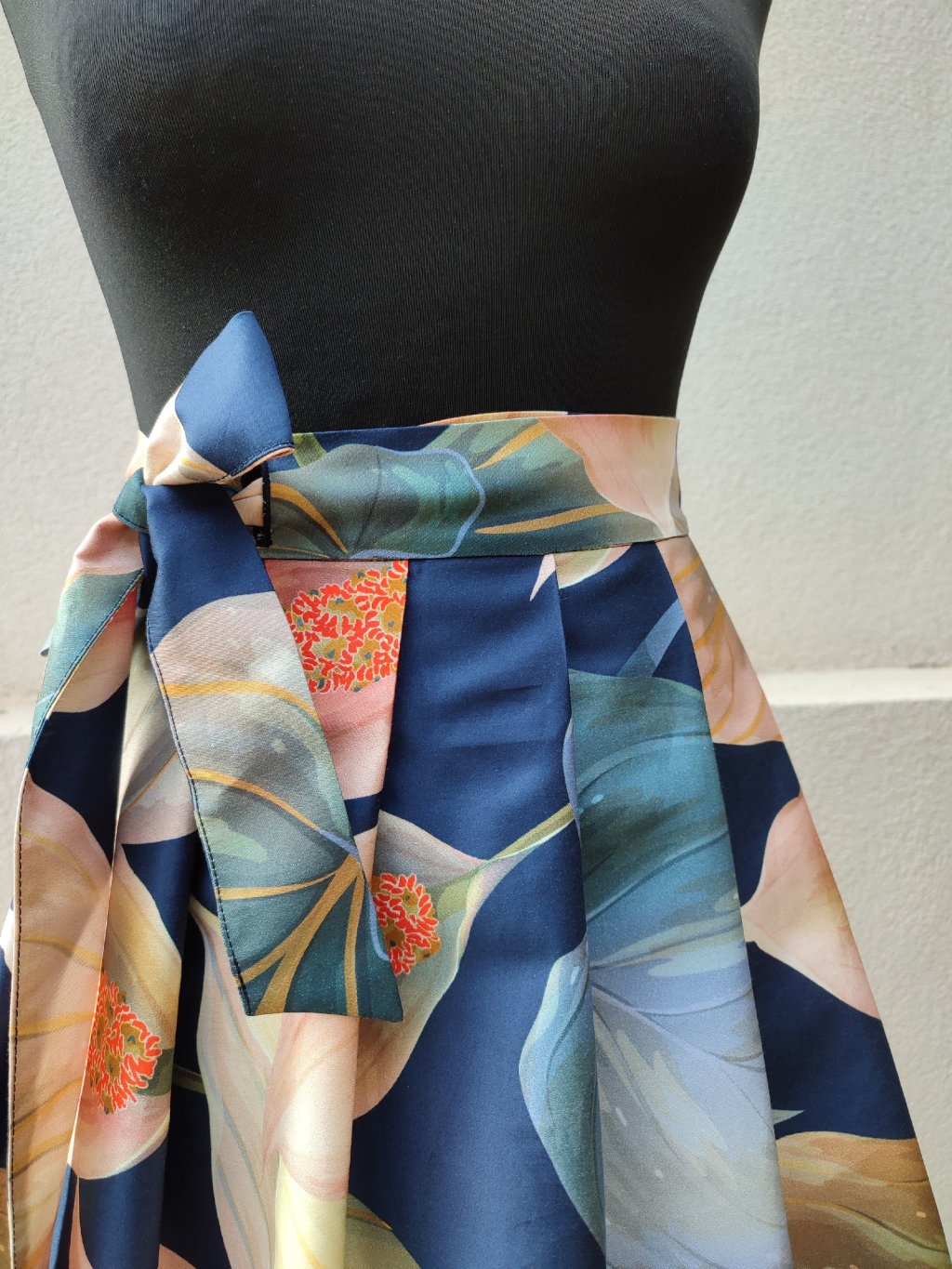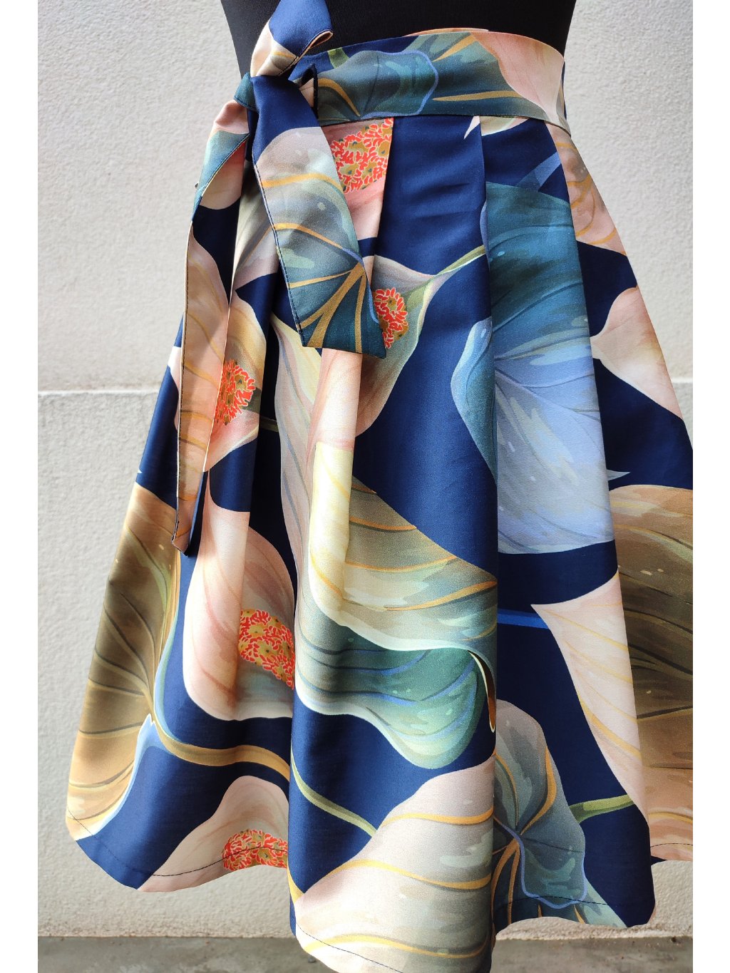 Zavinovací sukně ušitá z hebkého, 100% bavlněného saténu, překrásný, kvalitní potisk květů.