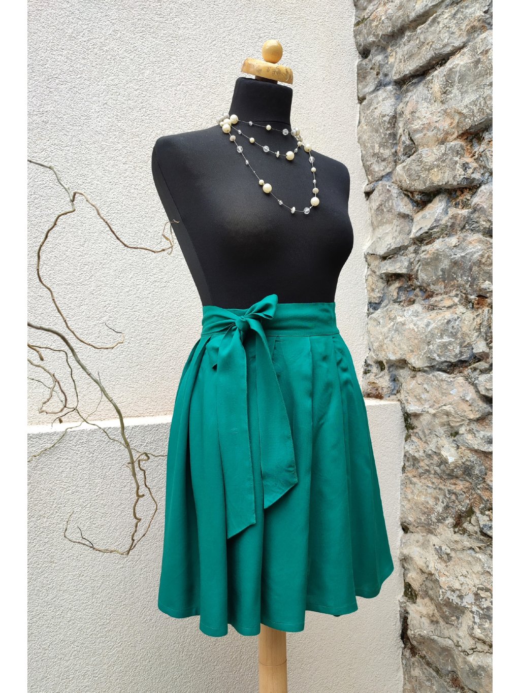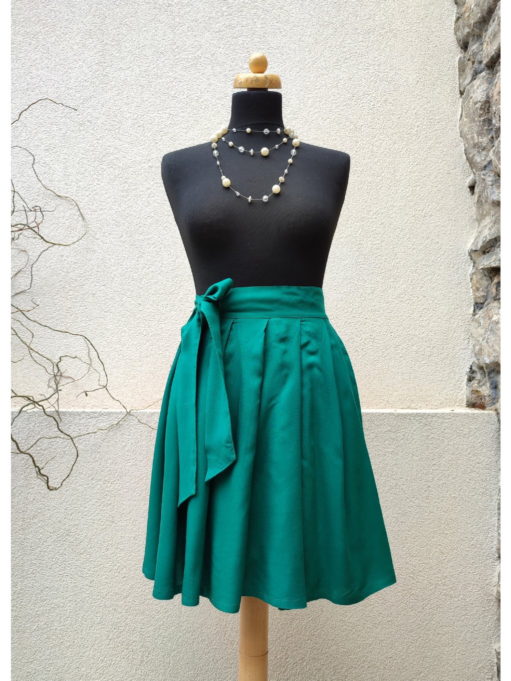 Zavinovací sukénka ušitá z hebké, jemné viskozy jasně zelené barvy.