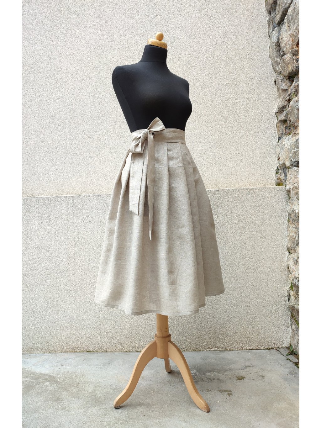 Zavinovací sukně ušitá ze 100% lnu v přírodní barvě.