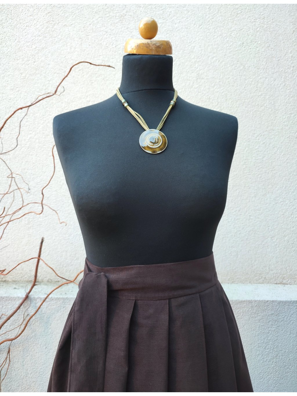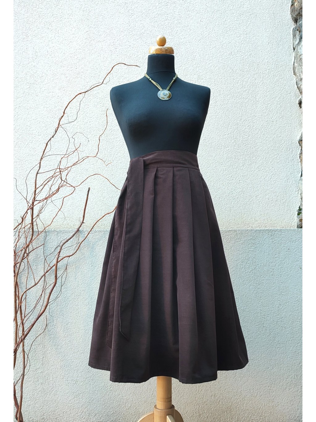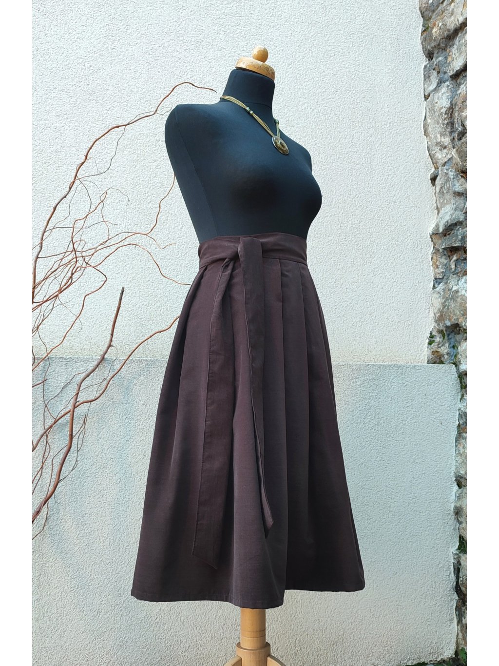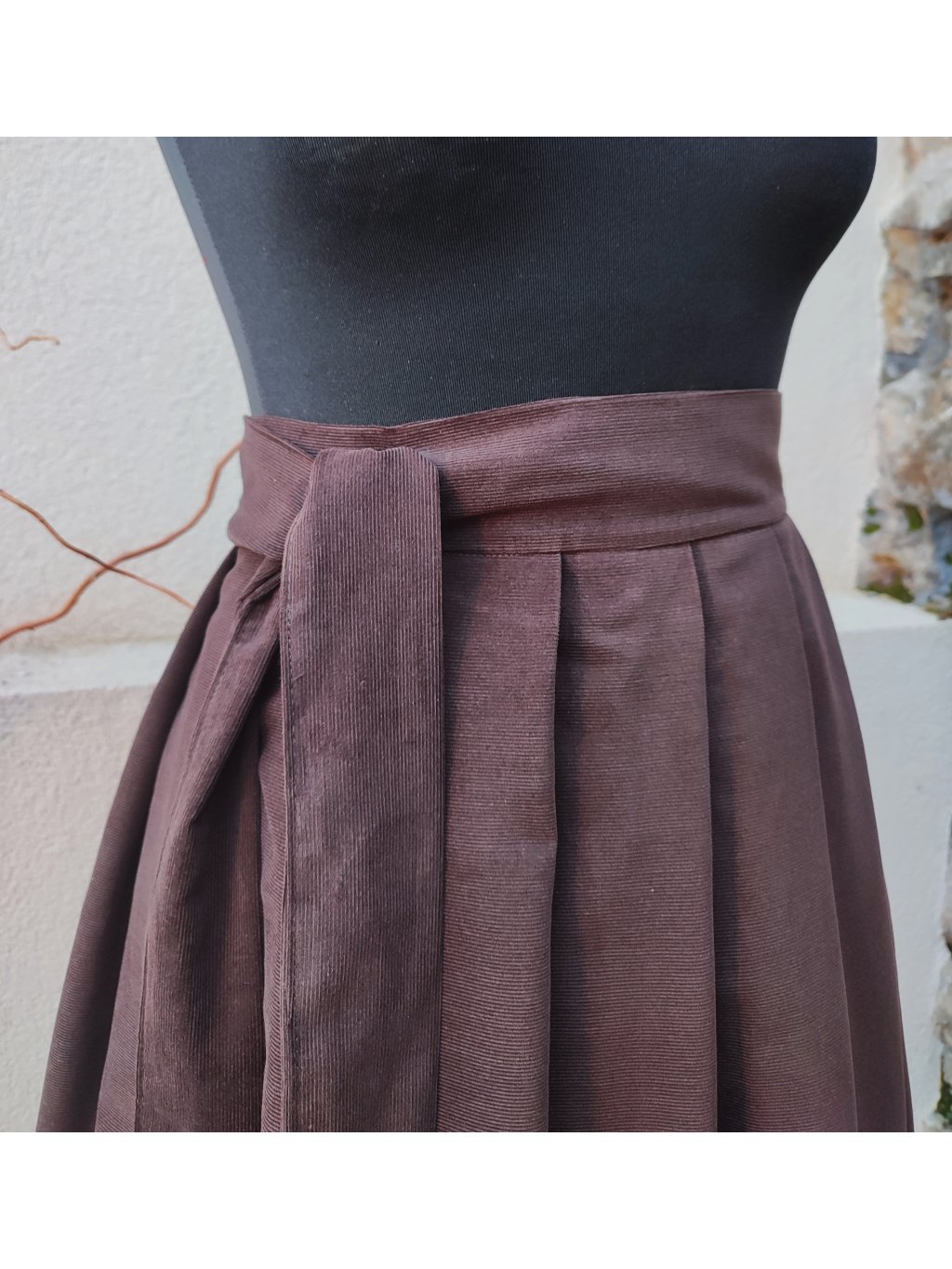 Tato zavinovací manšestrová midi sukně v čokoládové barvě je symbolem nadčasové elegance a pohodlí.