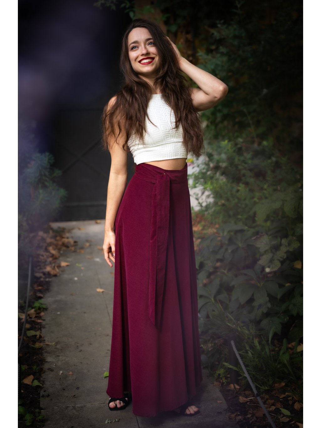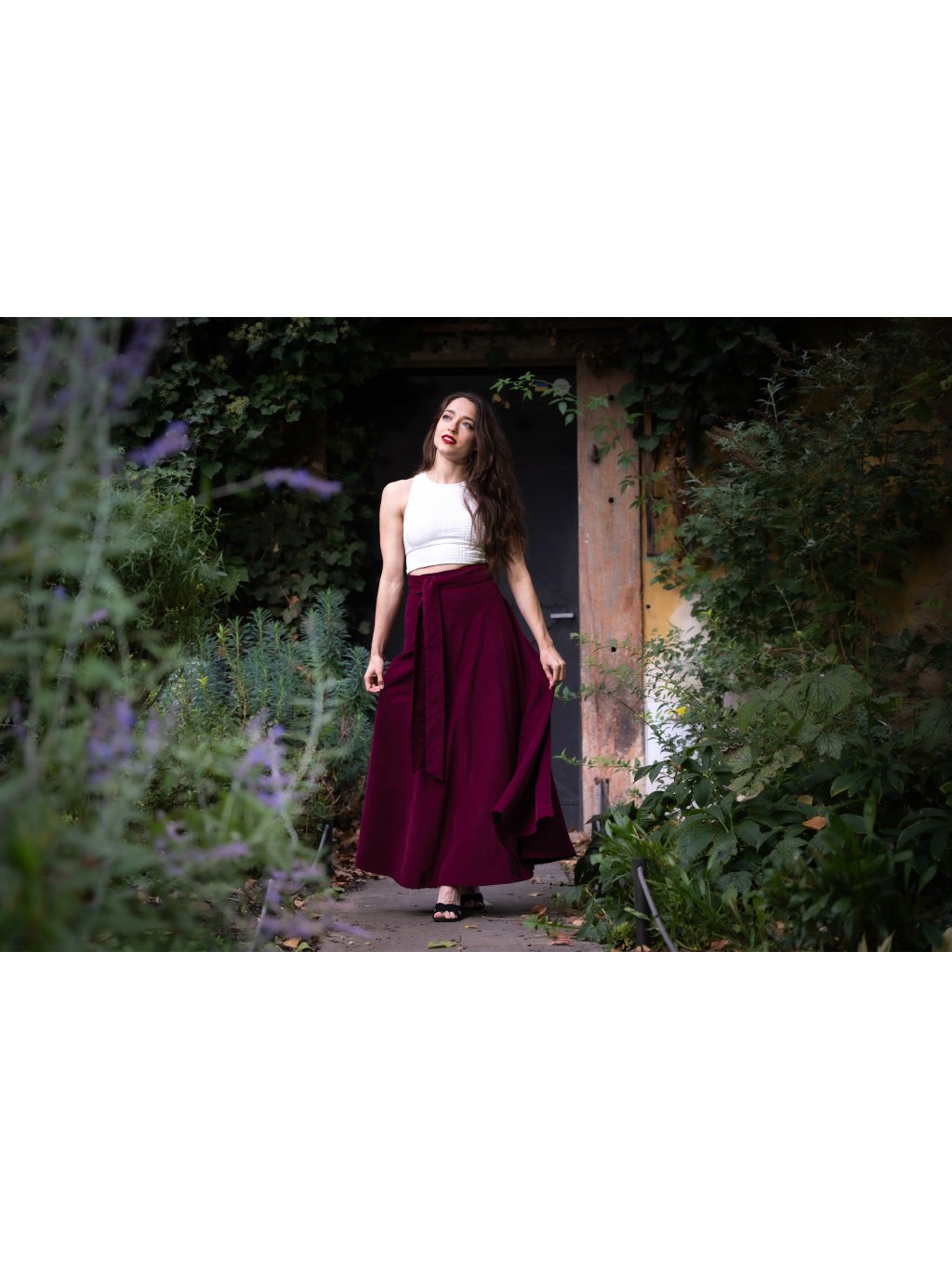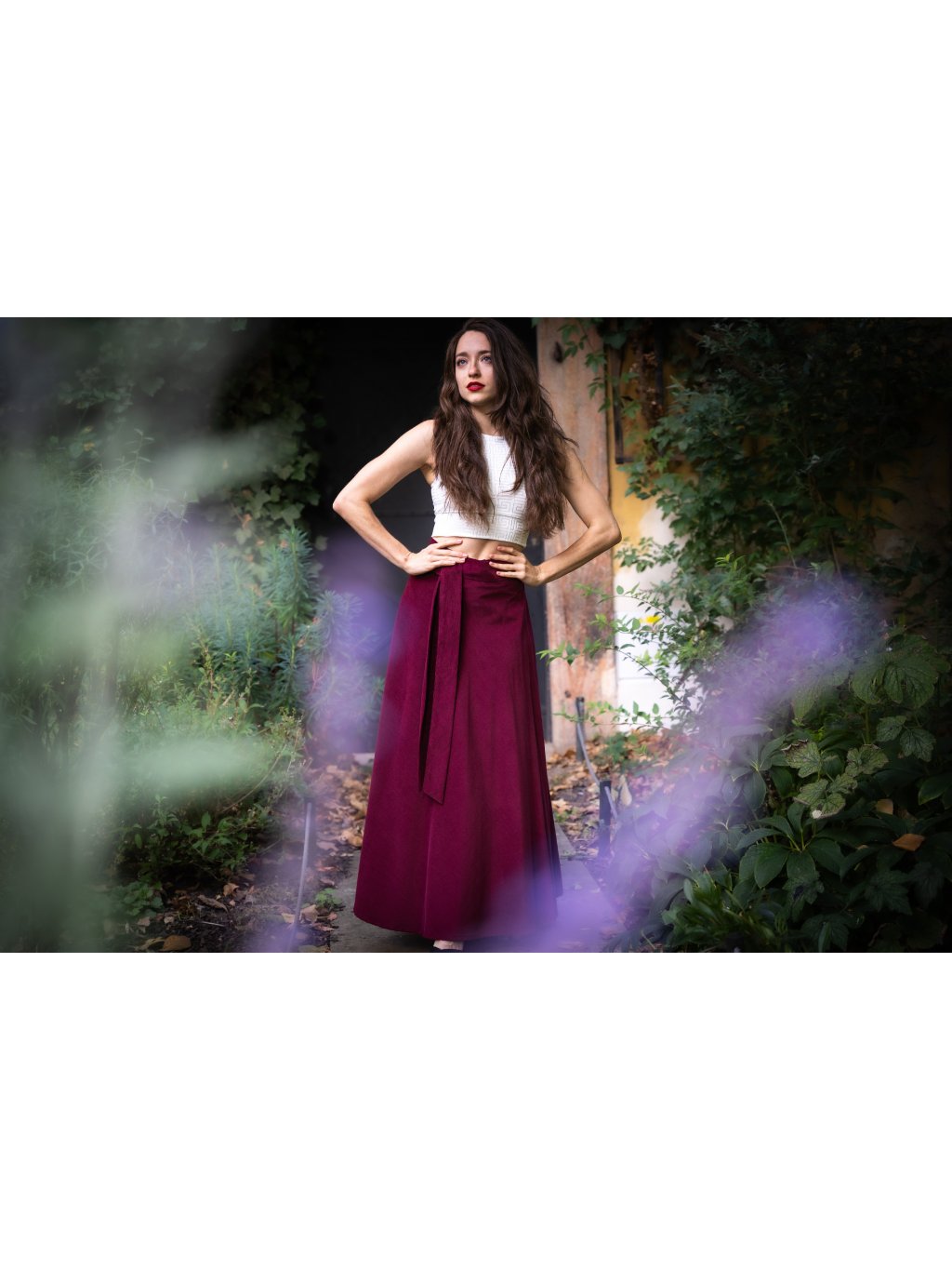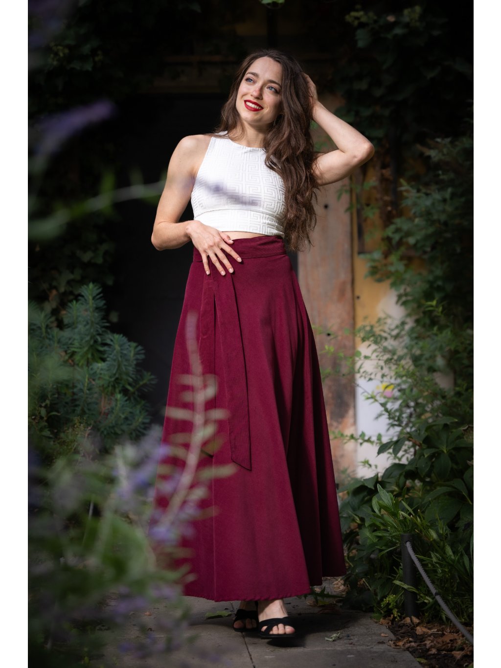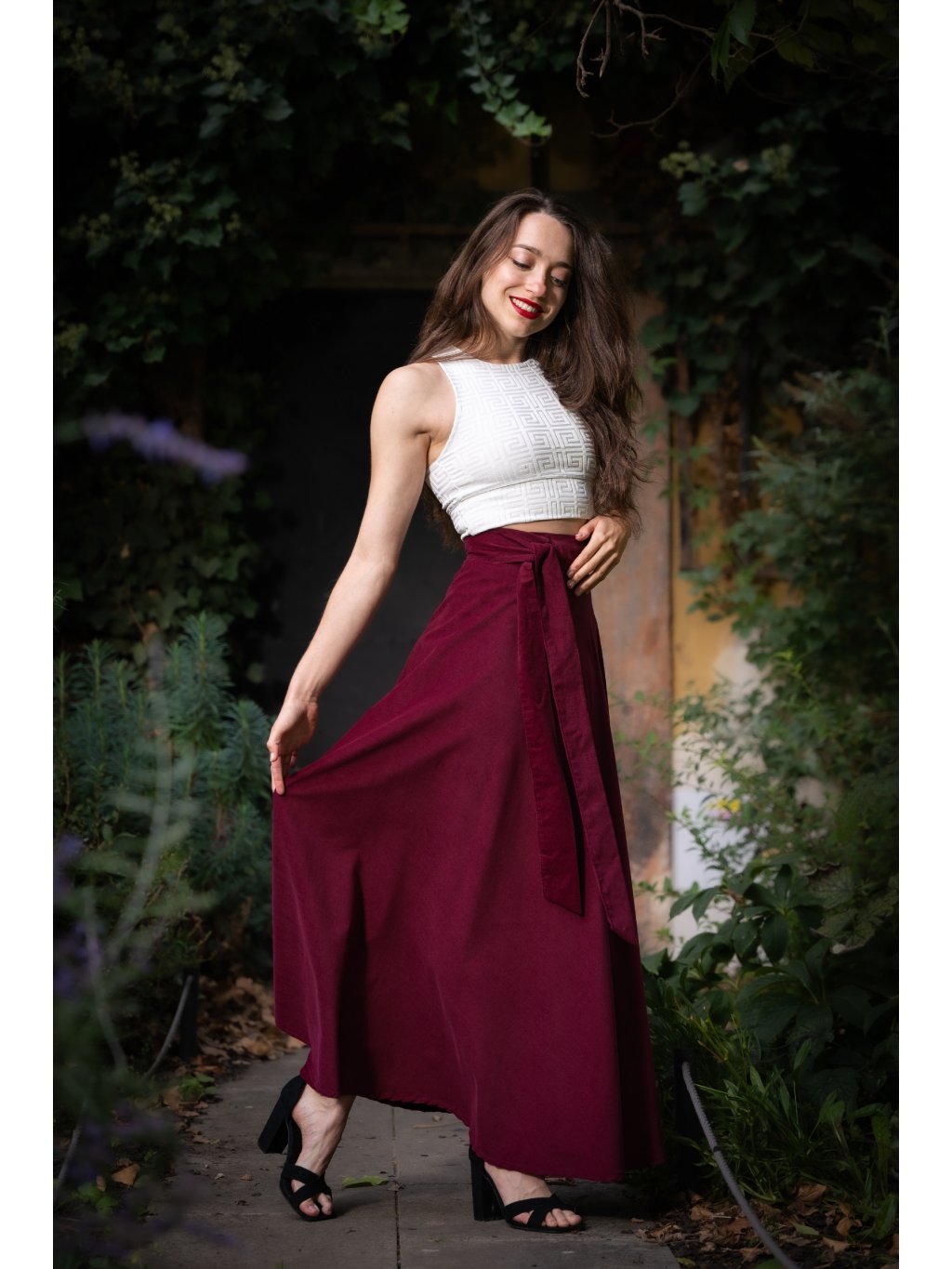 Stylová a nadčasová zavinovací sukně z hebkého, jemného manšestru v elegantním bordó odstínu podtrhne vaši ženskost a dodá každému outfitu šmrnc.