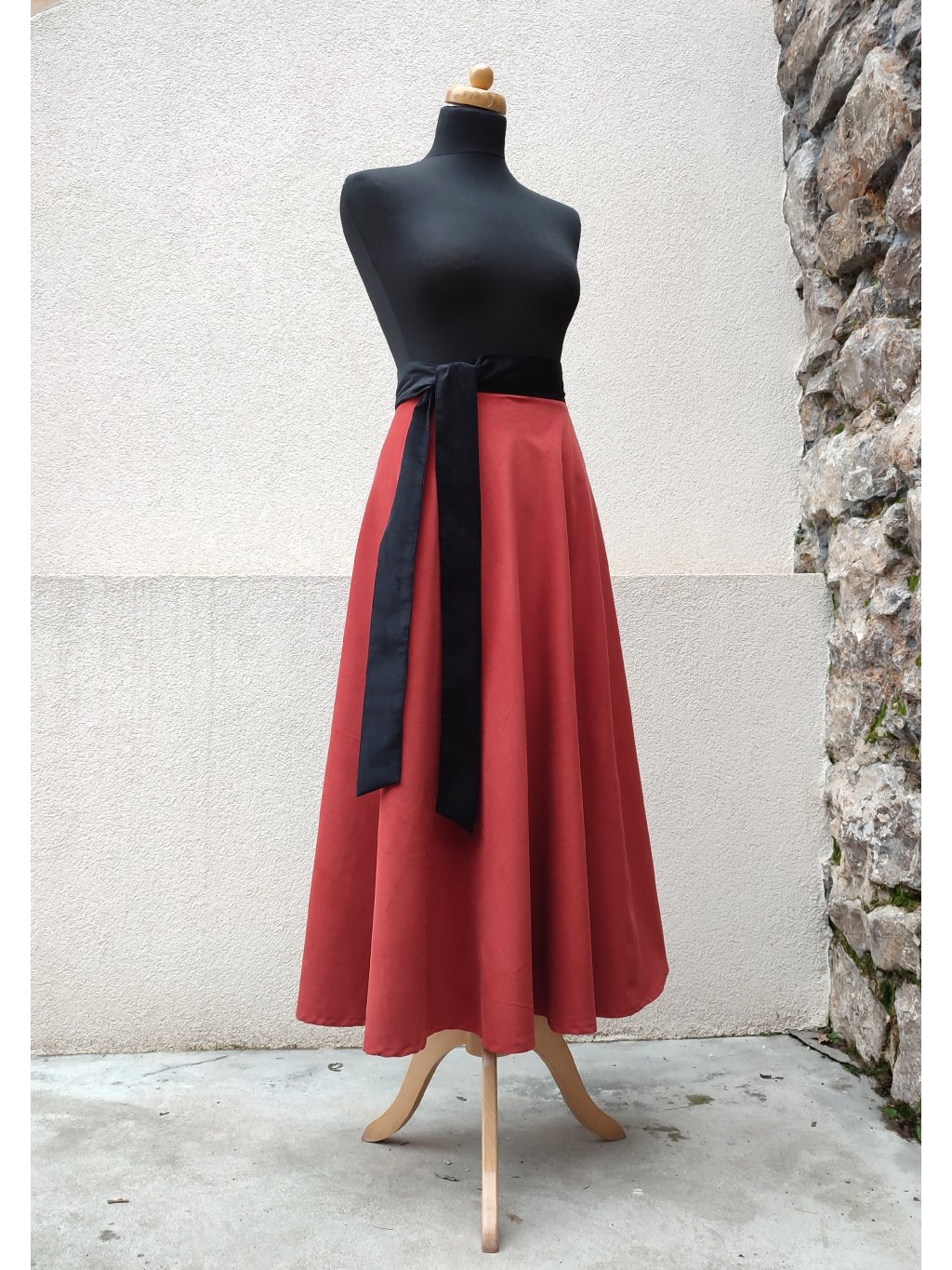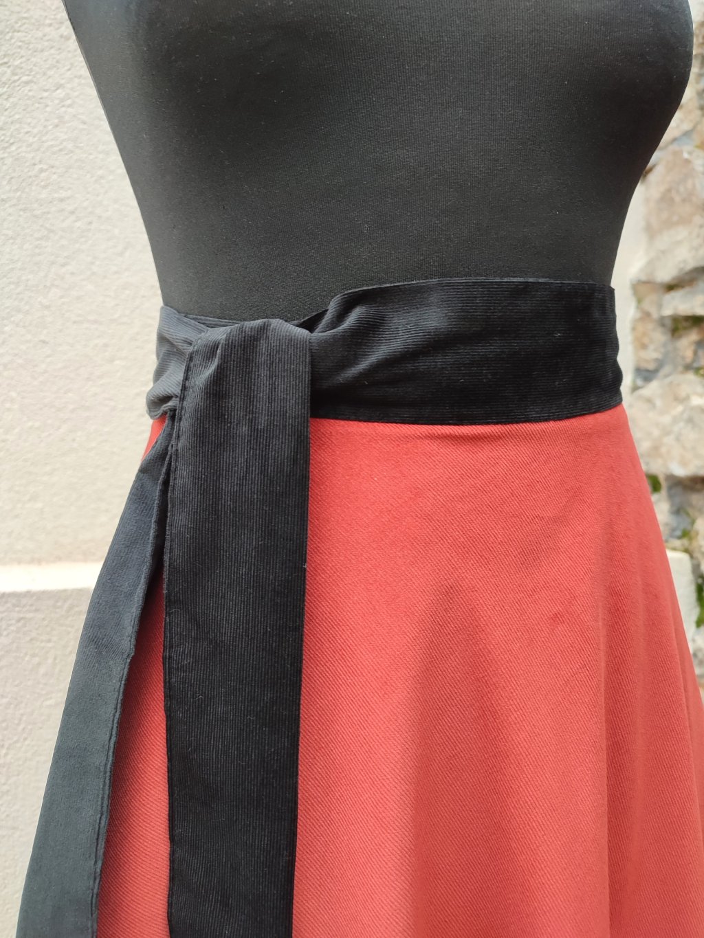 Manšestrová půlkolová sukně - zrzavá s černým páskem