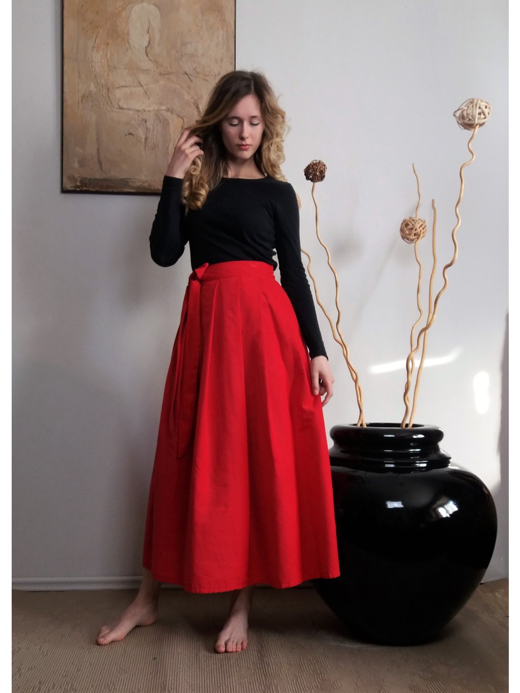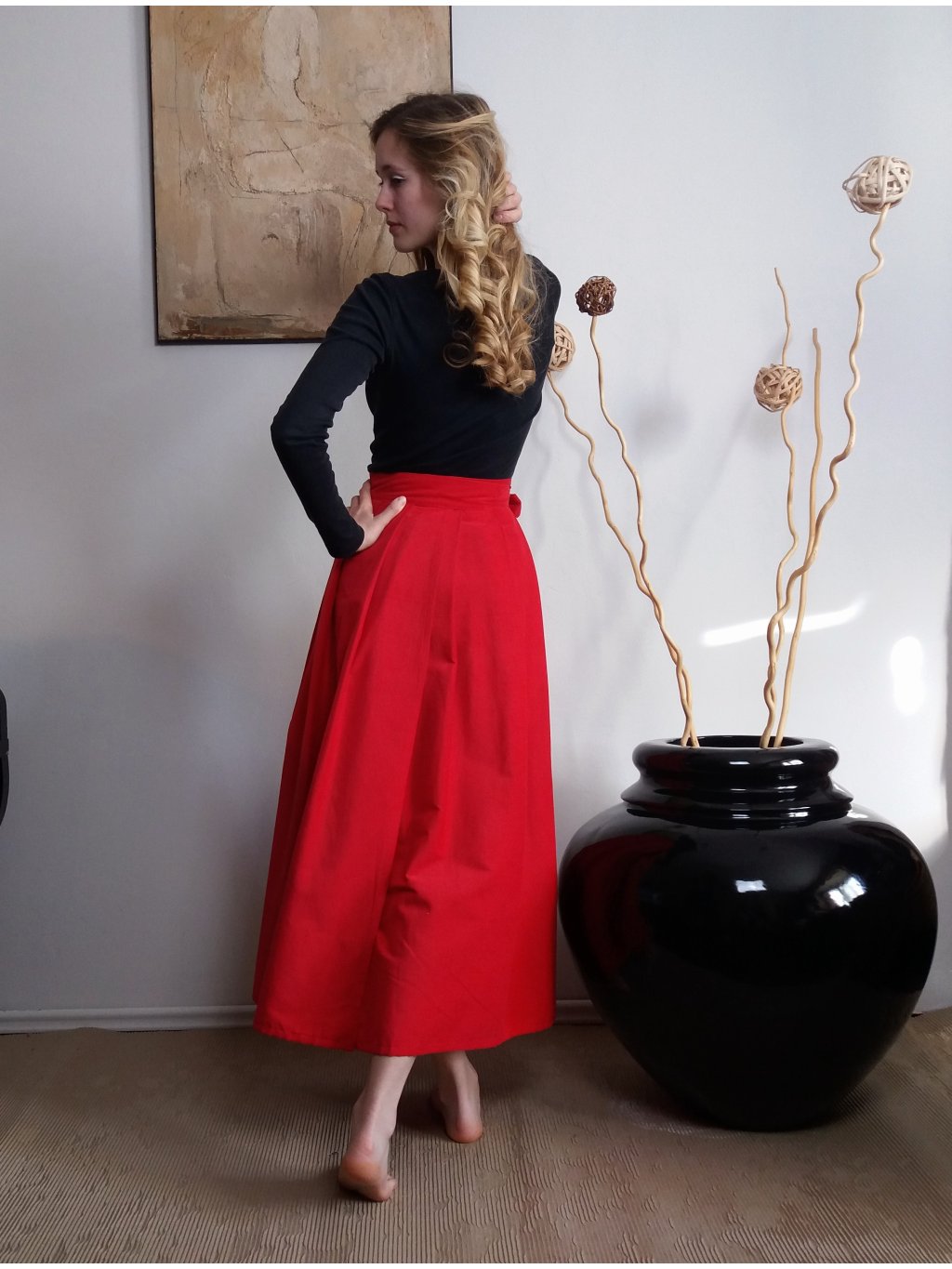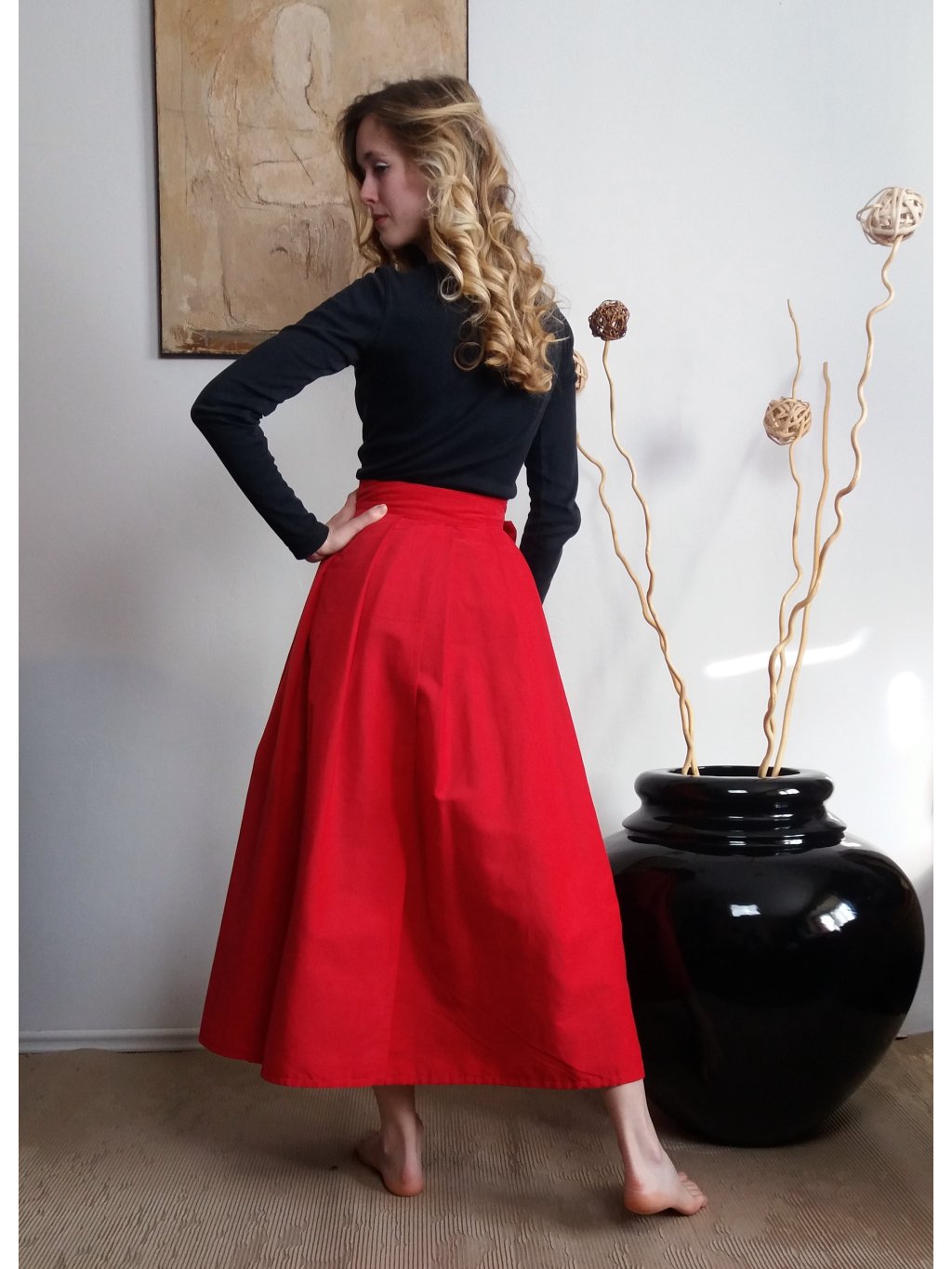 Objevte kouzlo ženskosti v naší červené manšestrové dlouhé sukni, která je navržena pro pohodlí a styl v chladnějších dnech.